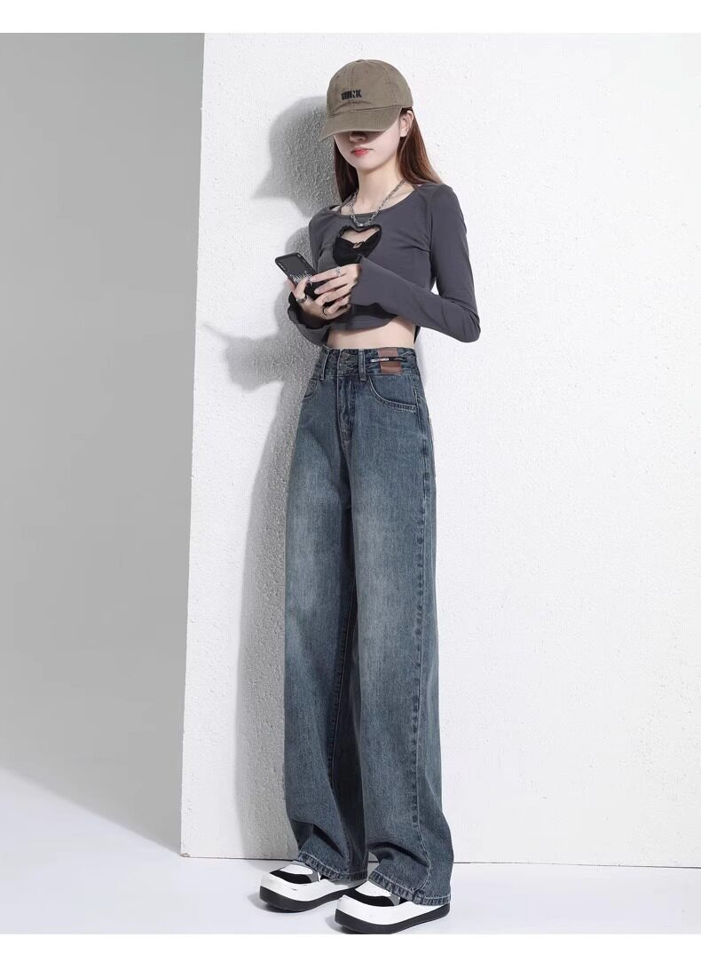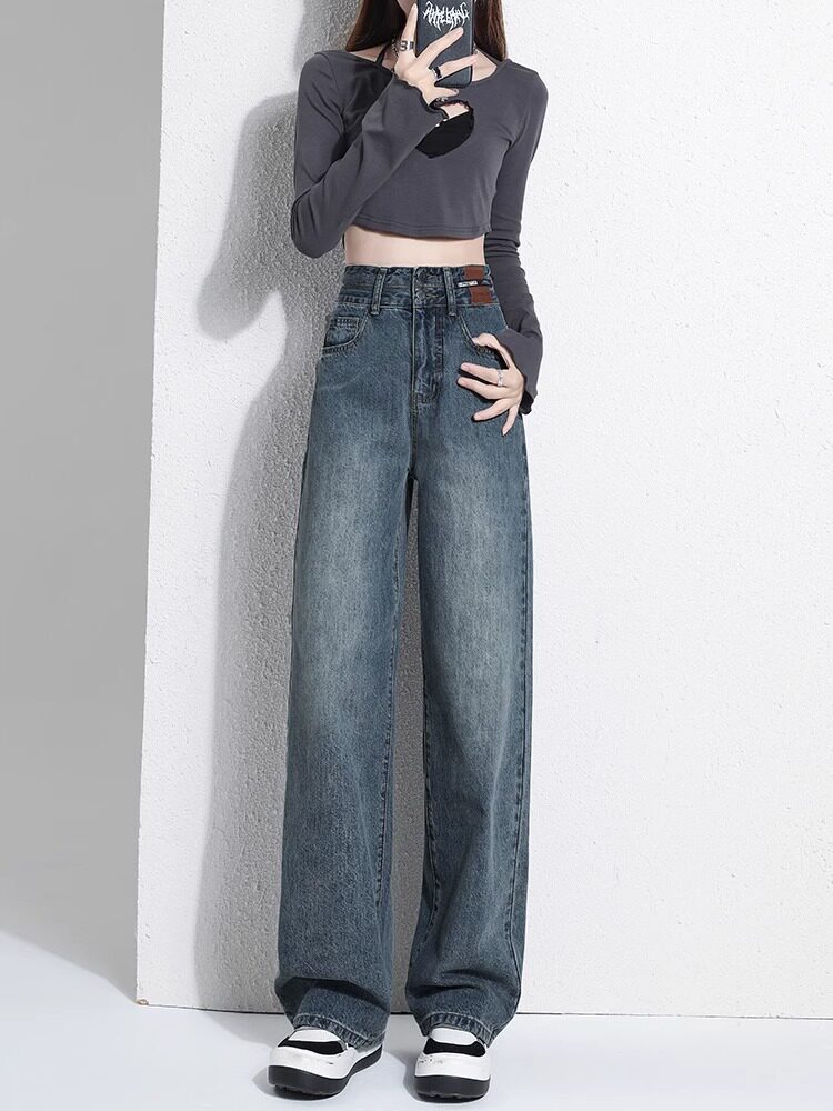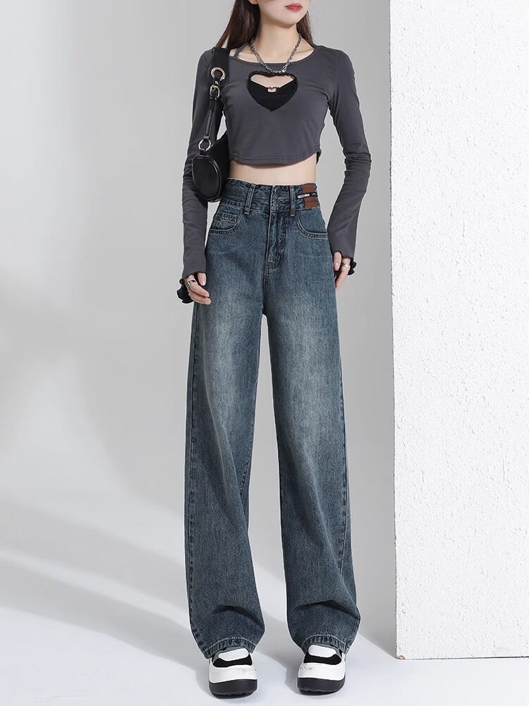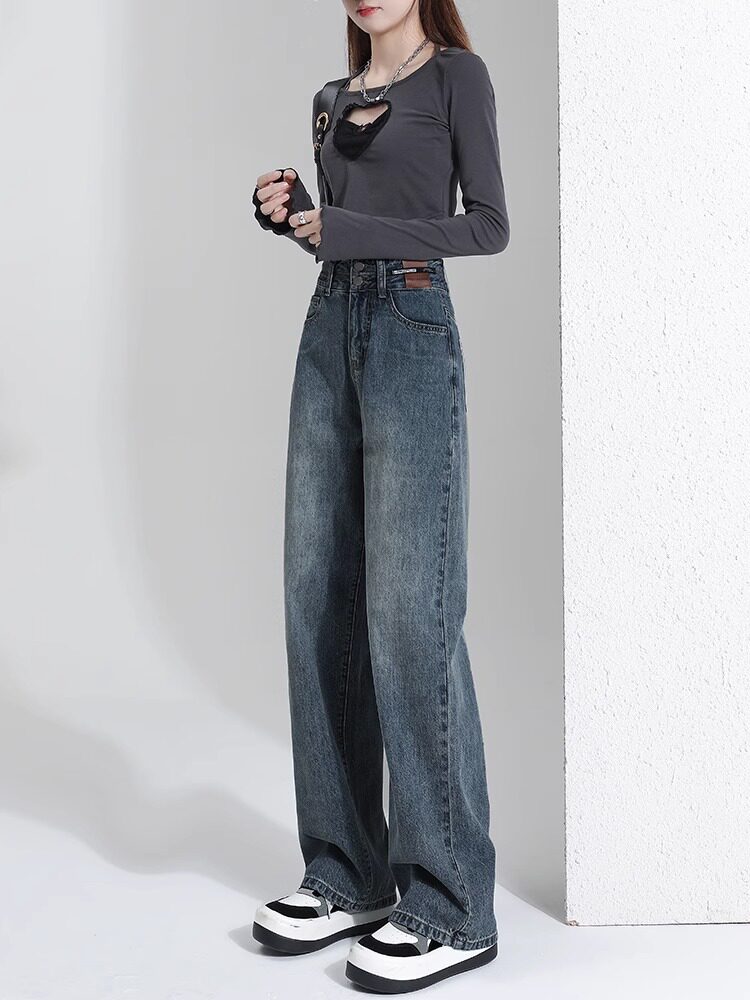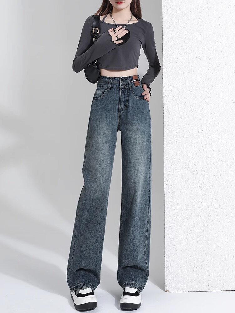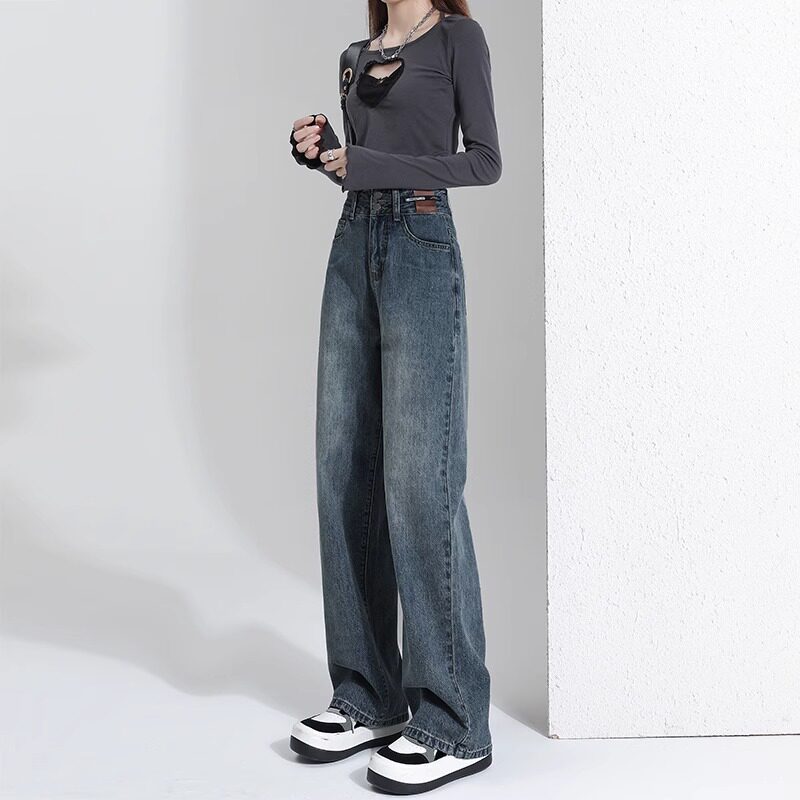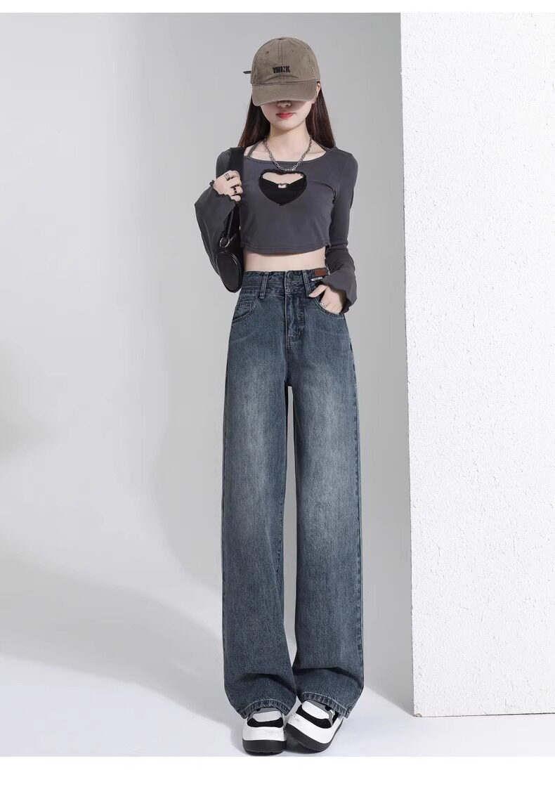 Штаны, тонкие весенние летние прямые свободные джинсы, свободный прямой крой, высокая талия