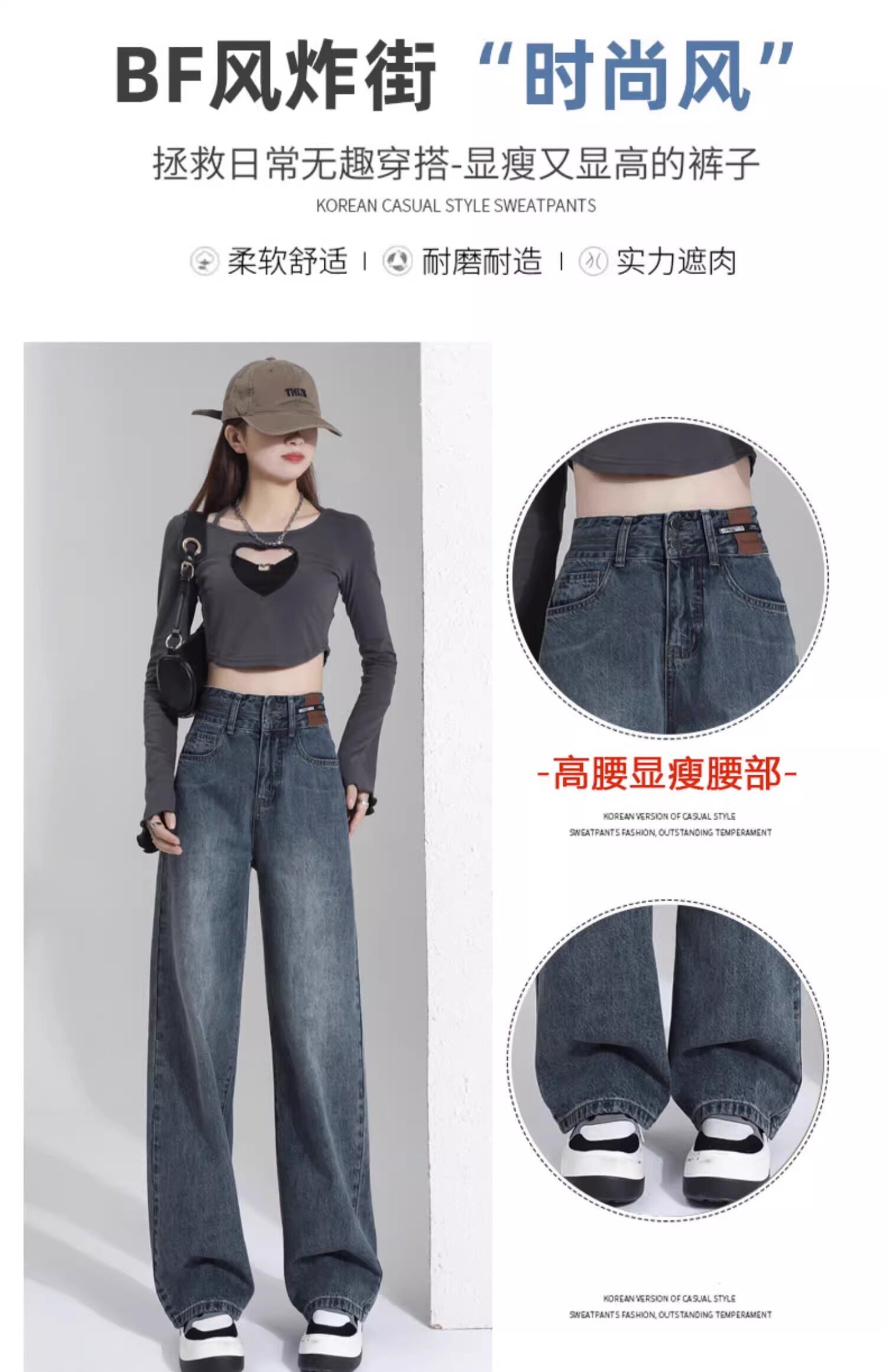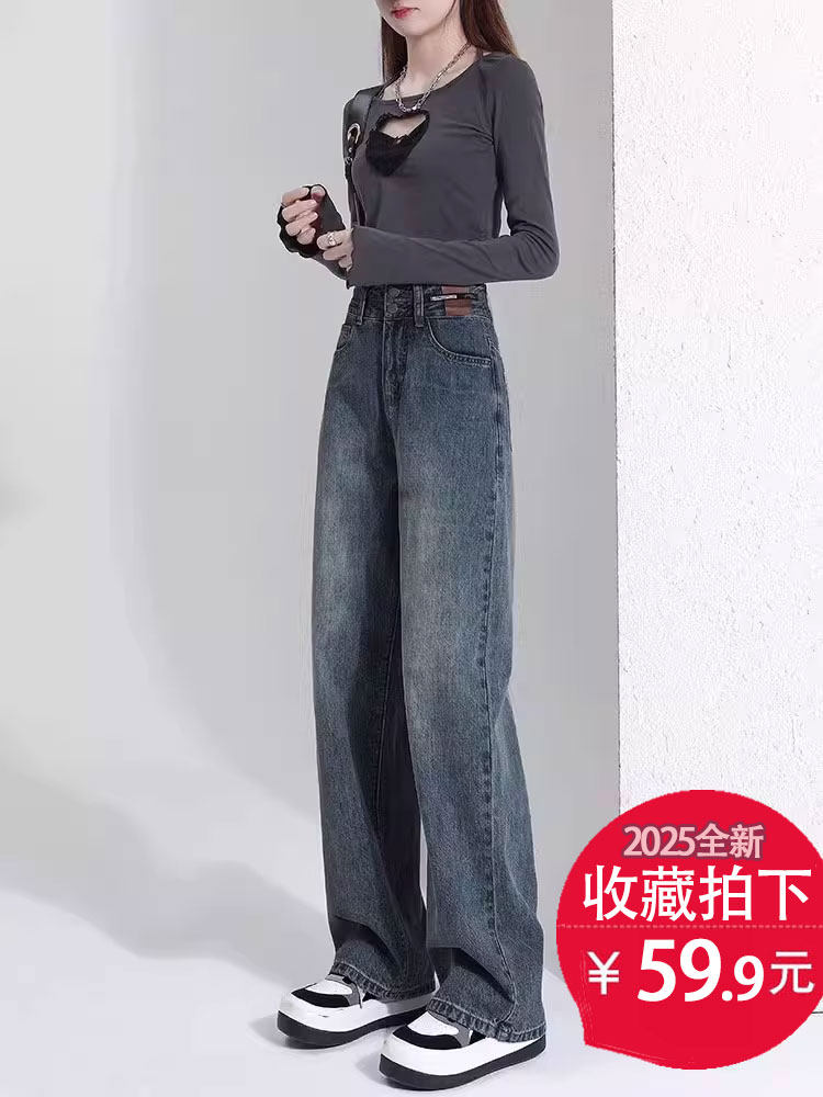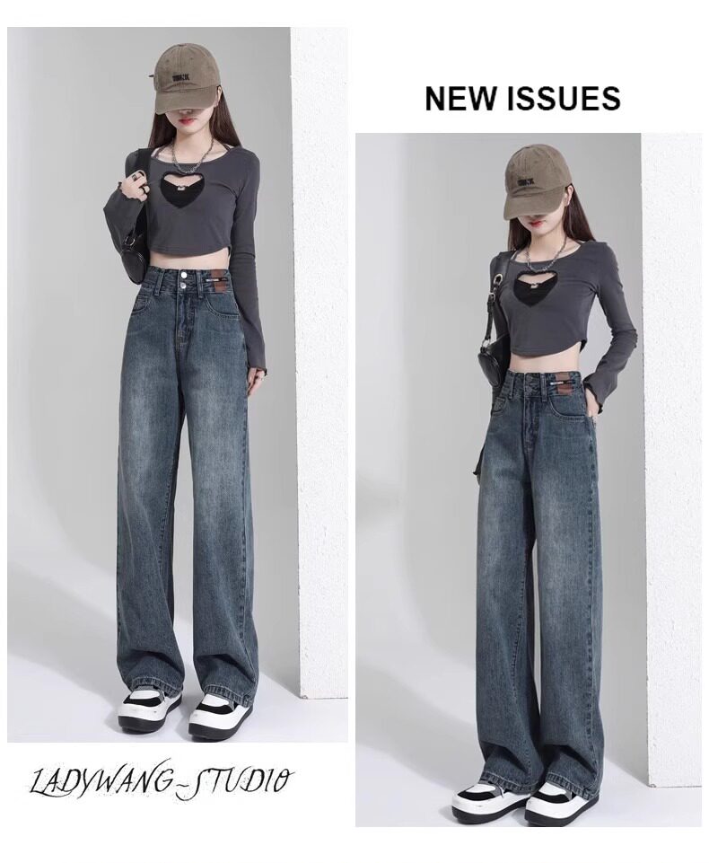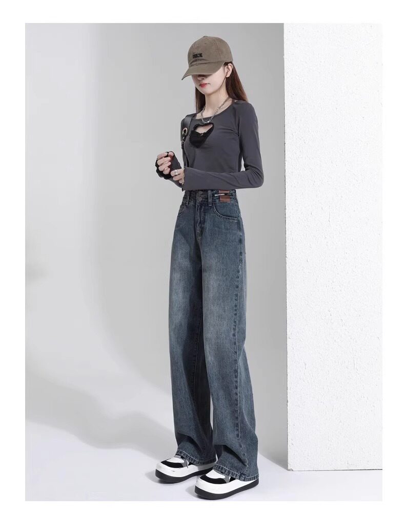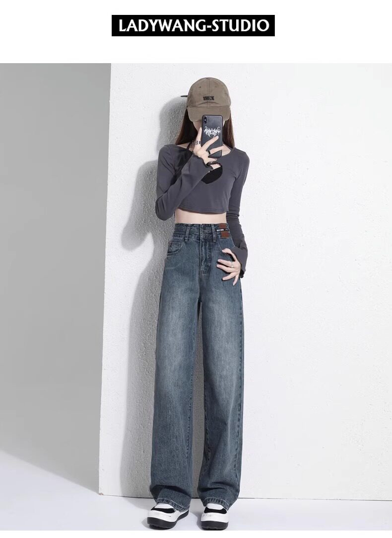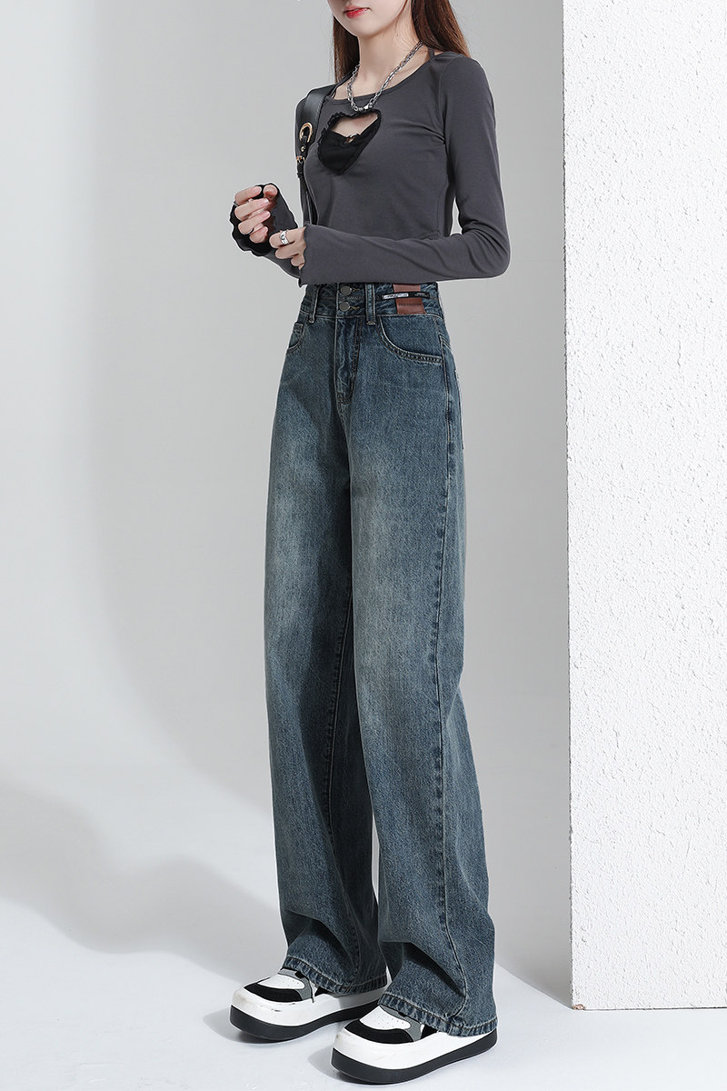 Штаны, тонкие весенние летние прямые свободные джинсы, свободный прямой крой, высокая талия