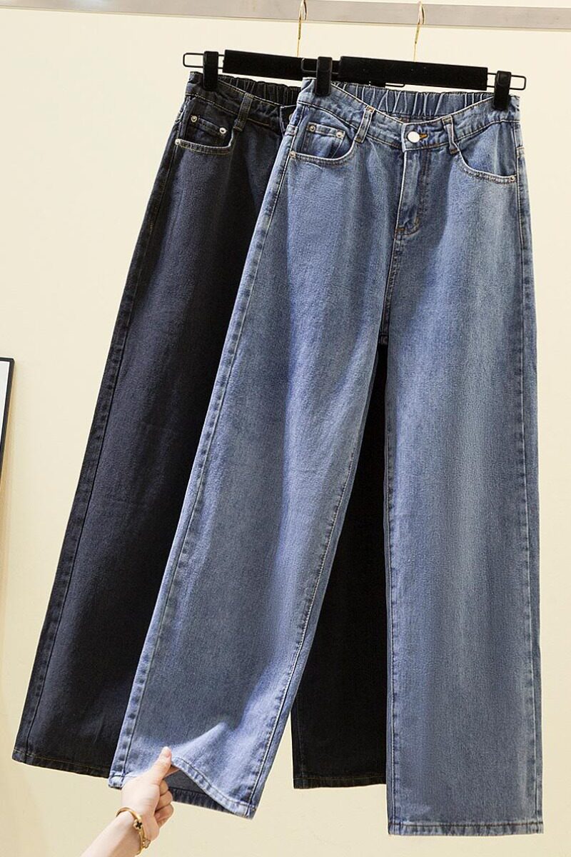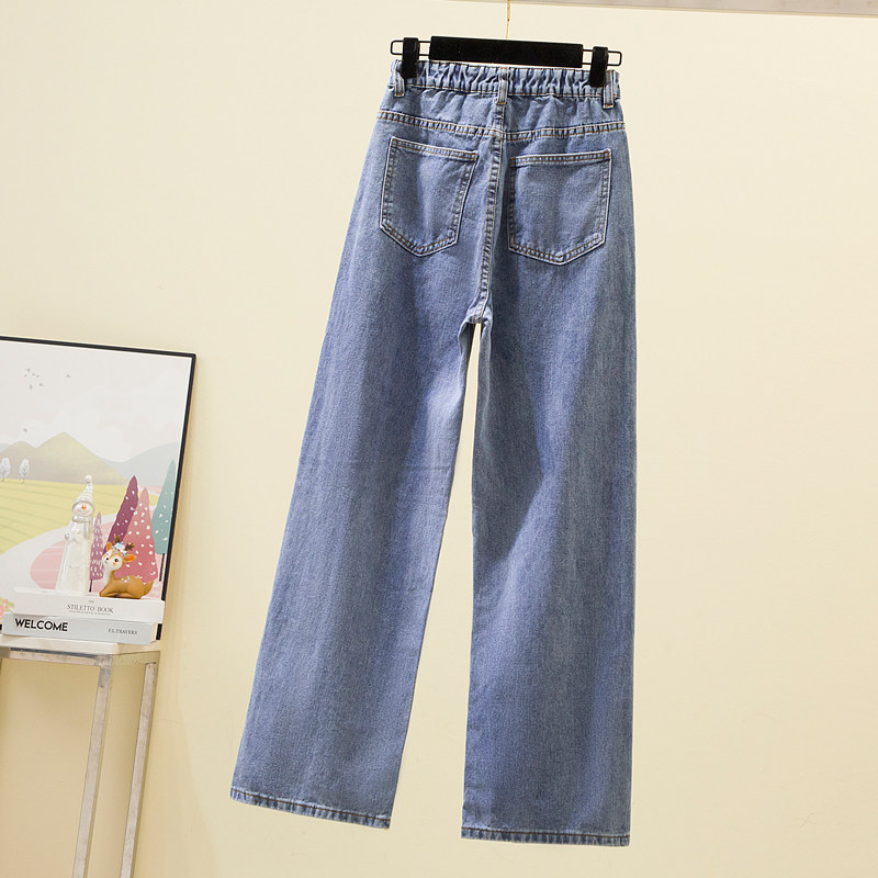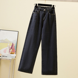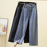 Осенние демисезонные джинсы, приталенные штаны, большой размер, оверсайз, подходит для полных девушек, высокая талия, свободный прямой крой