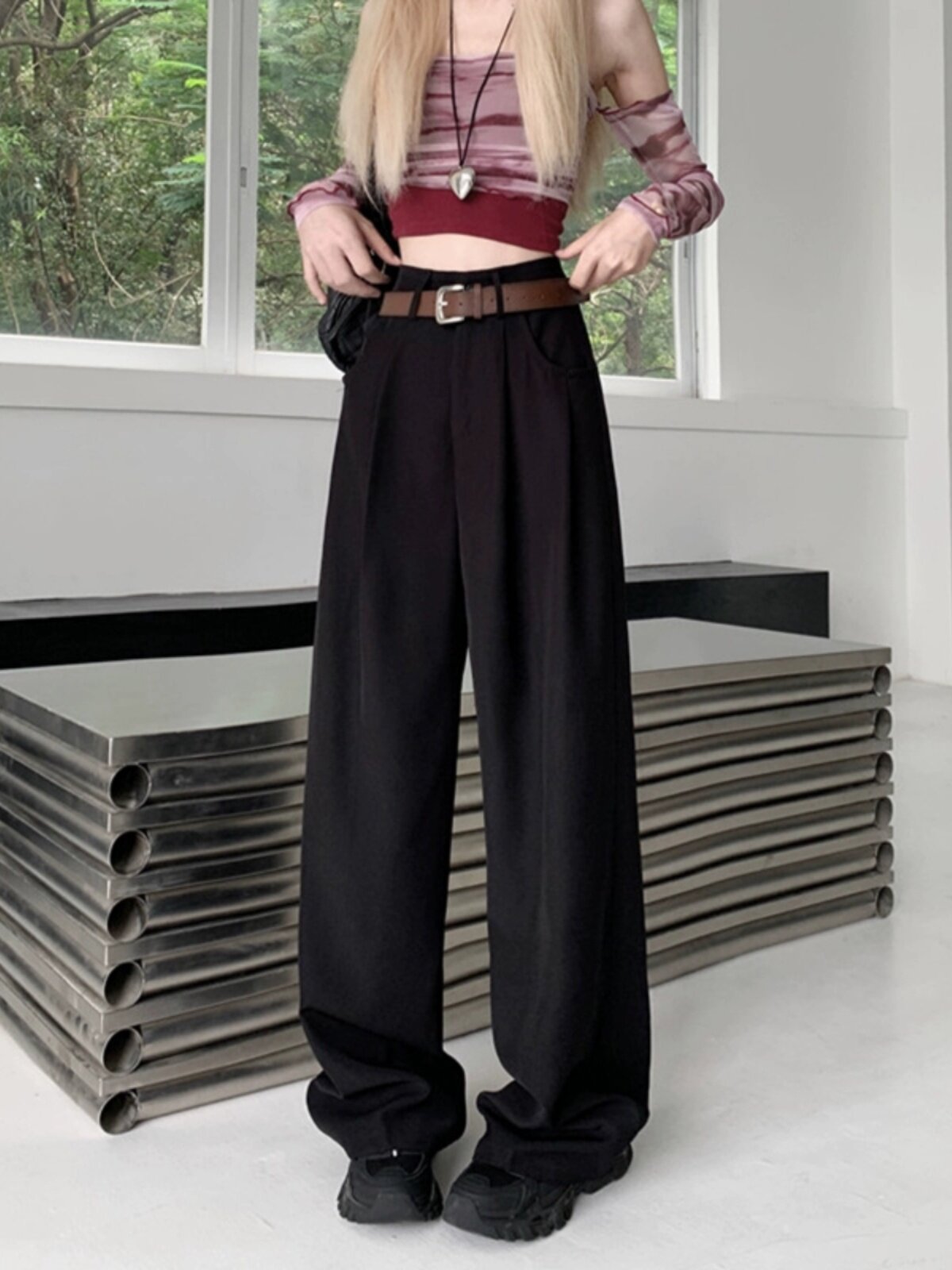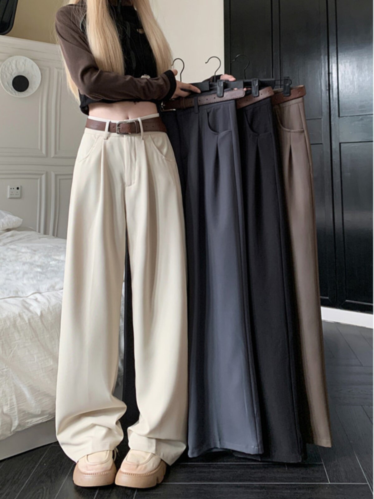 Осенние штаны, ретро приталенные леггинсы, высокая талия, свободный прямой крой