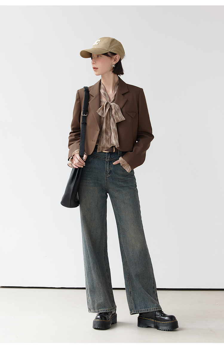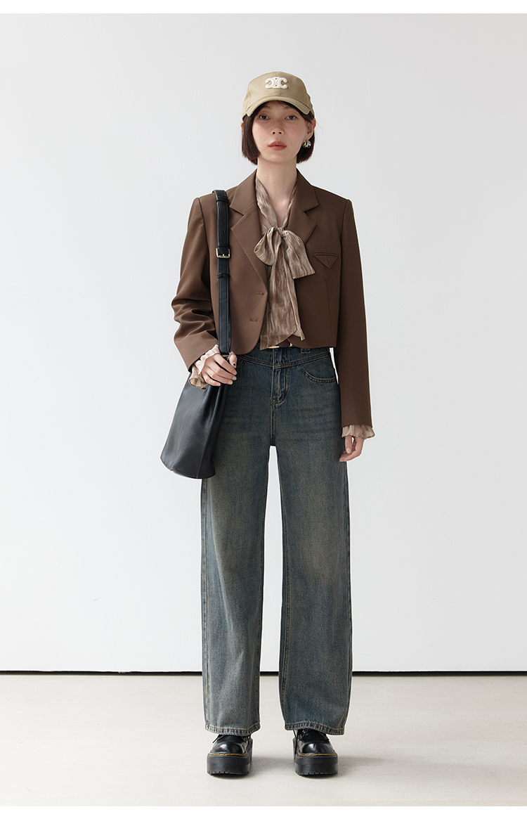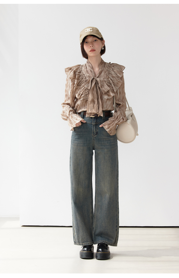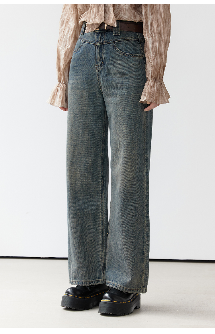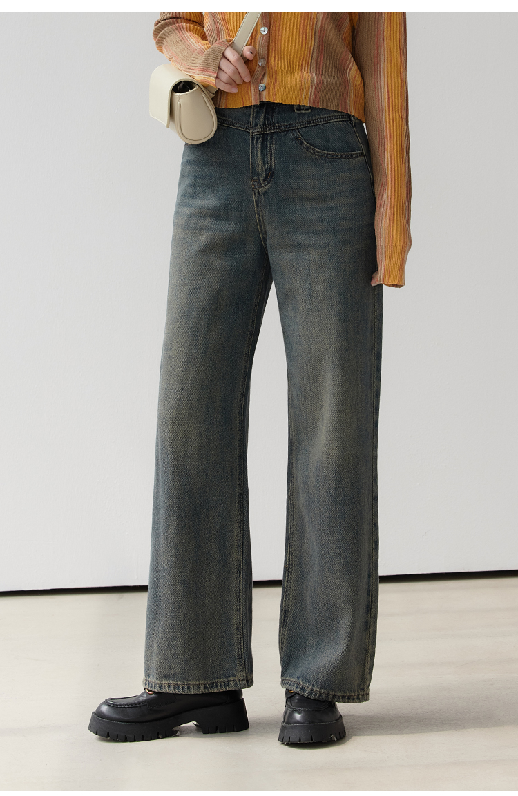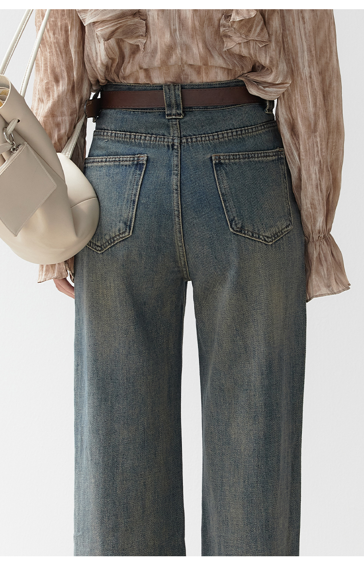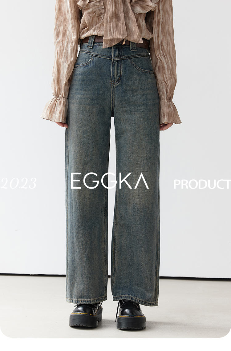 EGGKA Джинсы, осенние дизайнерские ретро штаны, высокая талия, коллекция 2023, тренд сезона, свободный прямой крой