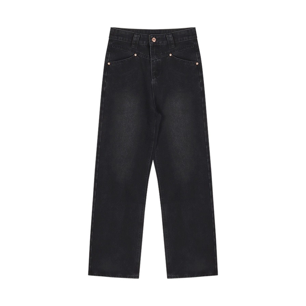 Очень большие черные осенние прямые свободные джинсы, штаны, леггинсы, большой размер, высокая талия, свободный крой