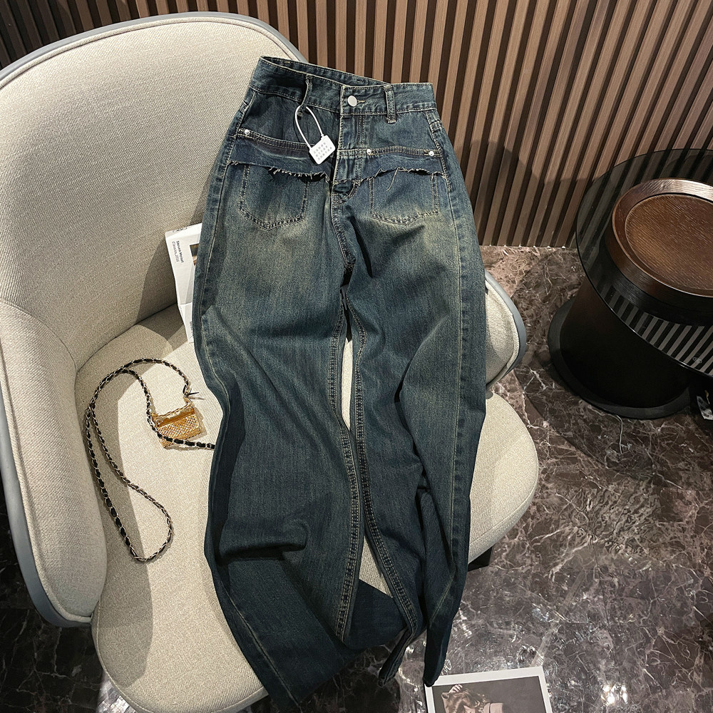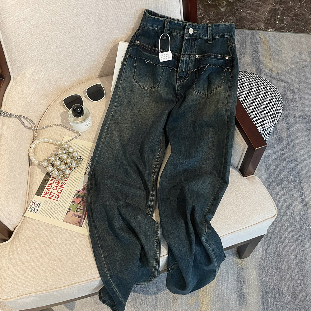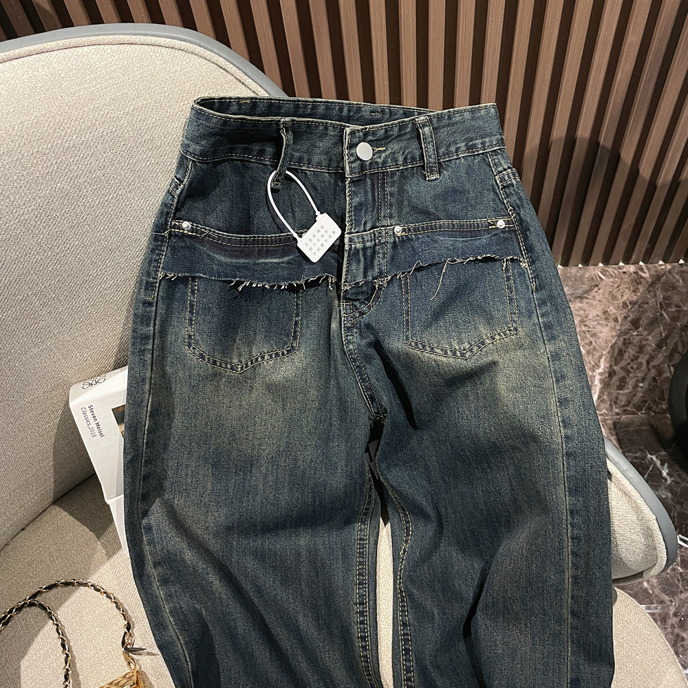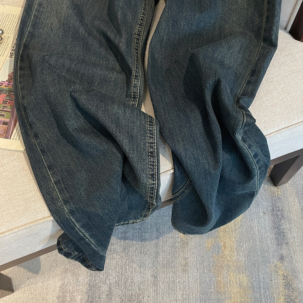 Ретро осенние прямые свободные джинсы, дизайнерские штаны, в американском стиле, оверсайз, свободный крой