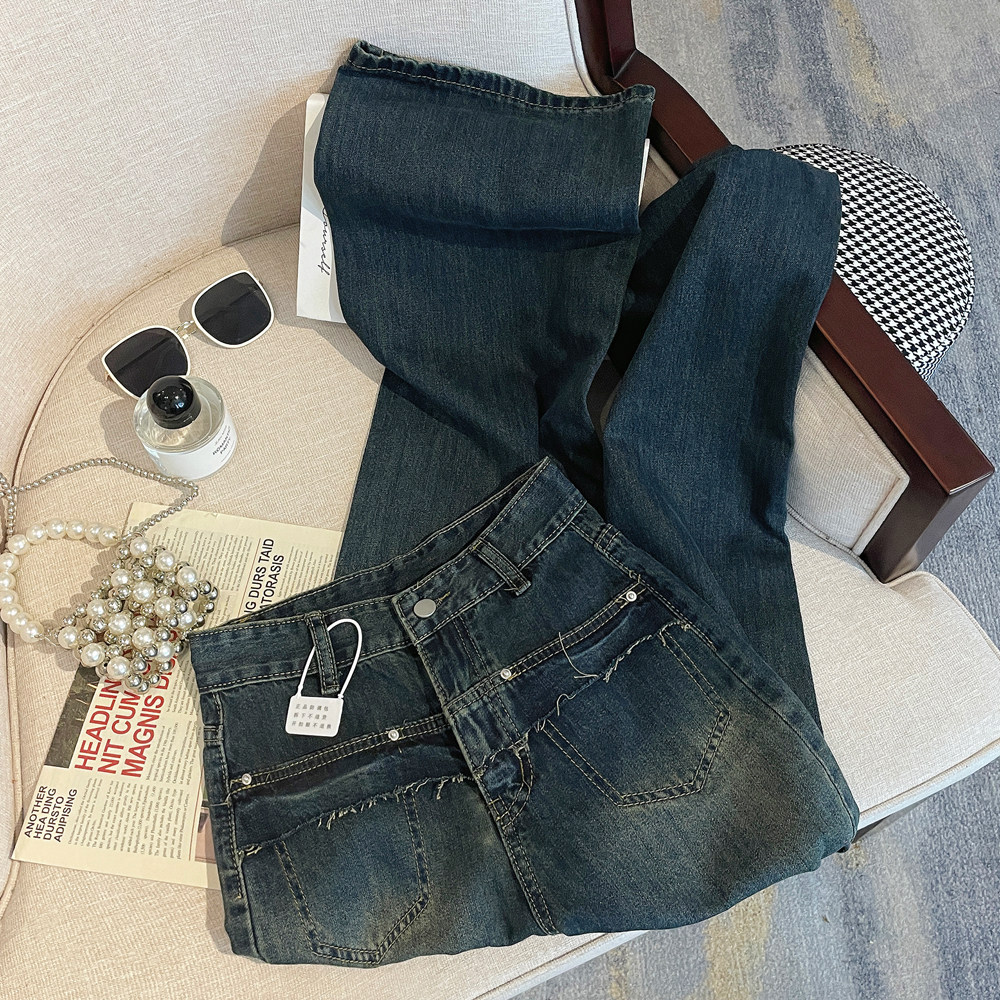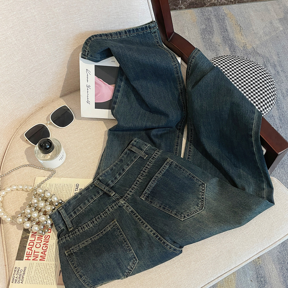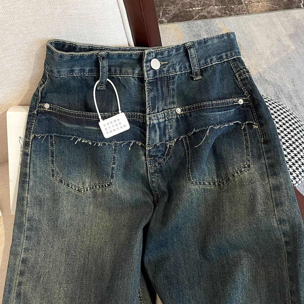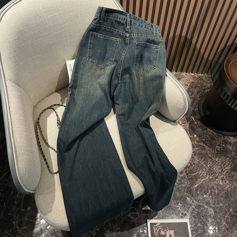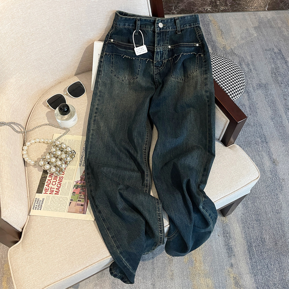 Ретро осенние прямые свободные джинсы, дизайнерские штаны, в американском стиле, оверсайз, свободный крой
