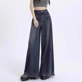 Ретро джинсы, штаны, большой размер, высокая талия, для формы тела «груша», свободный прямой крой