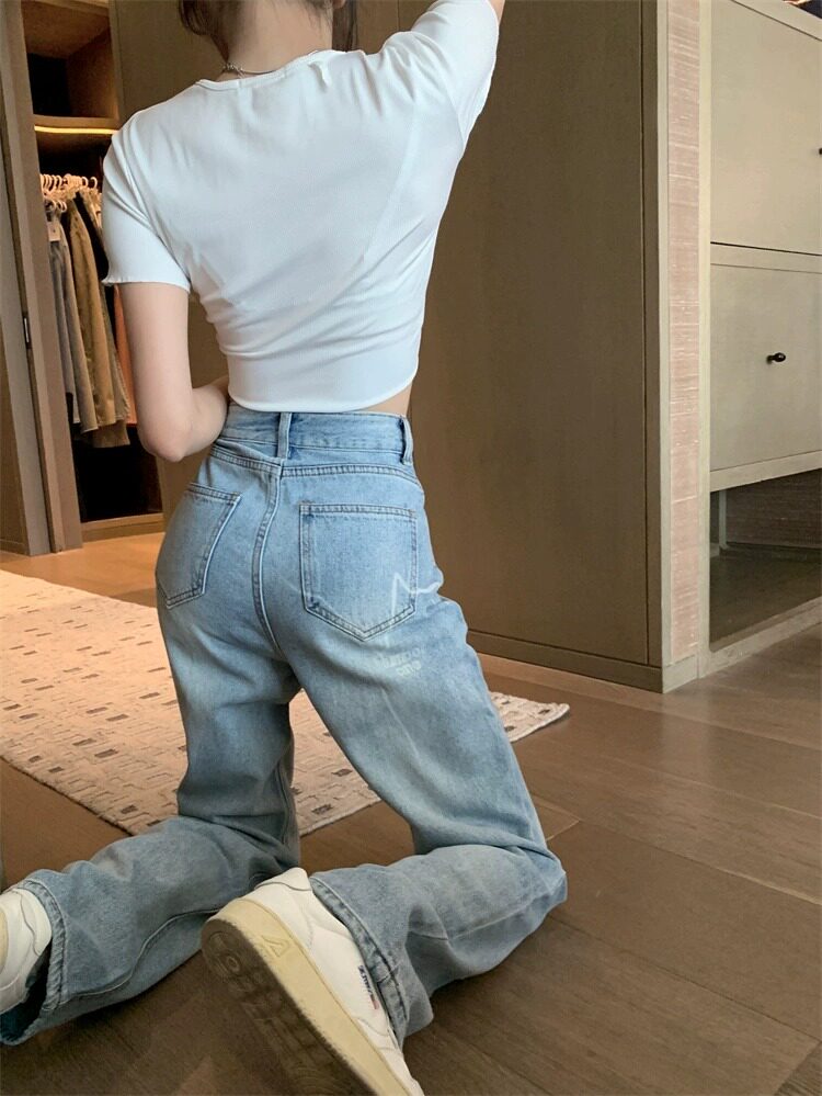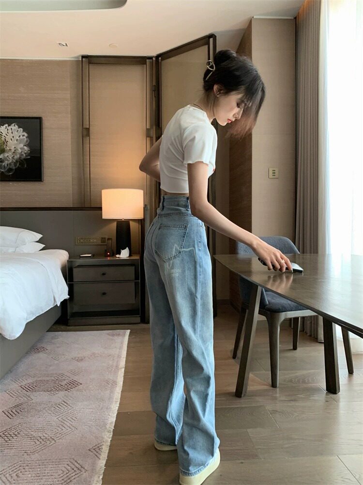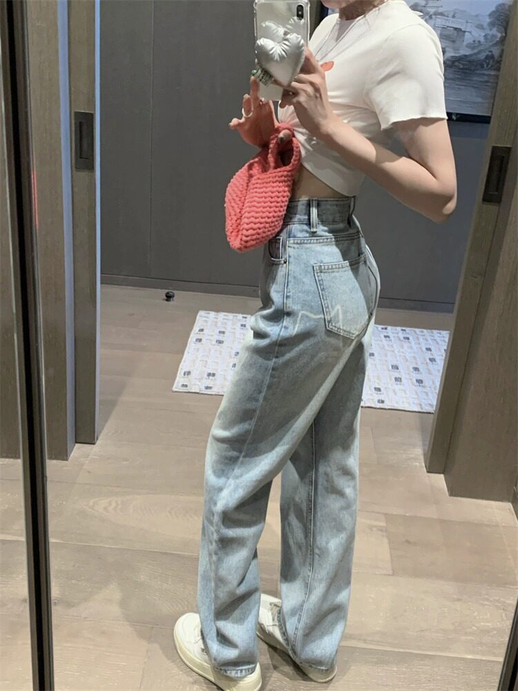 Светлые осенние джинсы, дизайнерские штаны, тренд сезона, свободный прямой крой