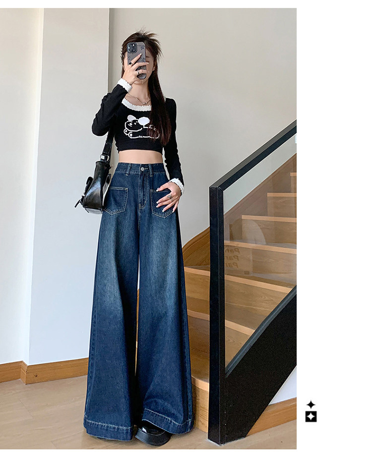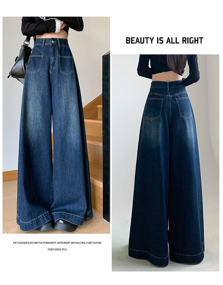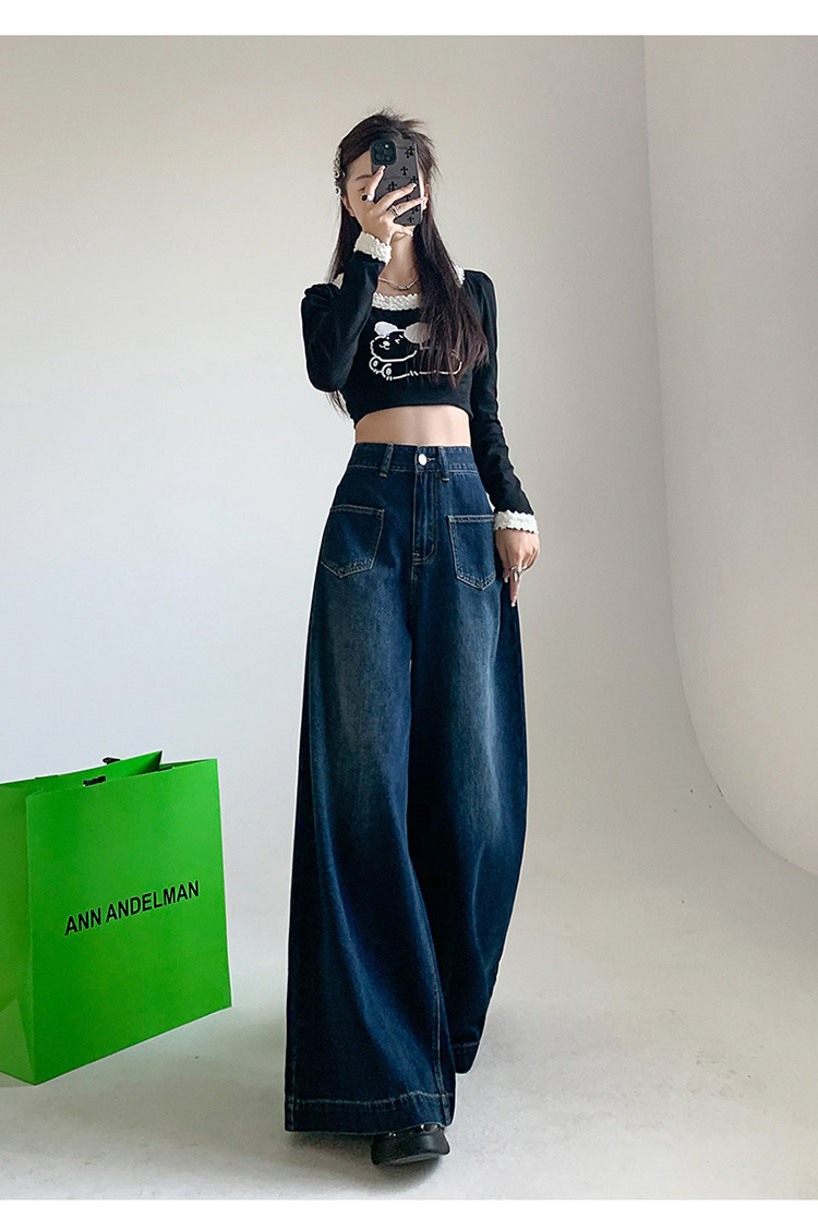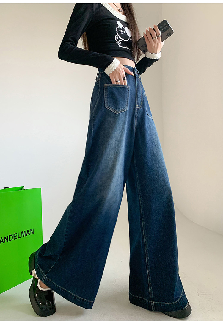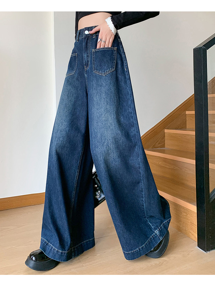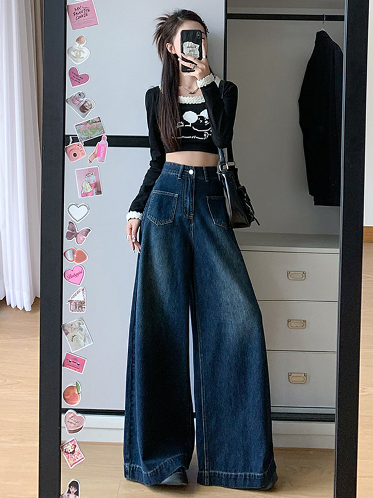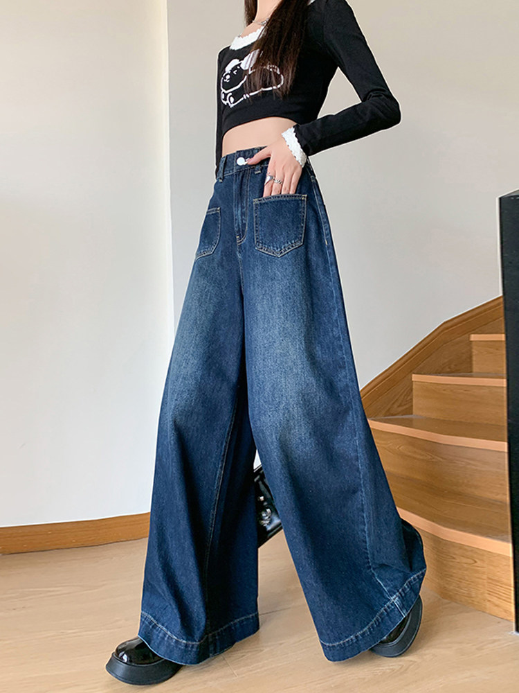 Ретро синие осенние джинсы, приталенные штаны, свободный крой, высокая талия, оверсайз