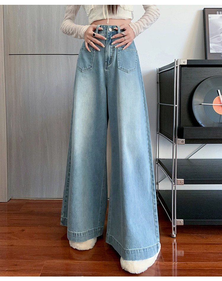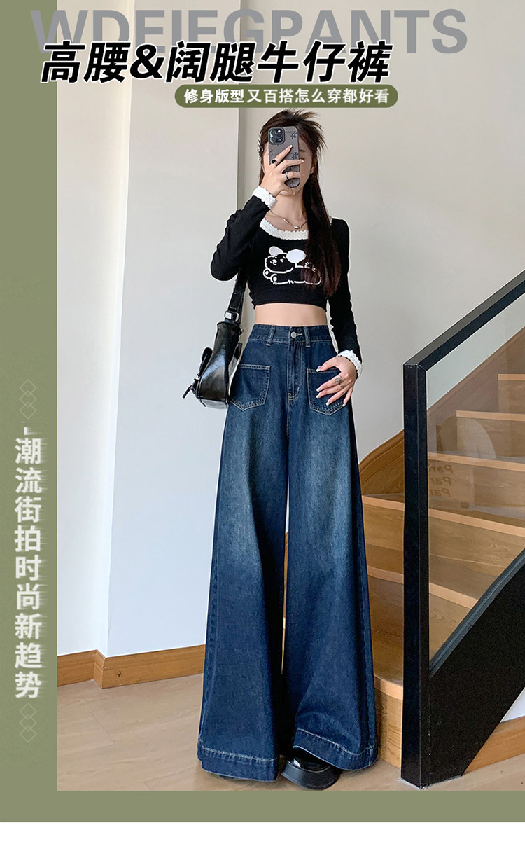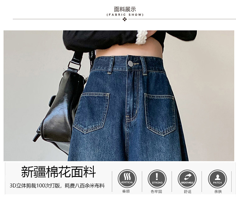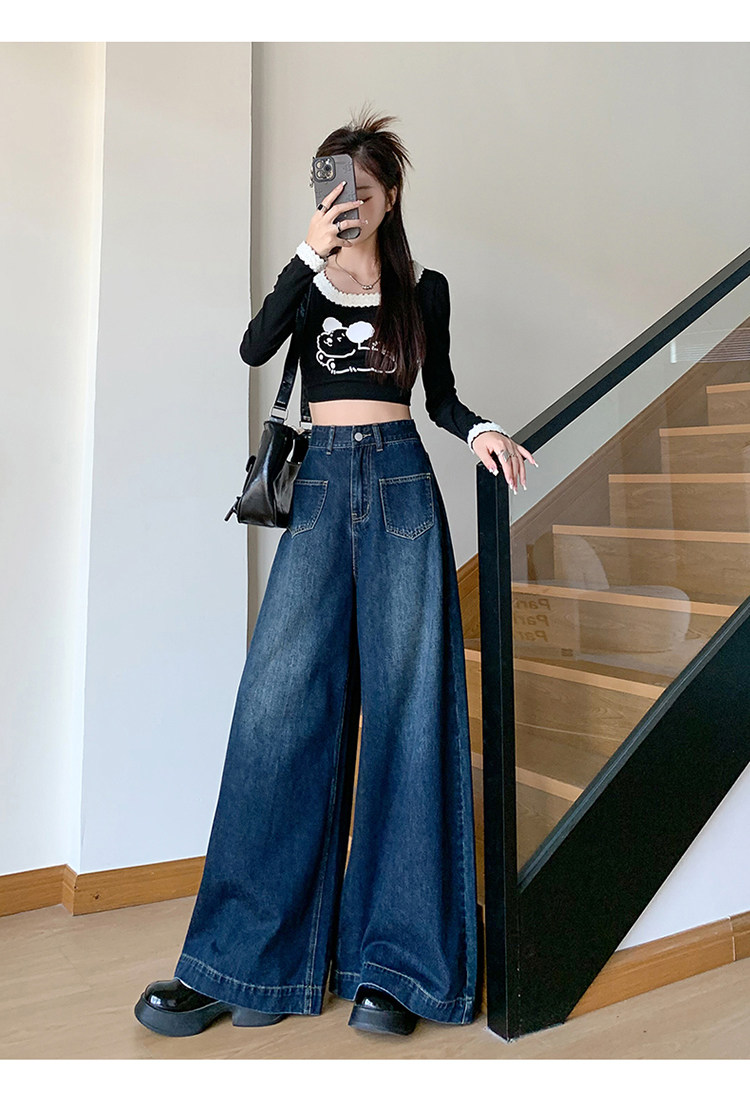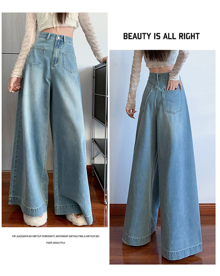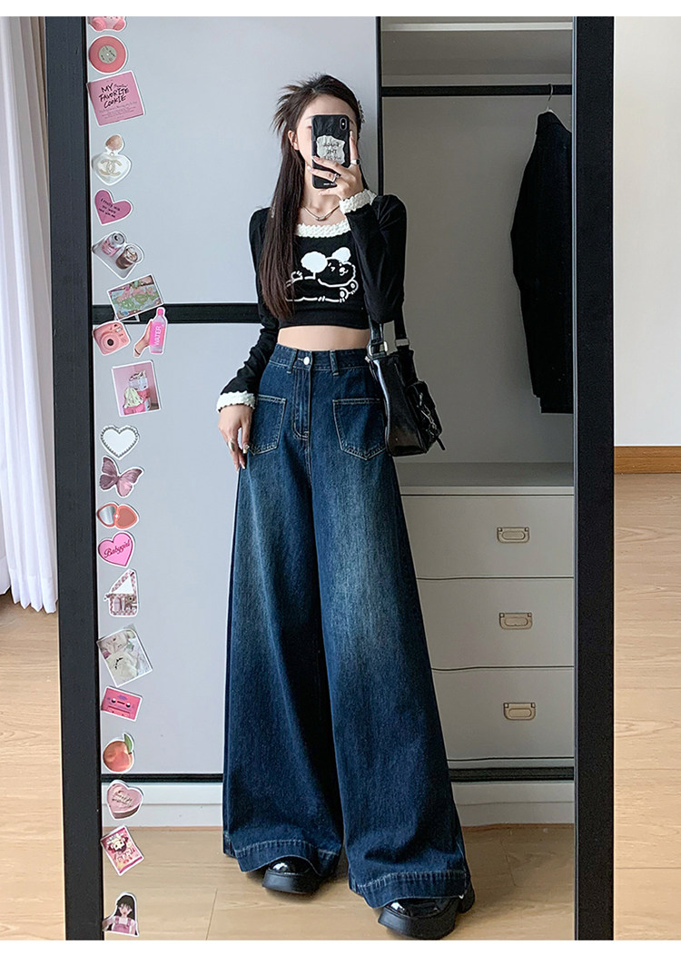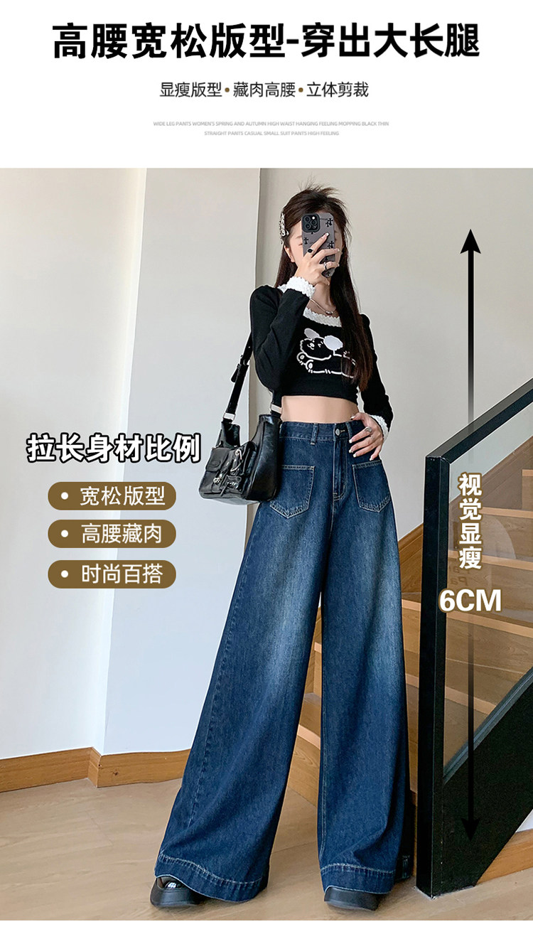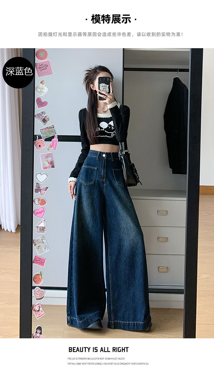Ретро синие осенние джинсы, приталенные штаны, свободный крой, высокая талия, оверсайз