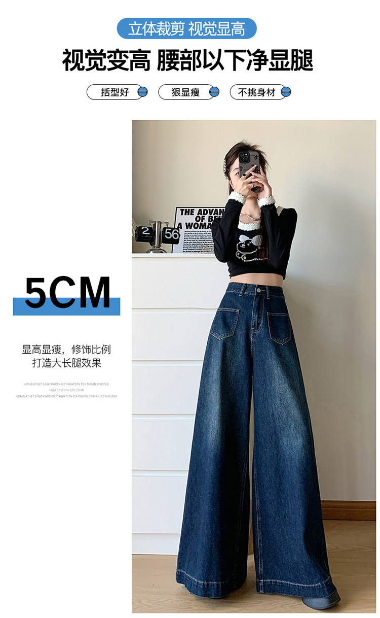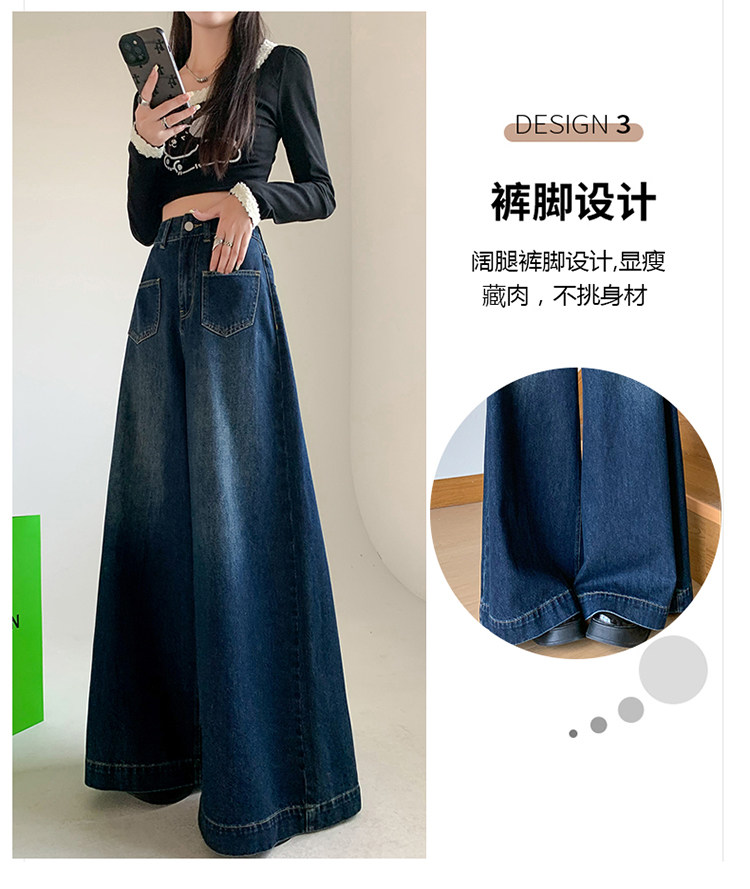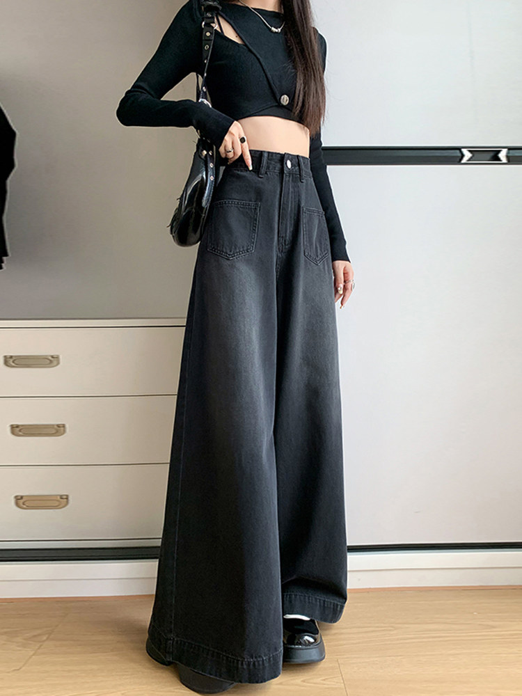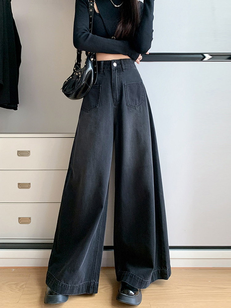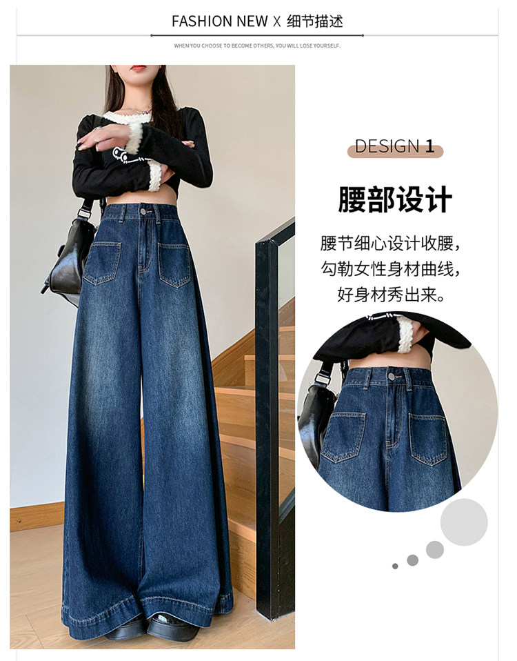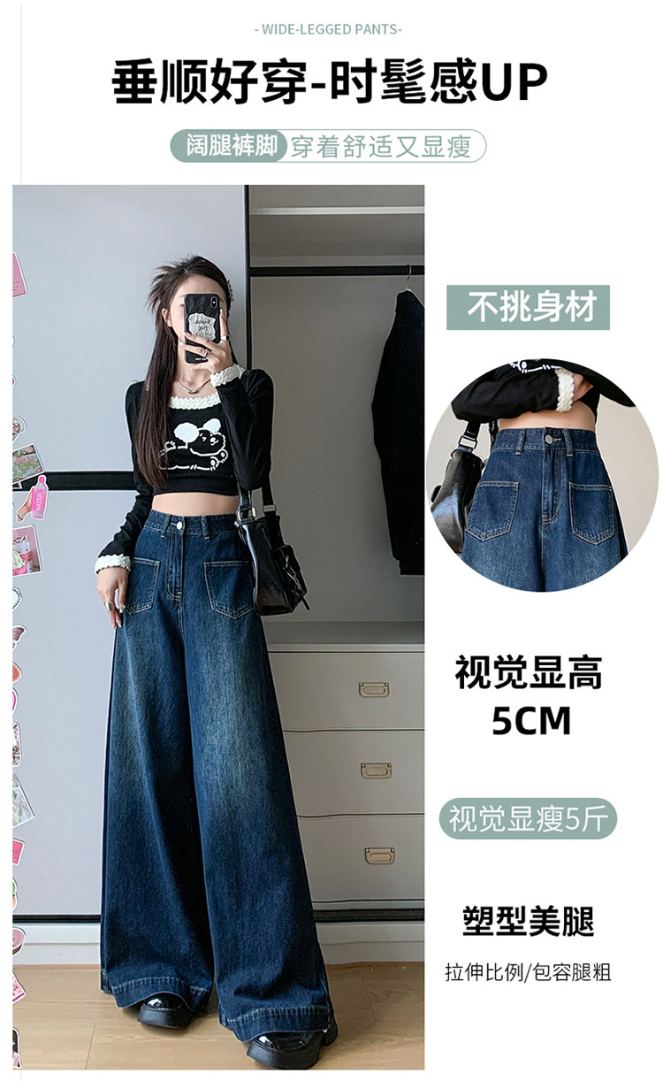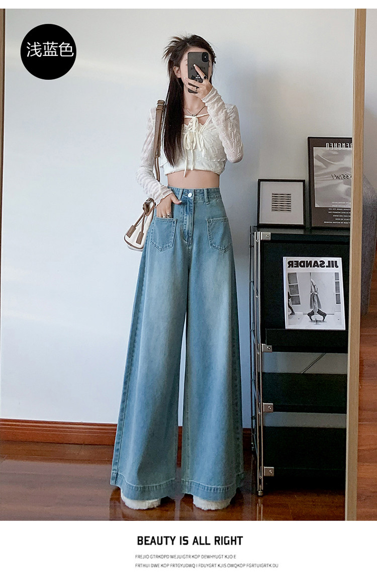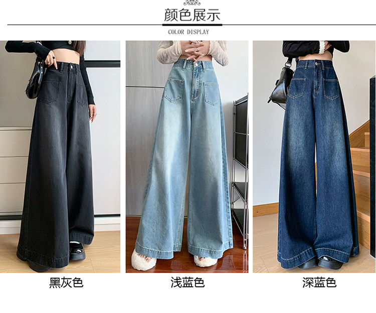 Ретро синие осенние джинсы, приталенные штаны, свободный крой, высокая талия, оверсайз