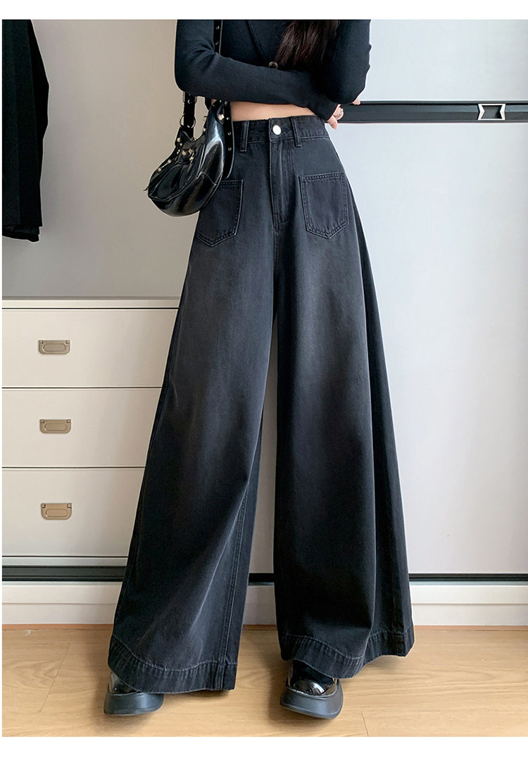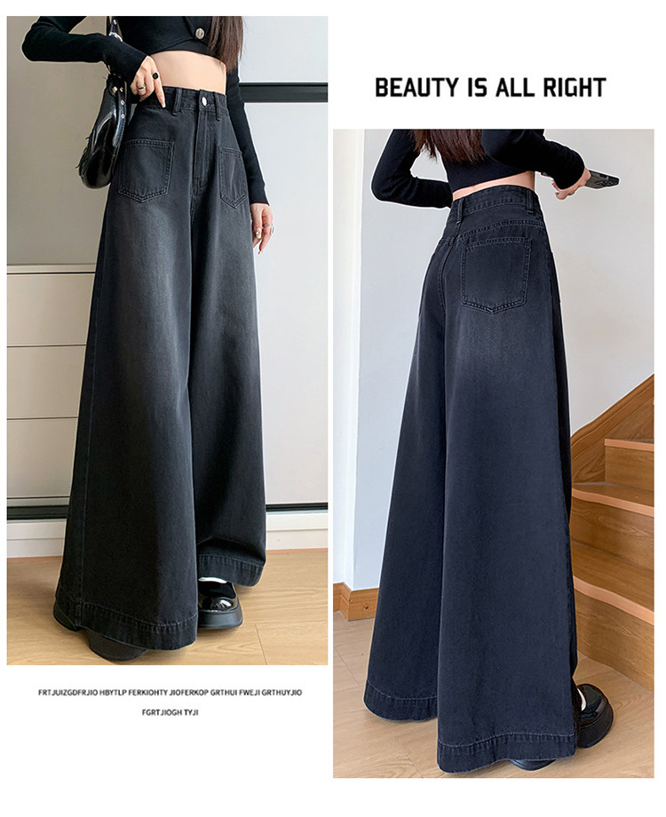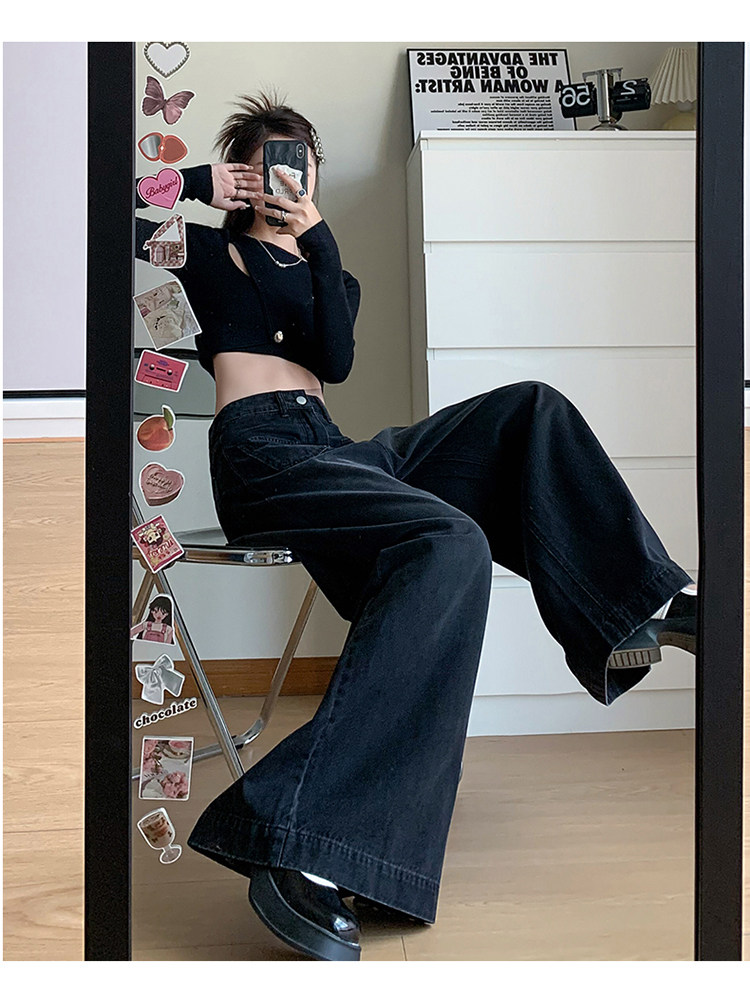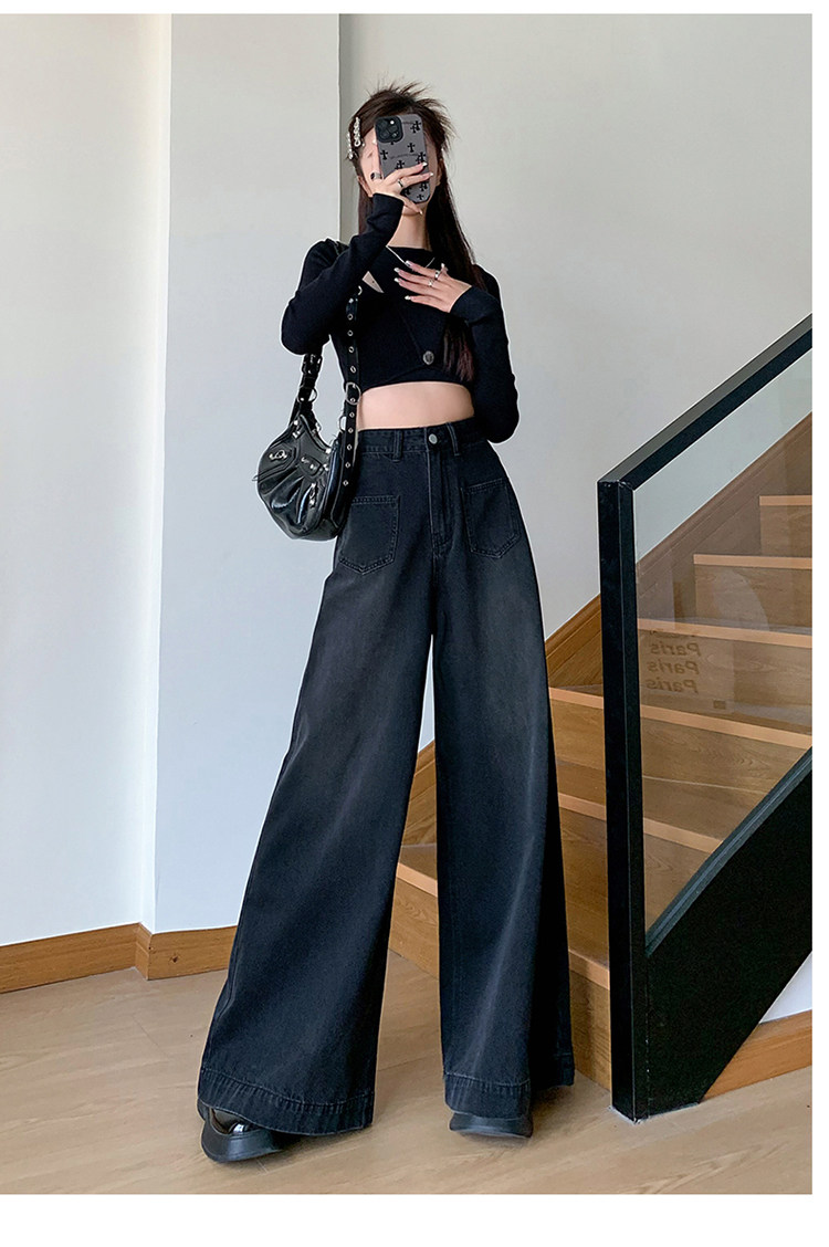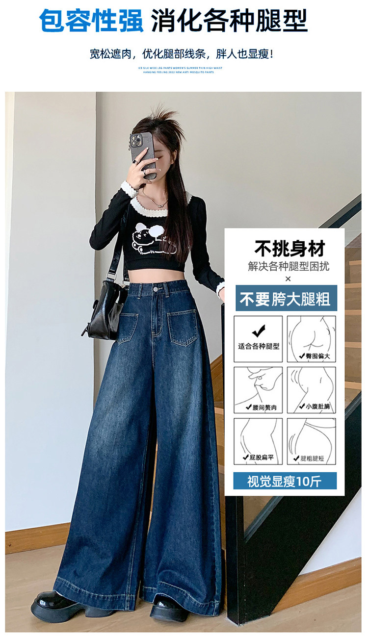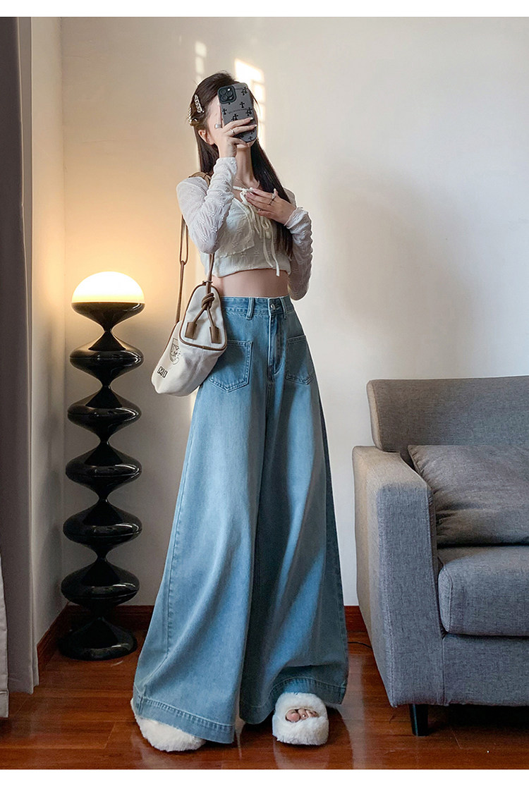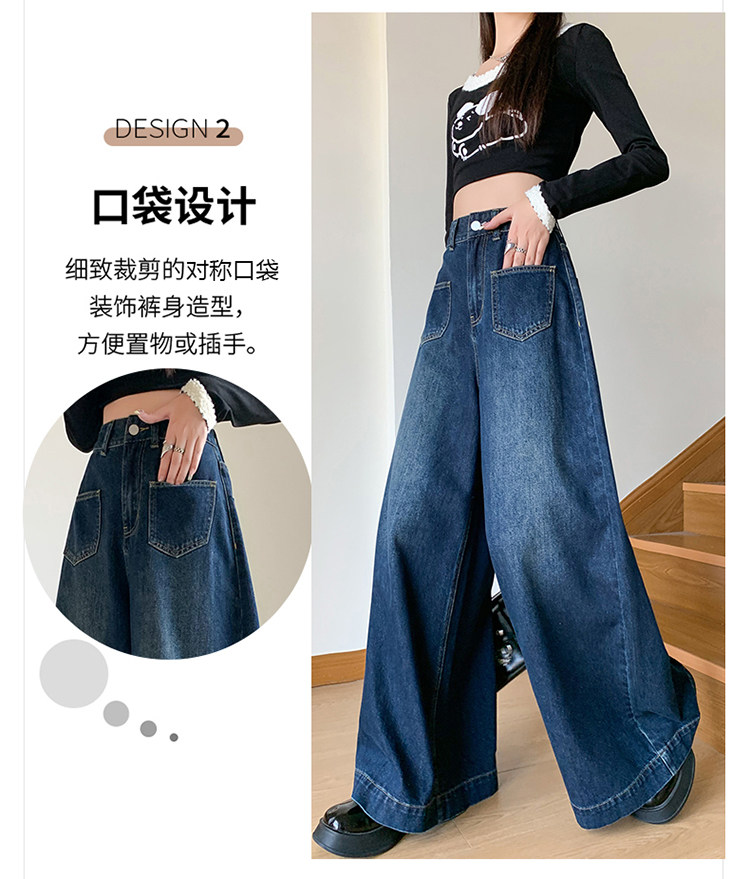 Ретро синие осенние джинсы, приталенные штаны, свободный крой, высокая талия, оверсайз