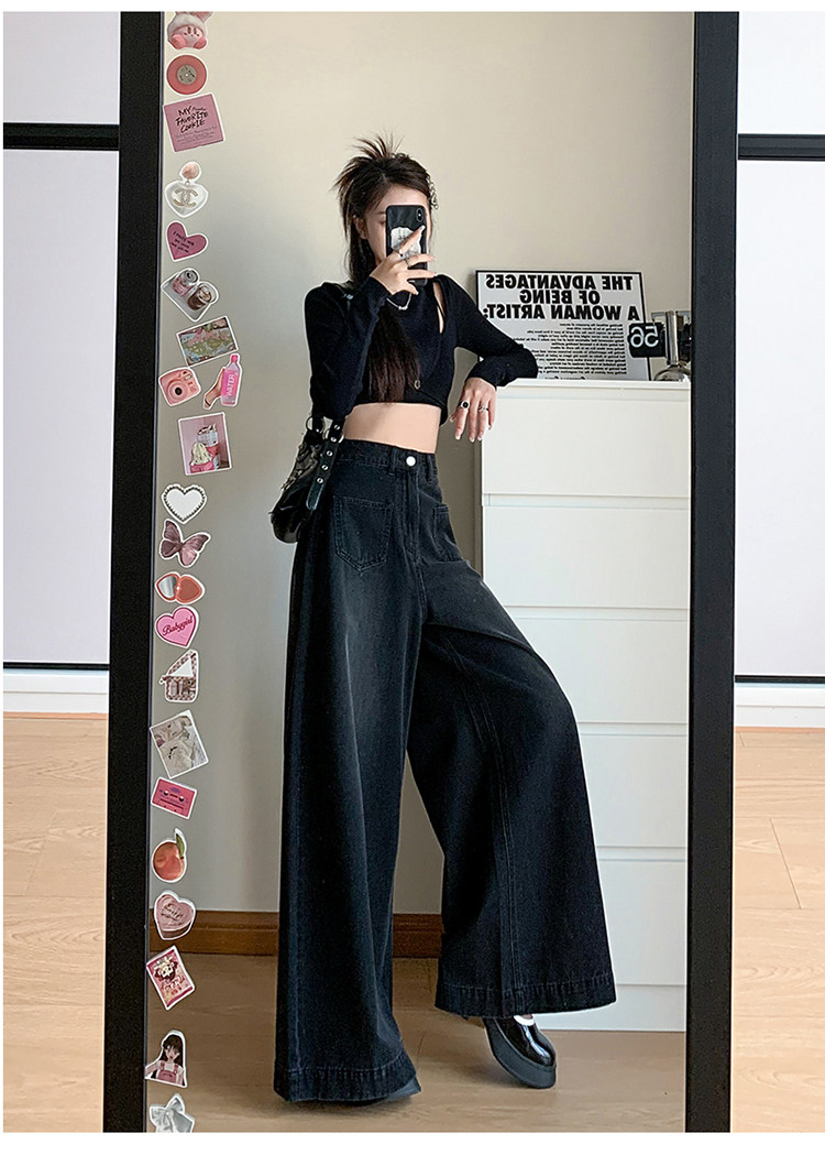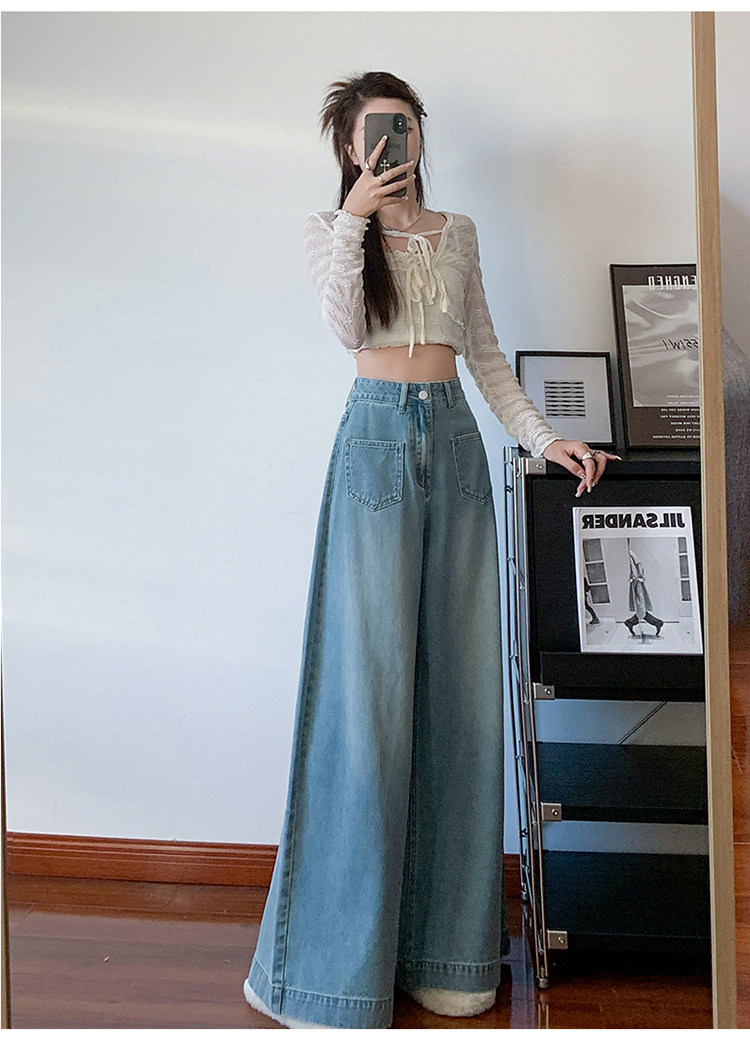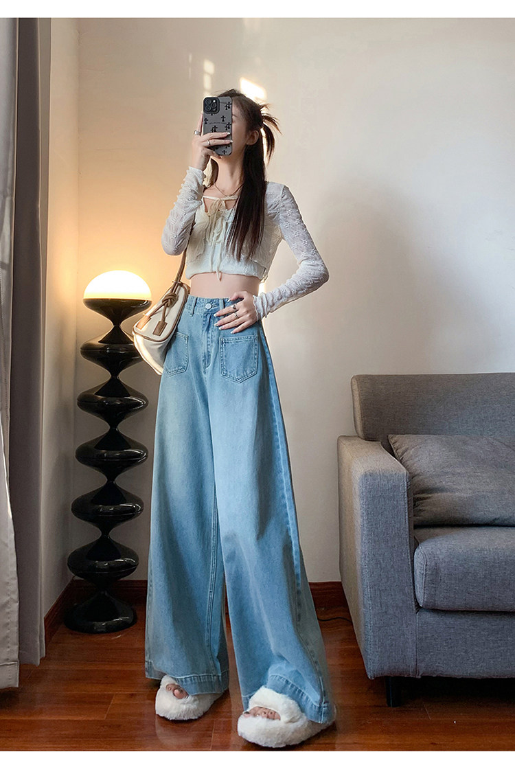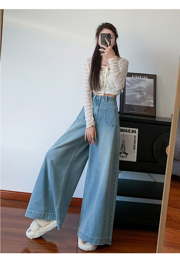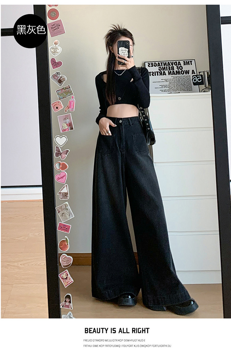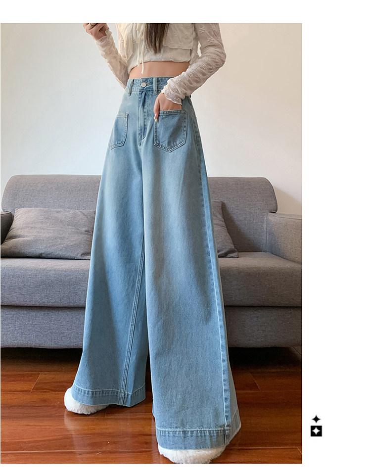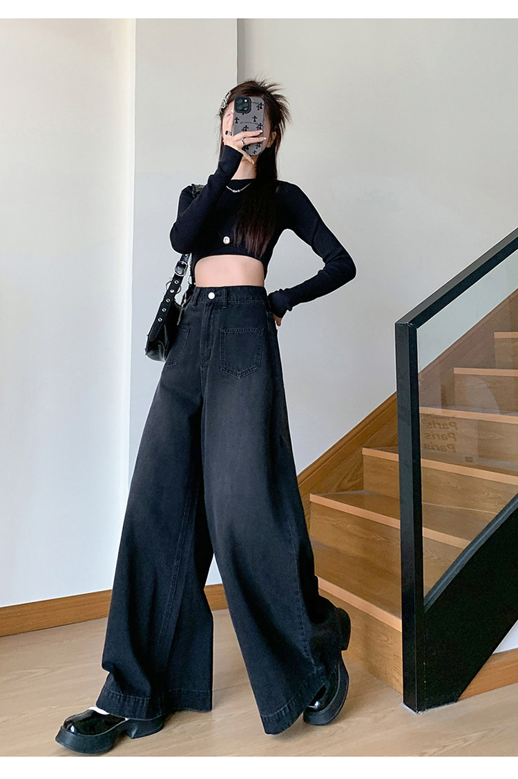 Ретро синие осенние джинсы, приталенные штаны, свободный крой, высокая талия, оверсайз