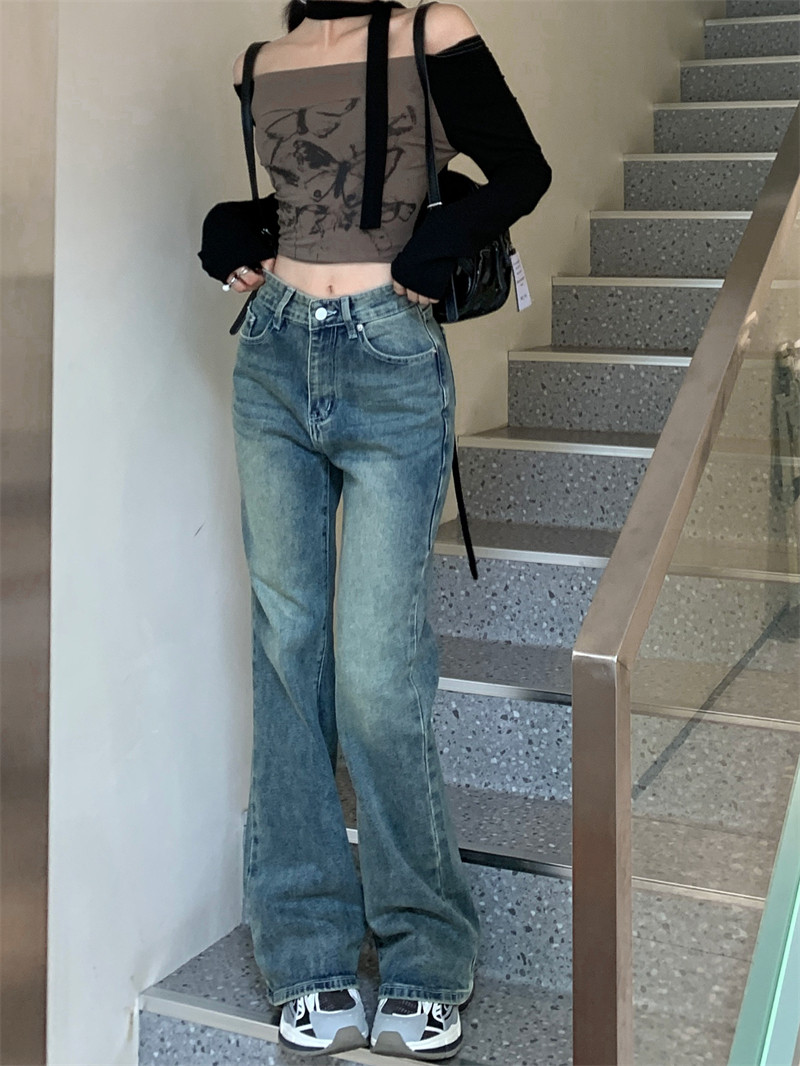 Штаны, ретро осенние прямые свободные джинсы, свободный прямой крой, подходит для подростков, ностальгия, высокая талия