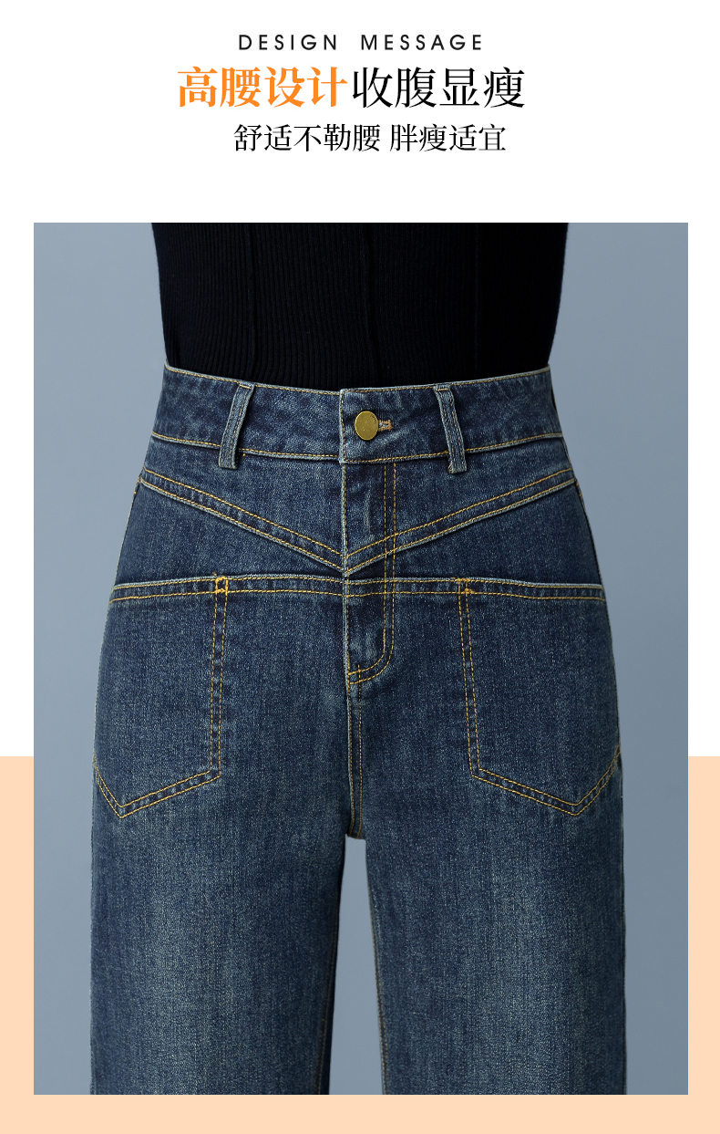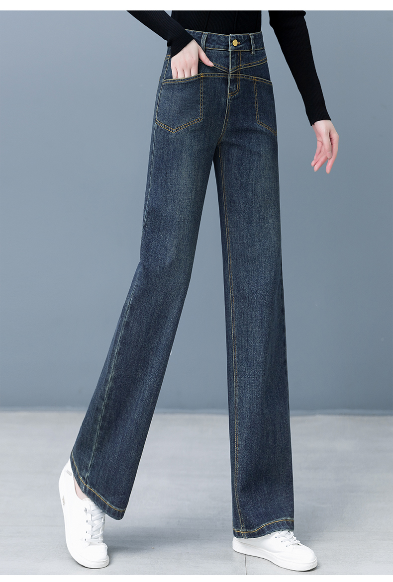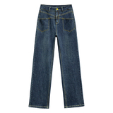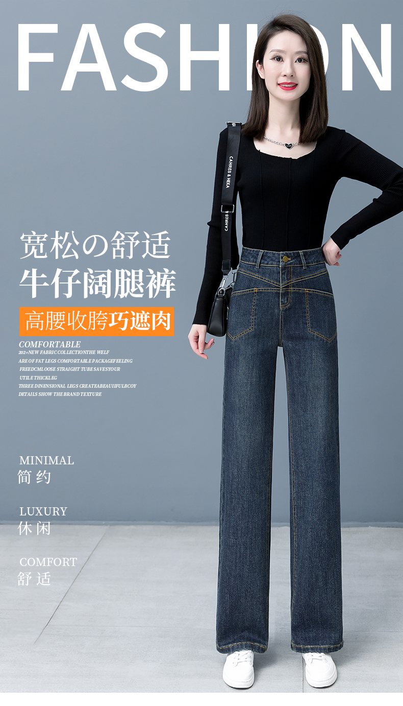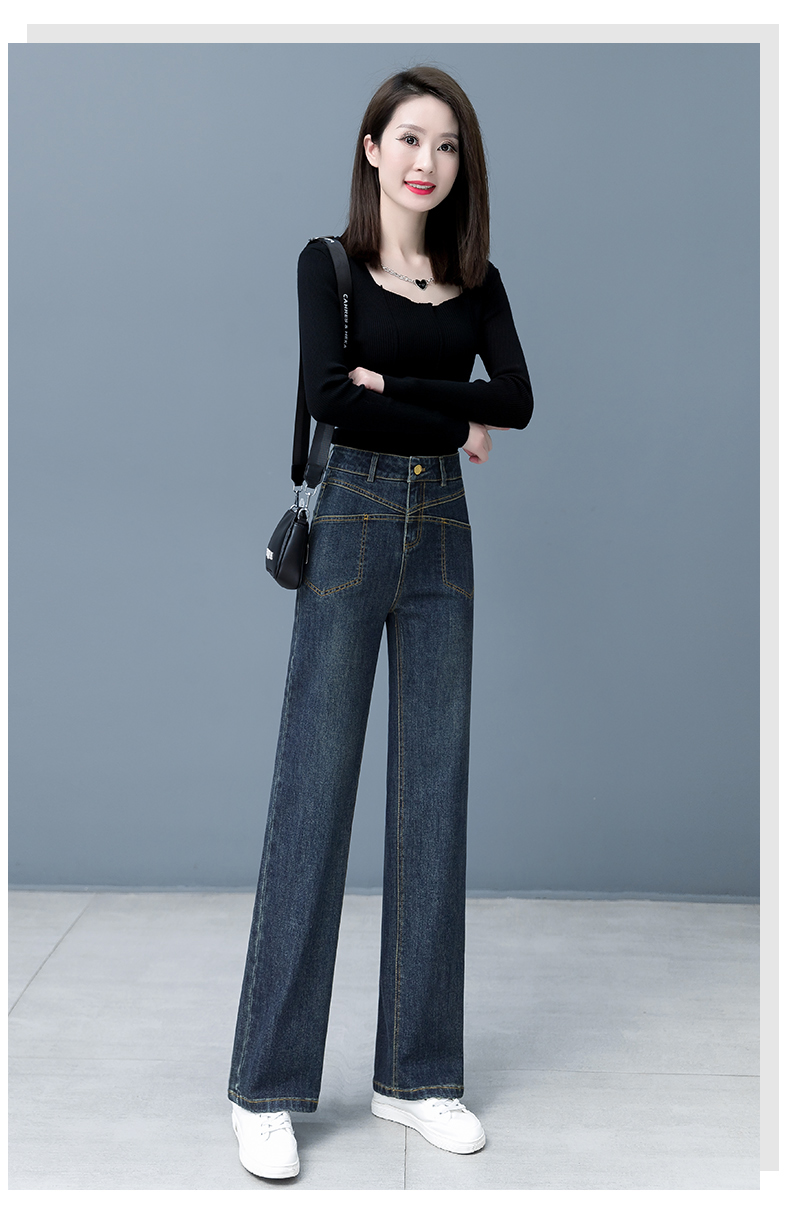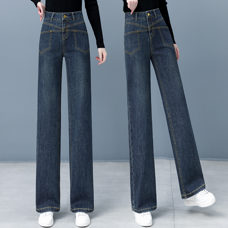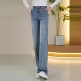 Джинсы, осенние приталенные штаны для отдыха, высокая талия, свободный прямой крой
