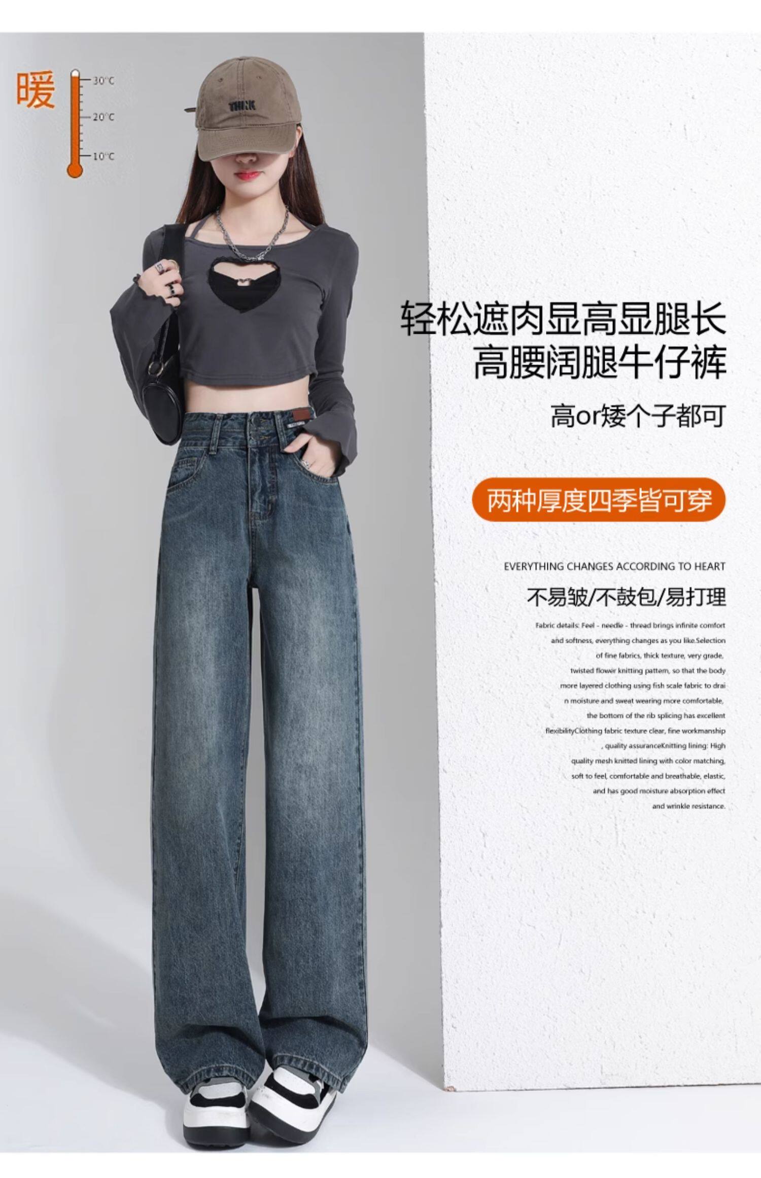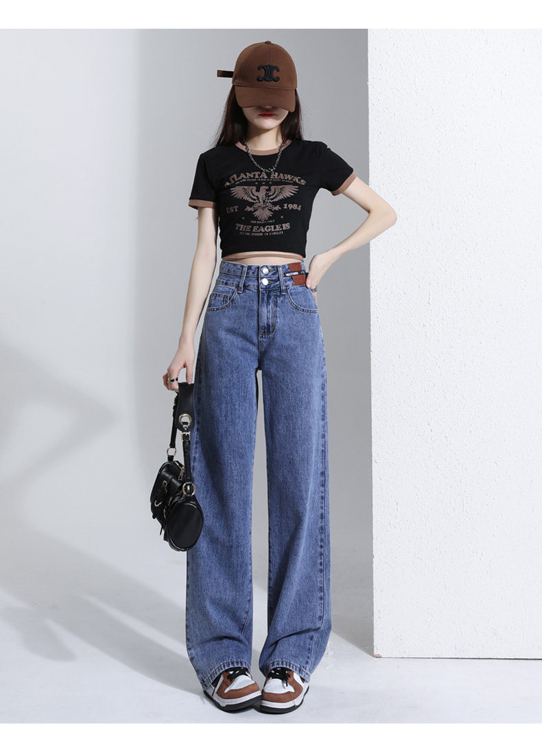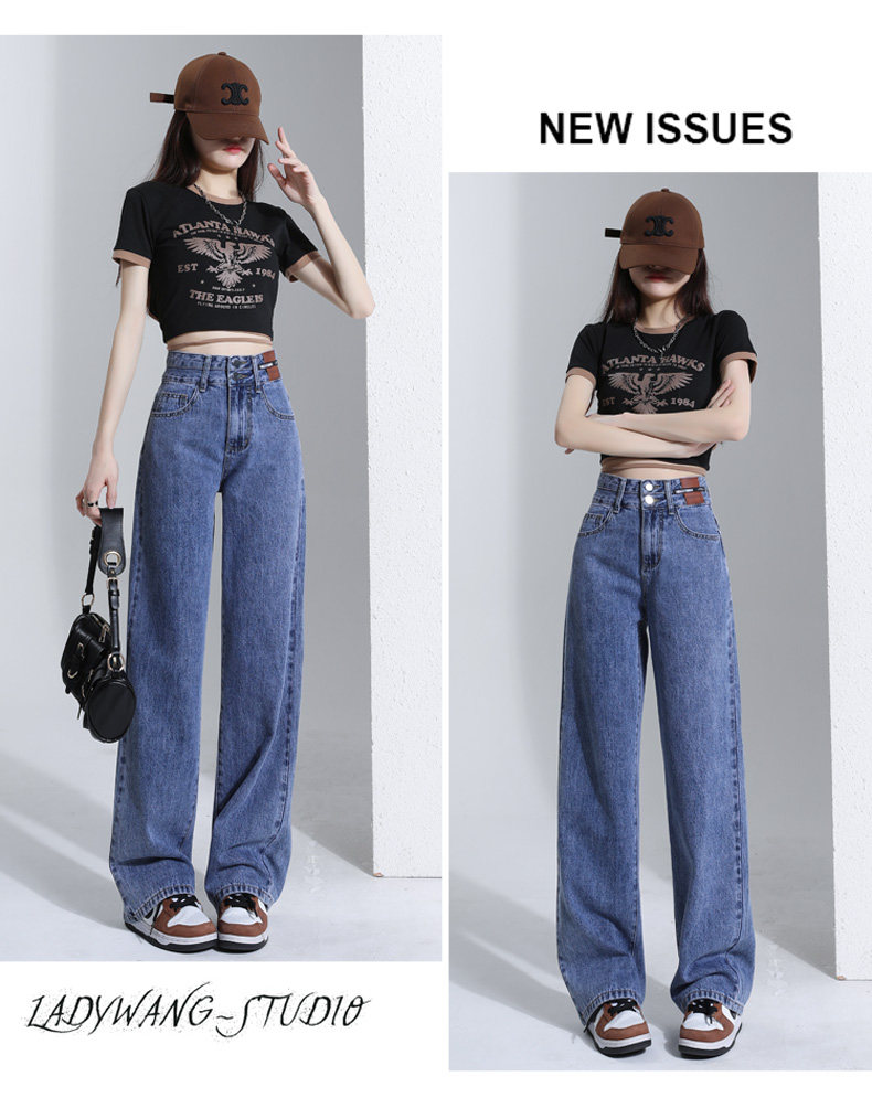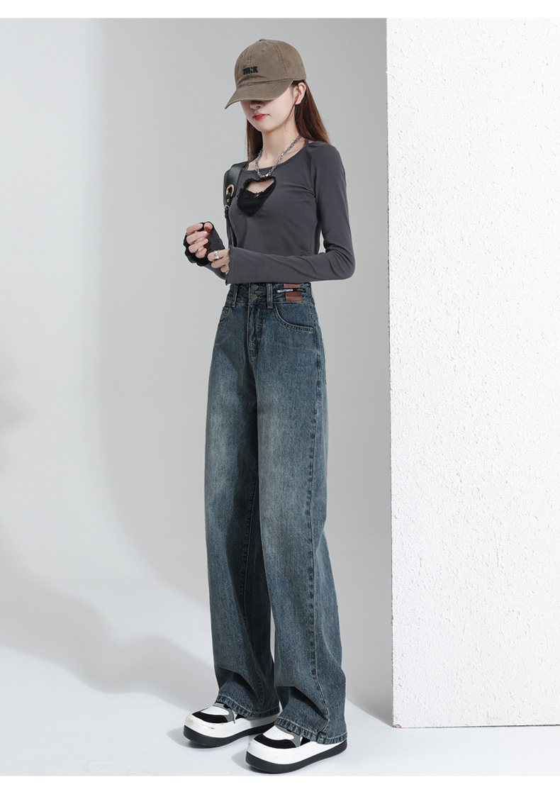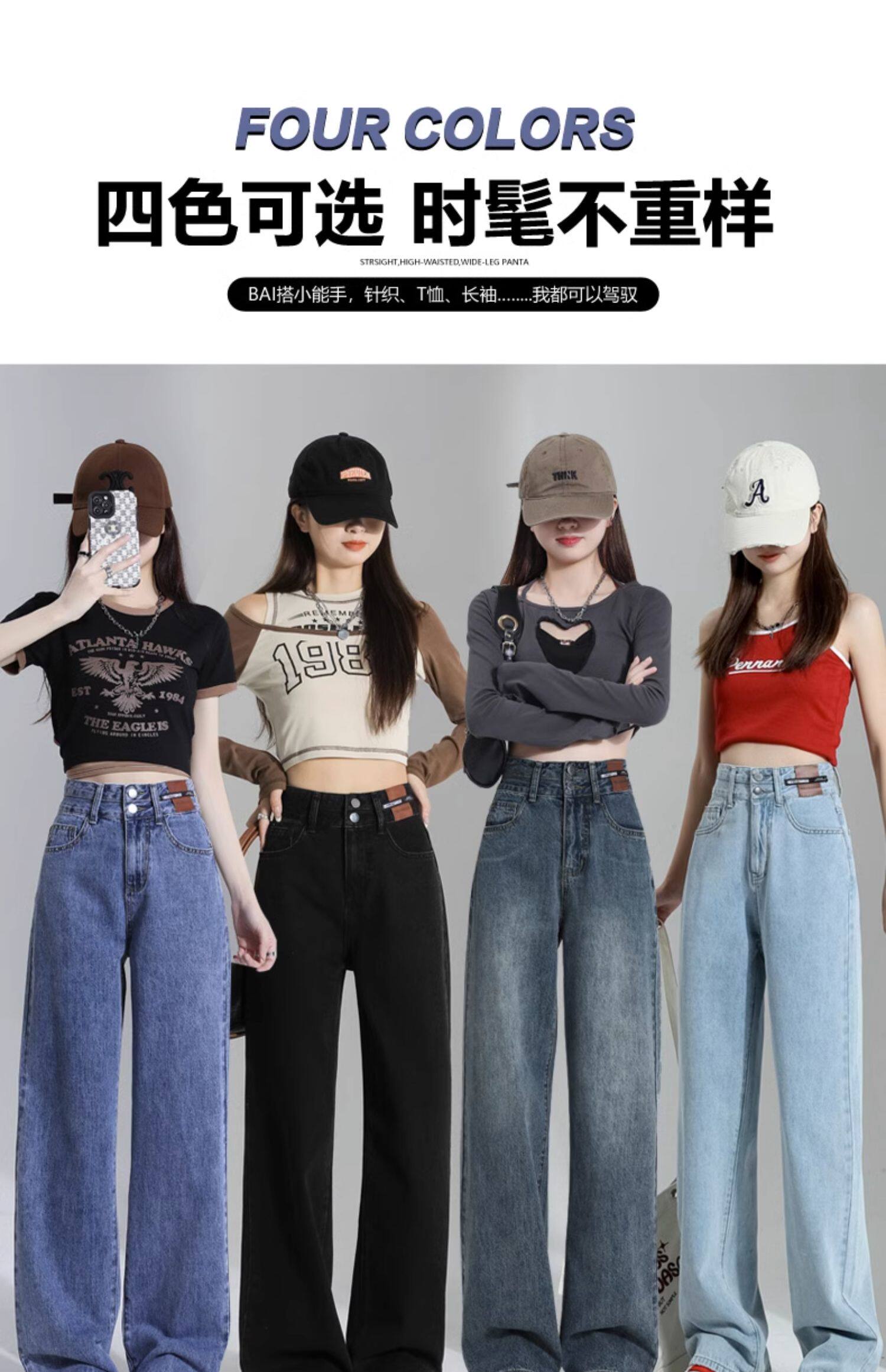 Ретро джинсы, весенние штаны, 2024 года, высокая талия, свободный прямой крой