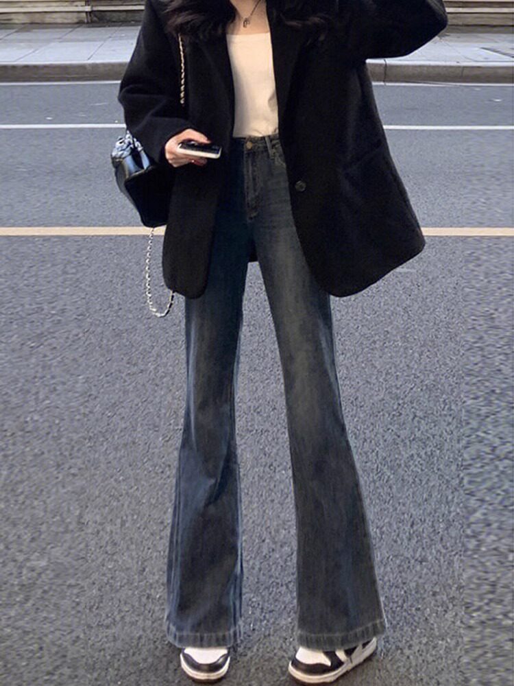 Мегафон, джинсы, весенние штаны, большой размер, высокая талия, по фигуре, для формы тела «груша»