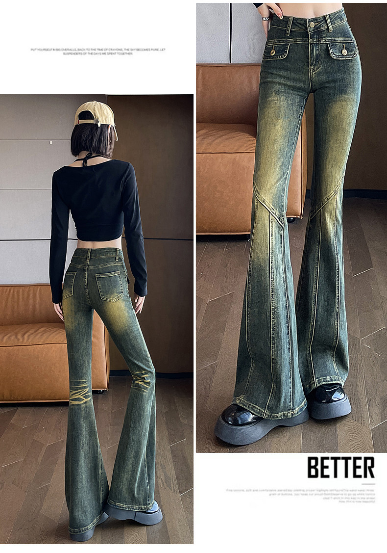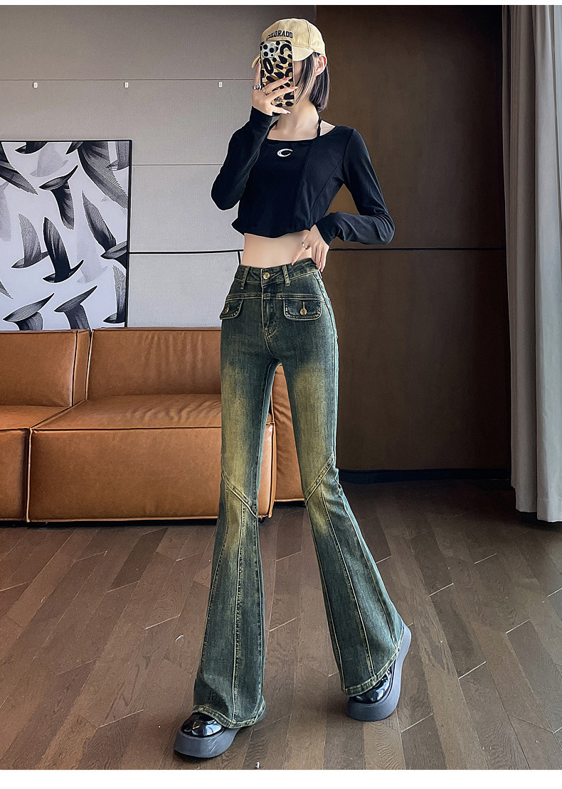 Осенние джинсы, демисезонные штаны, зимние штаны-клёш, 2025 года, новая коллекция, высокая талия