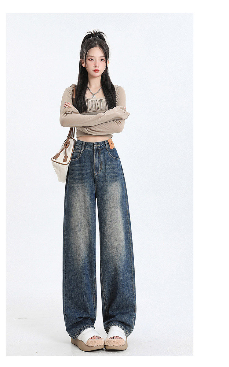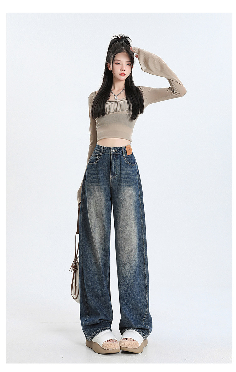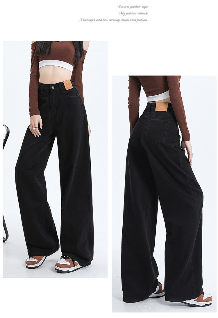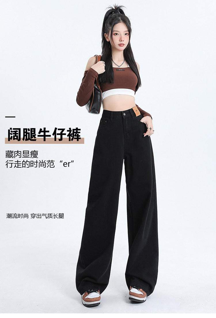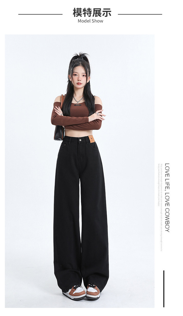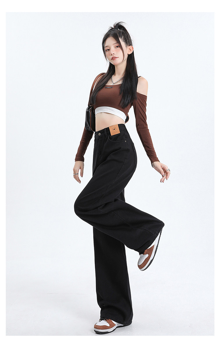 Черные джинсы, штаны, в американском стиле, коллекция 2023, высокая талия, свободный прямой крой
