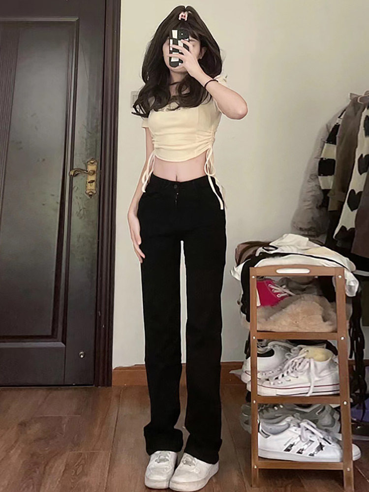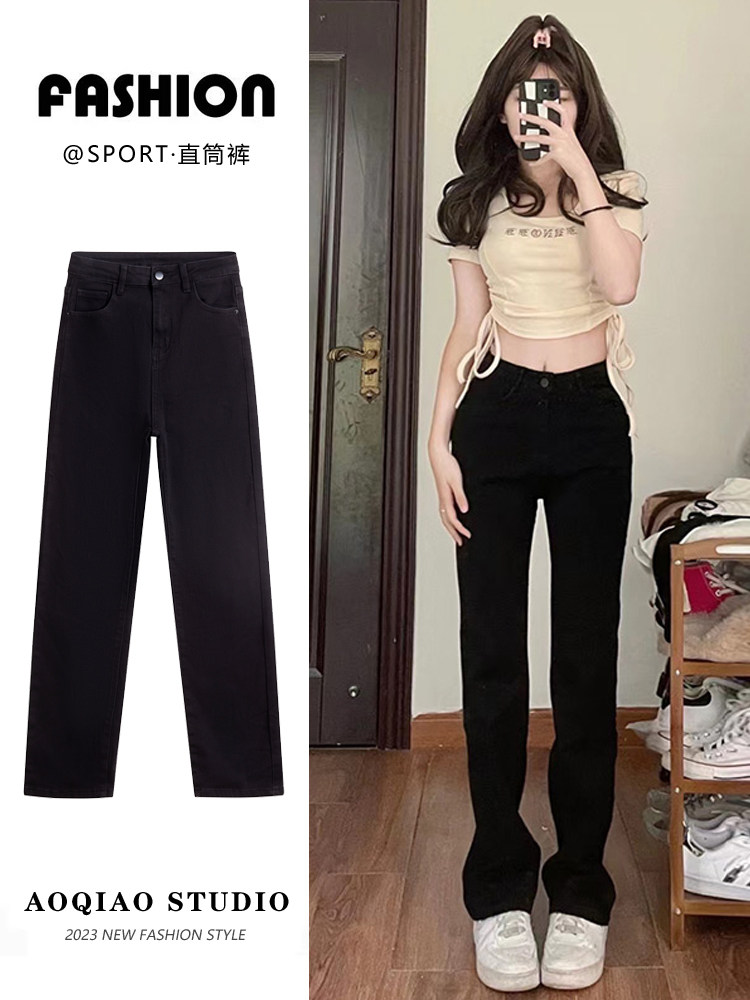 Черные цветные осенние прямые свободные джинсы, демисезонные штаны, высокая талия, большой размер