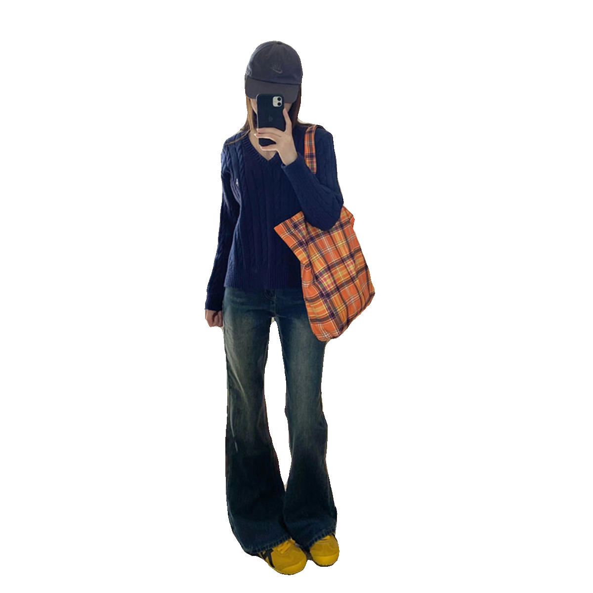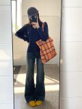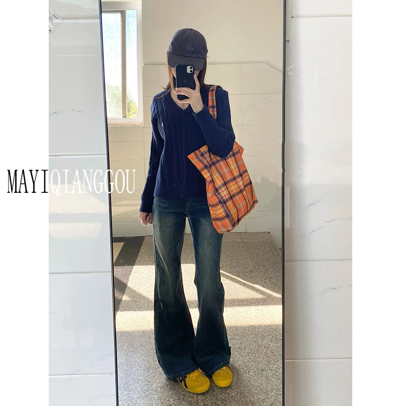 Длинный ретро мегафон, высокие джинсы, штаны, в американском стиле, высокая талия, свободный прямой крой