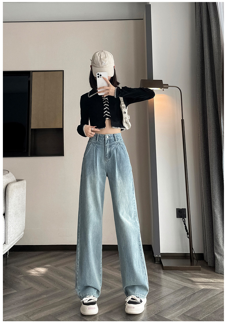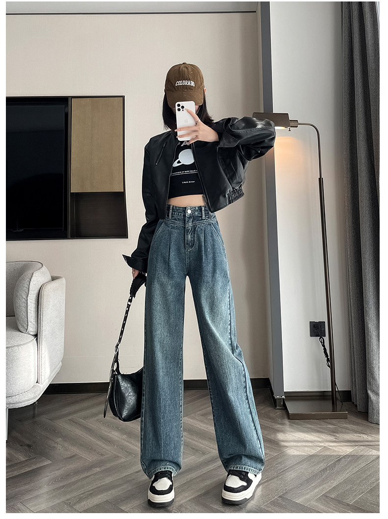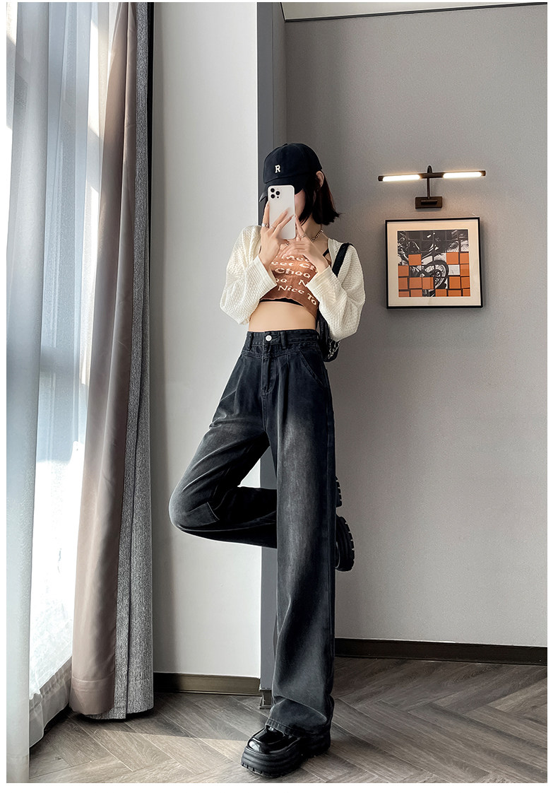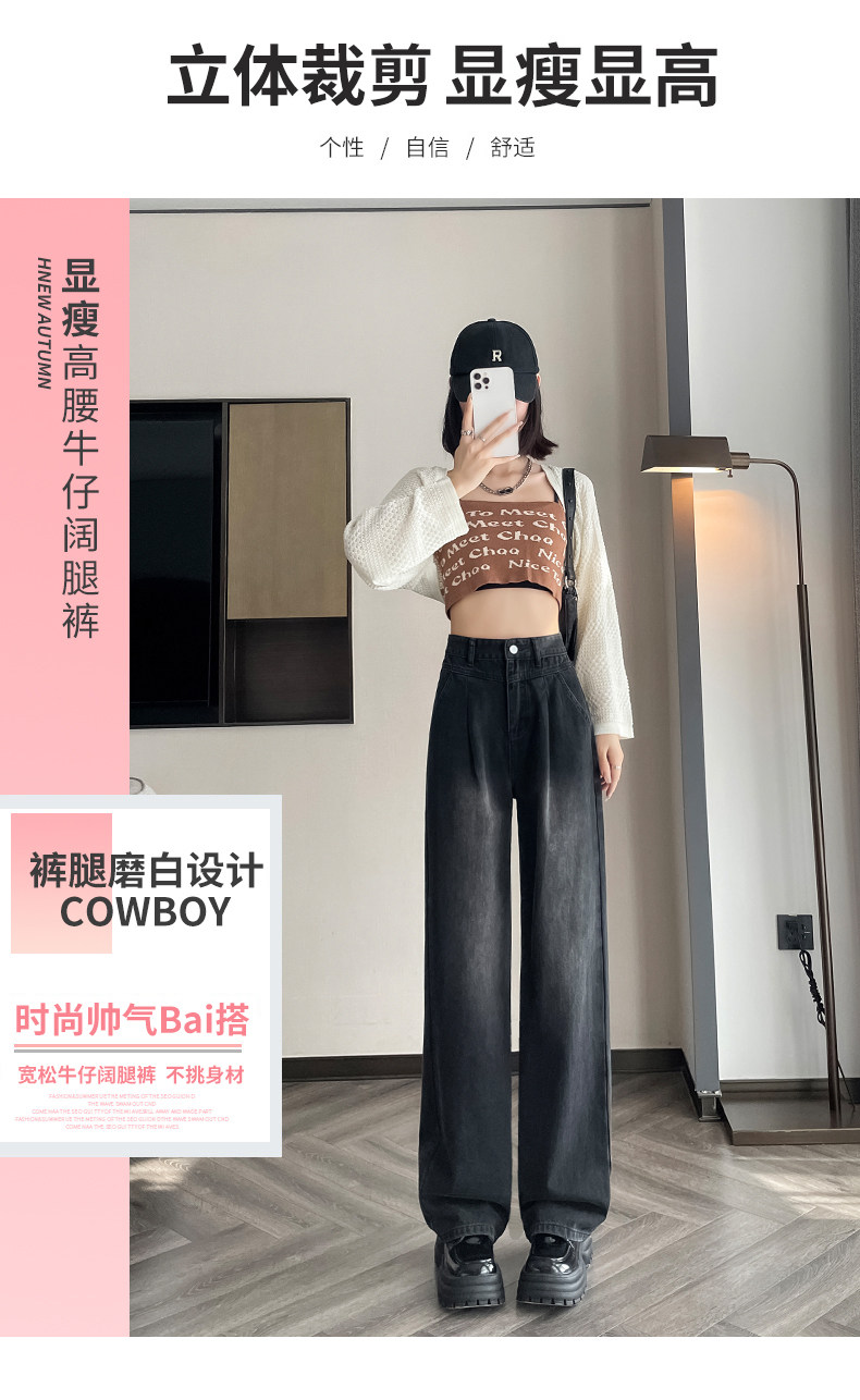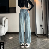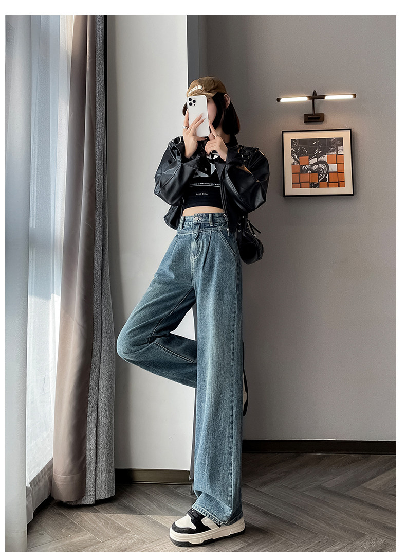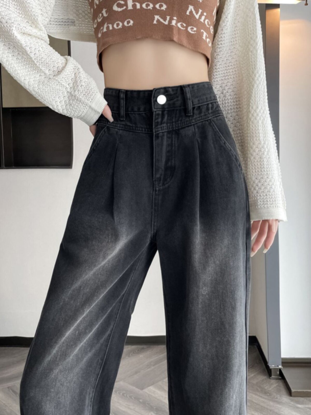 Осенние джинсы, штаны, высокая талия, свободный прямой крой