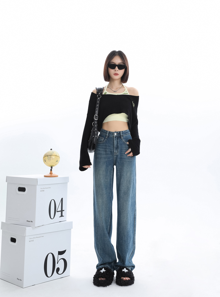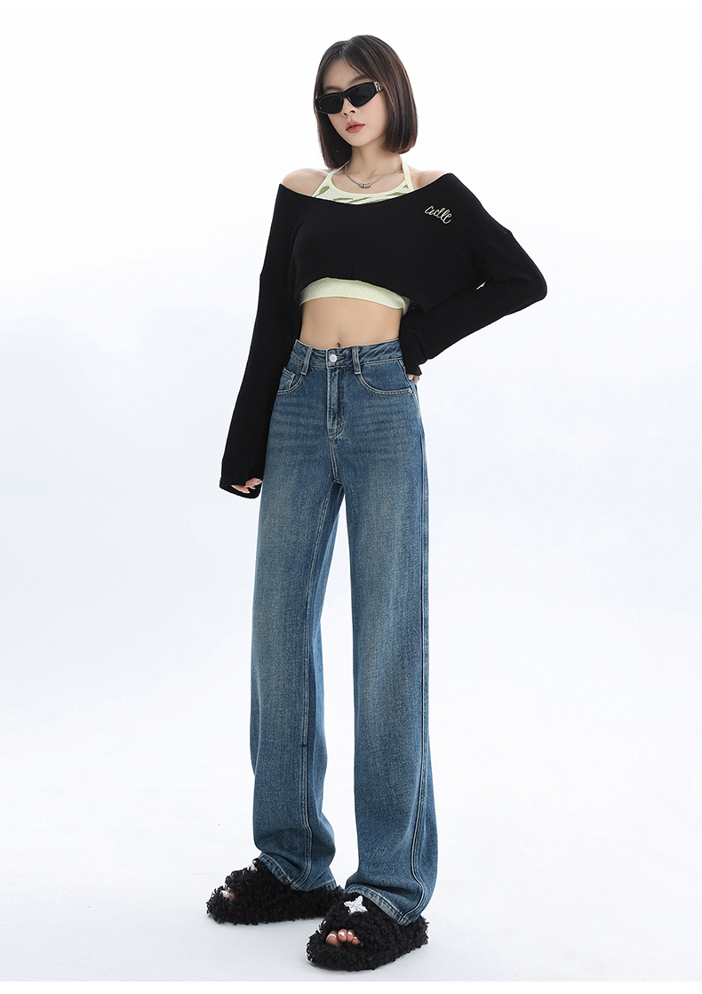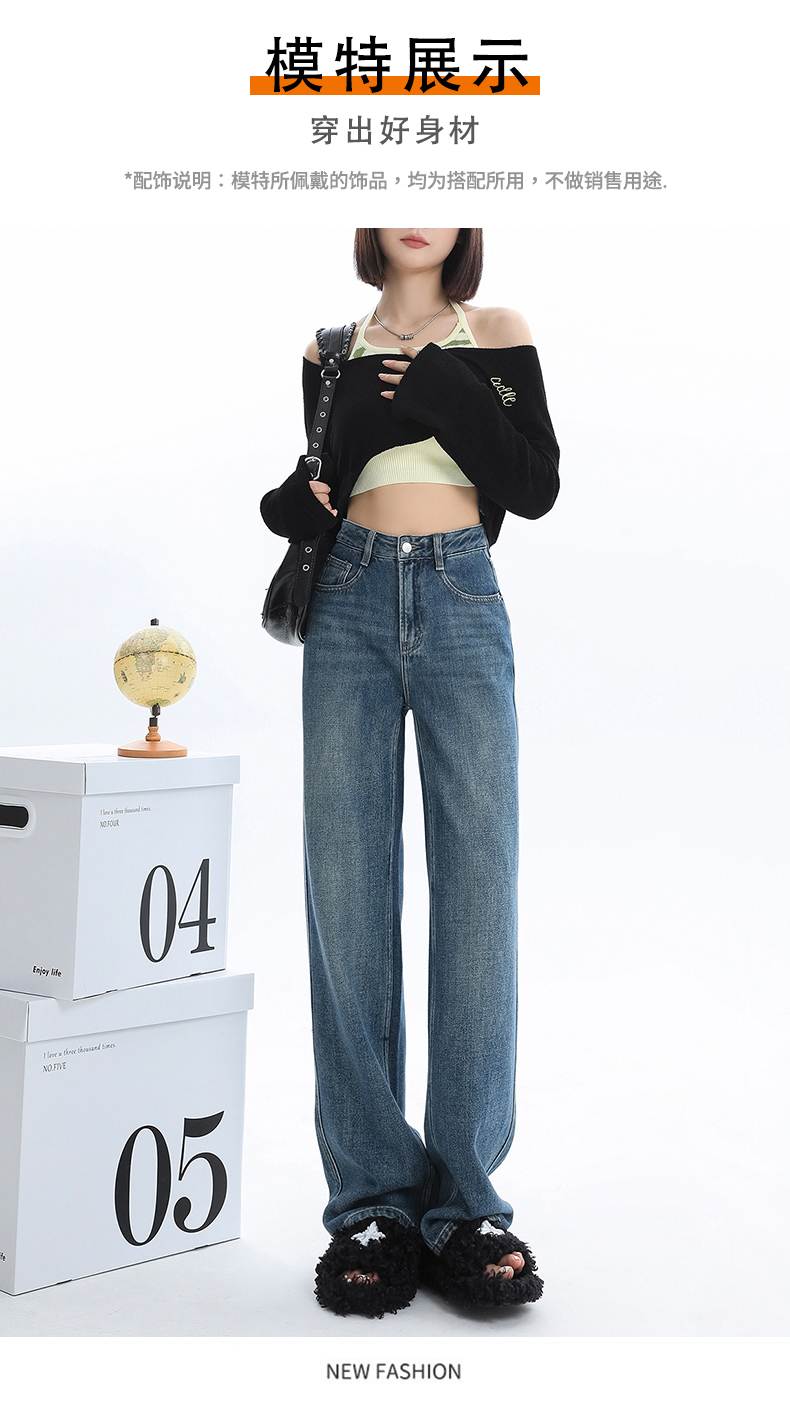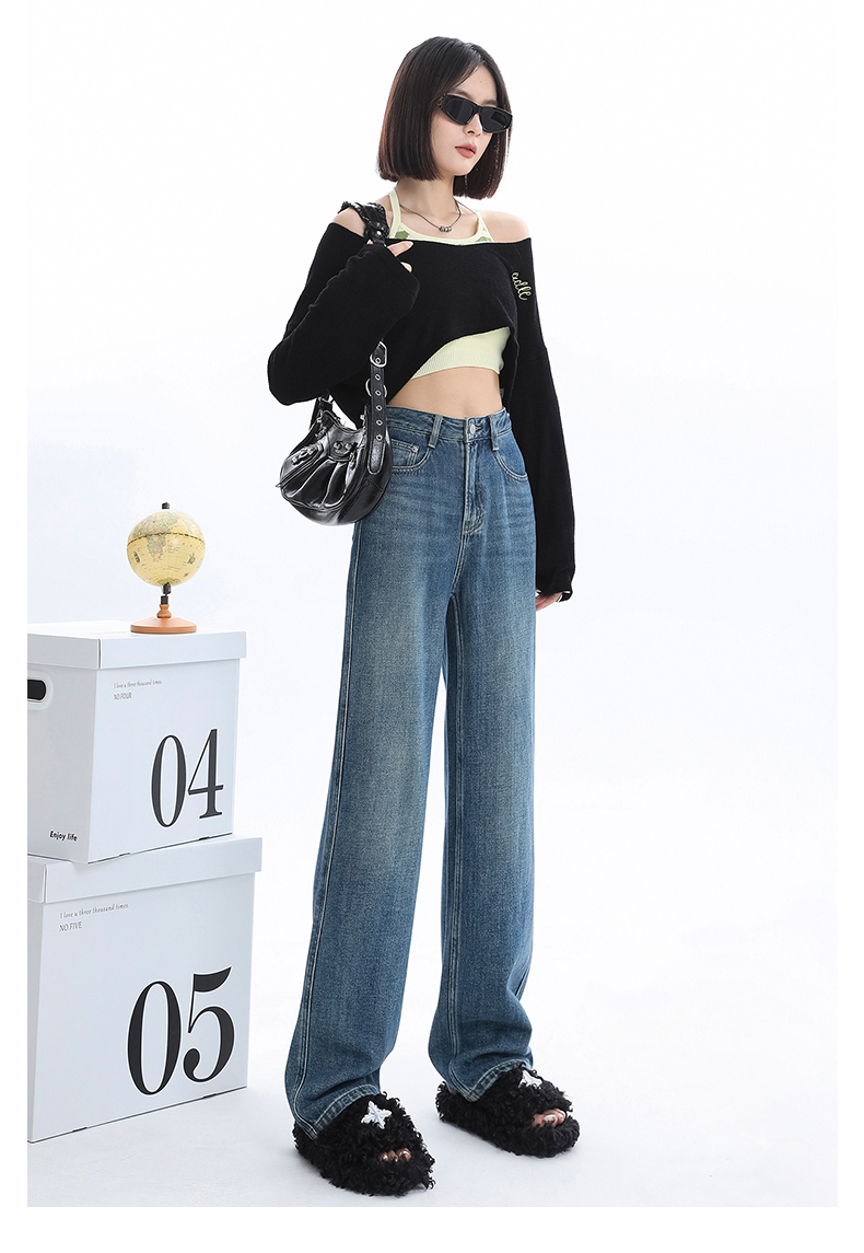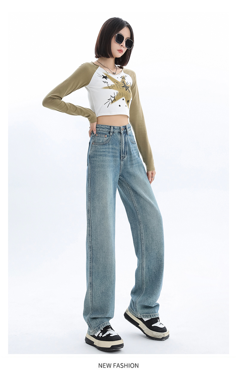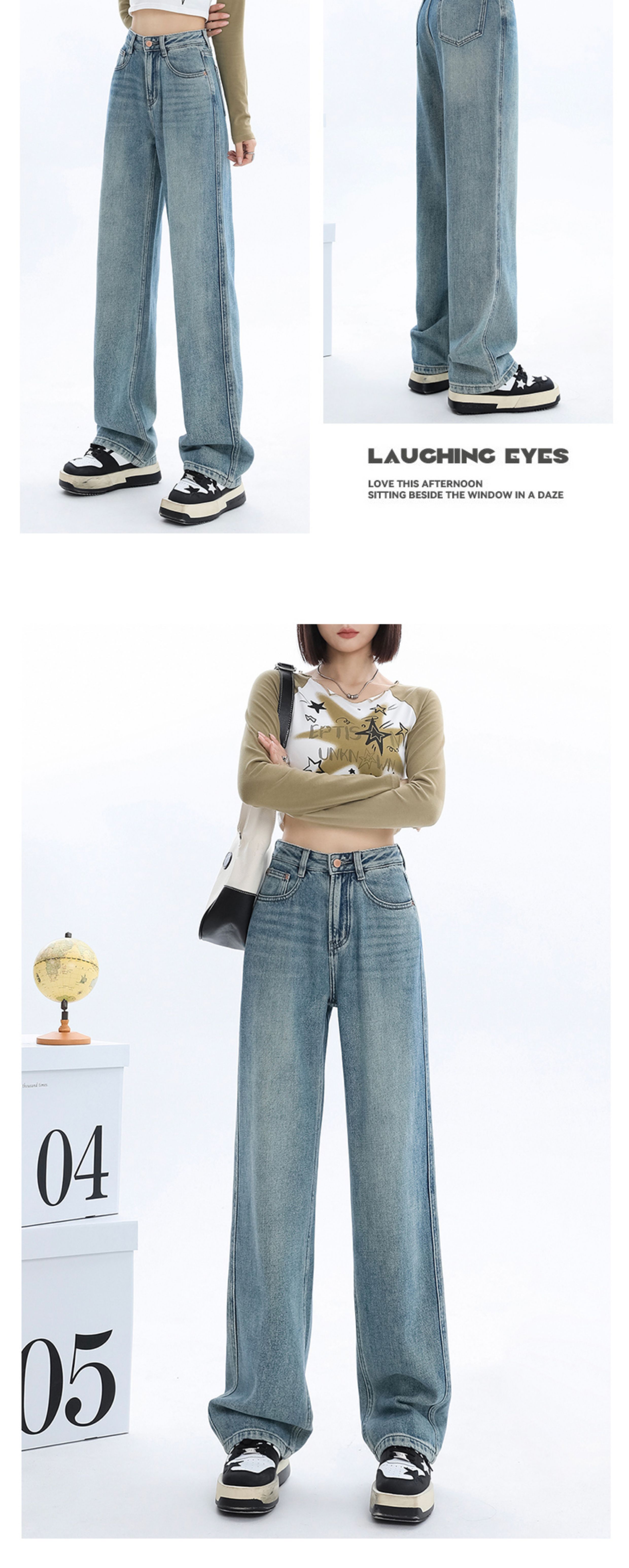 Джинсы, весенние штаны, 2024 года, высокая талия, свободный прямой крой