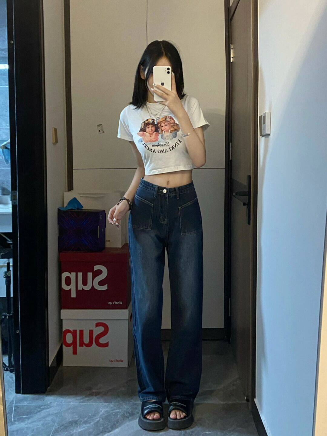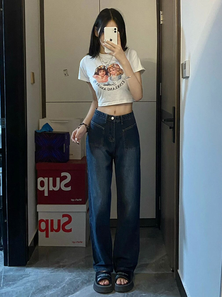 Летние прямые свободные джинсы, штаны, для формы тела «груша», в американском стиле, свободный прямой крой, высокая талия