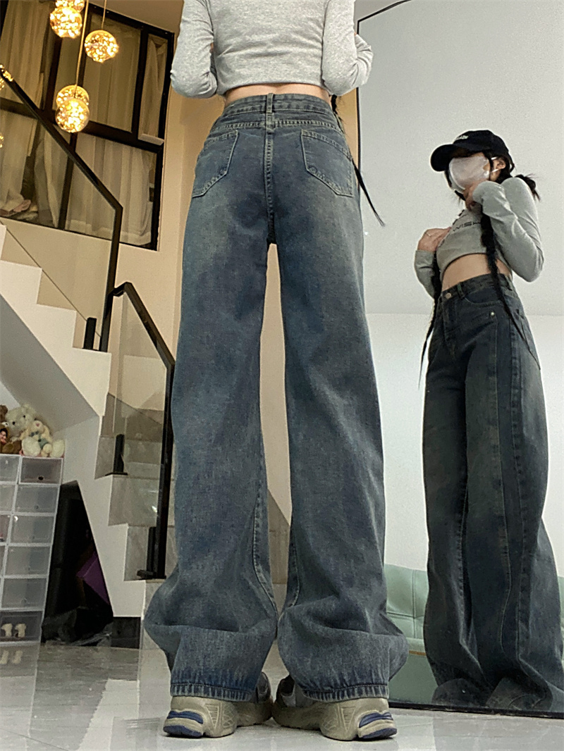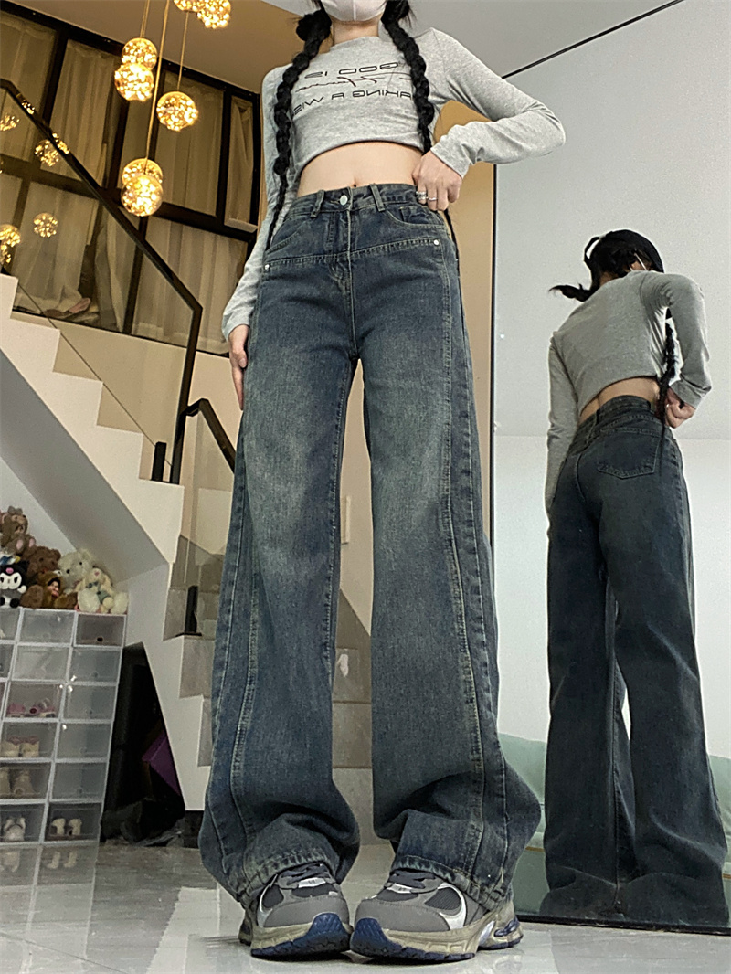 Осенние джинсы, ретро штаны, в американском стиле, высокая талия, свободный прямой крой