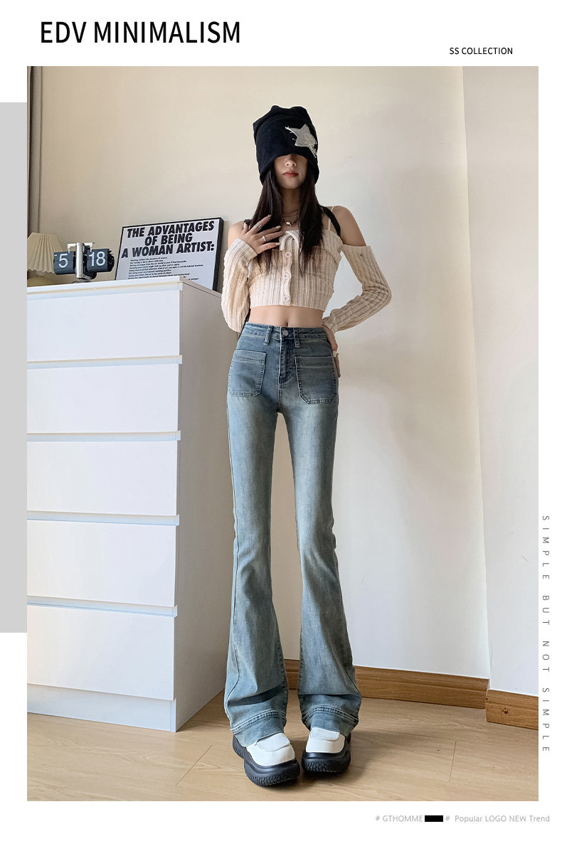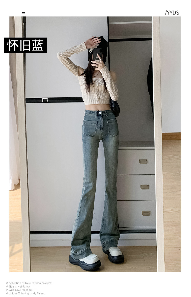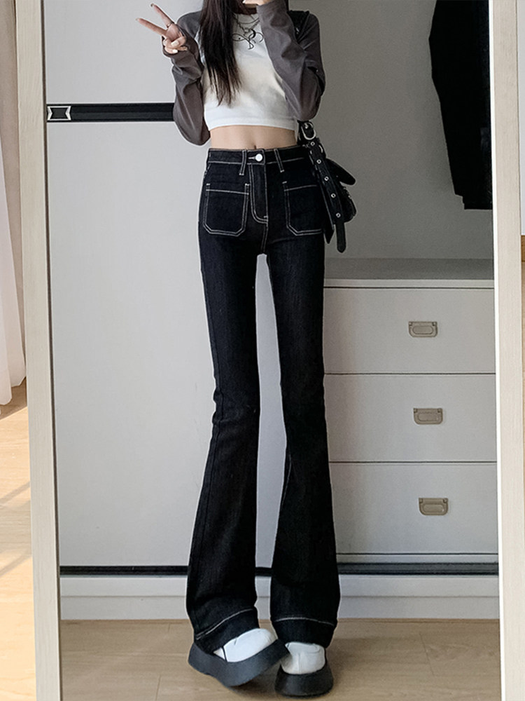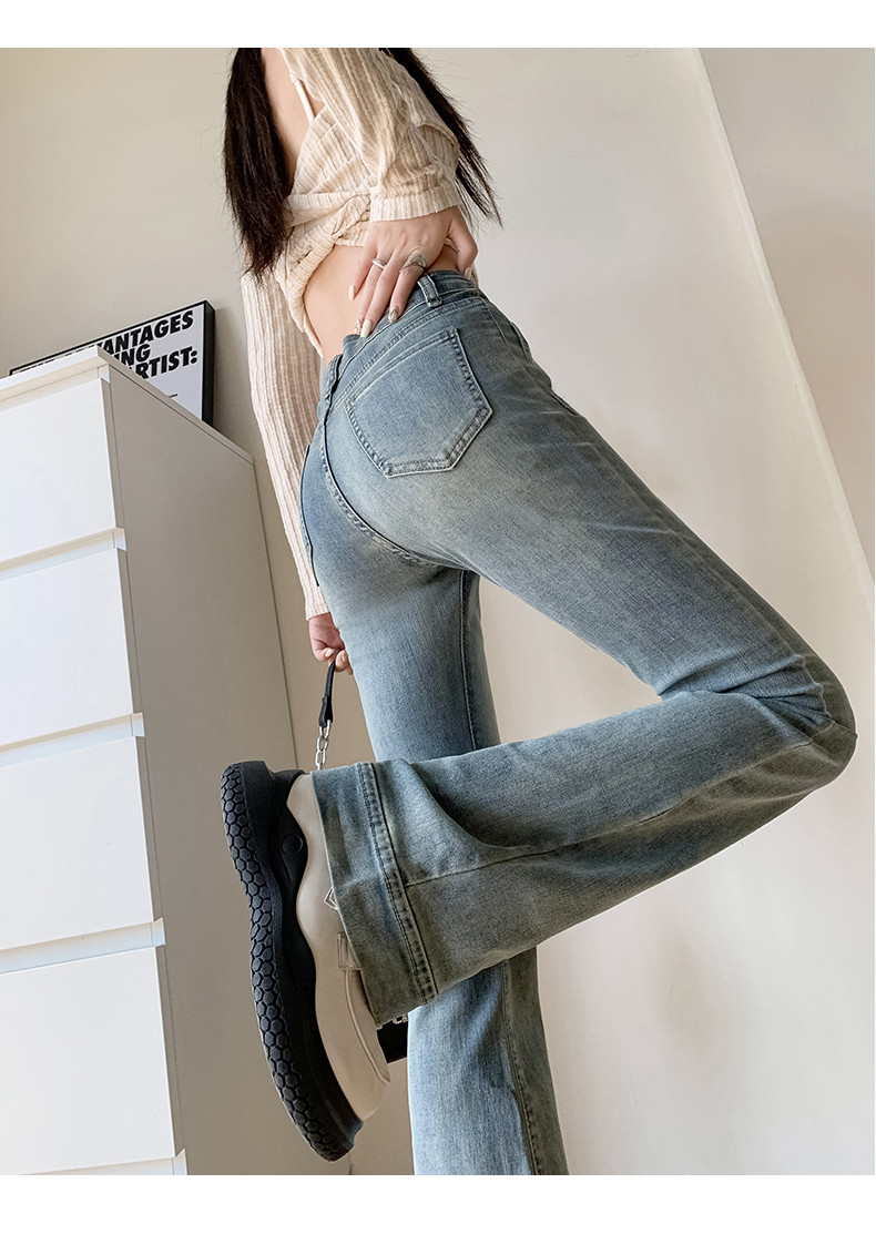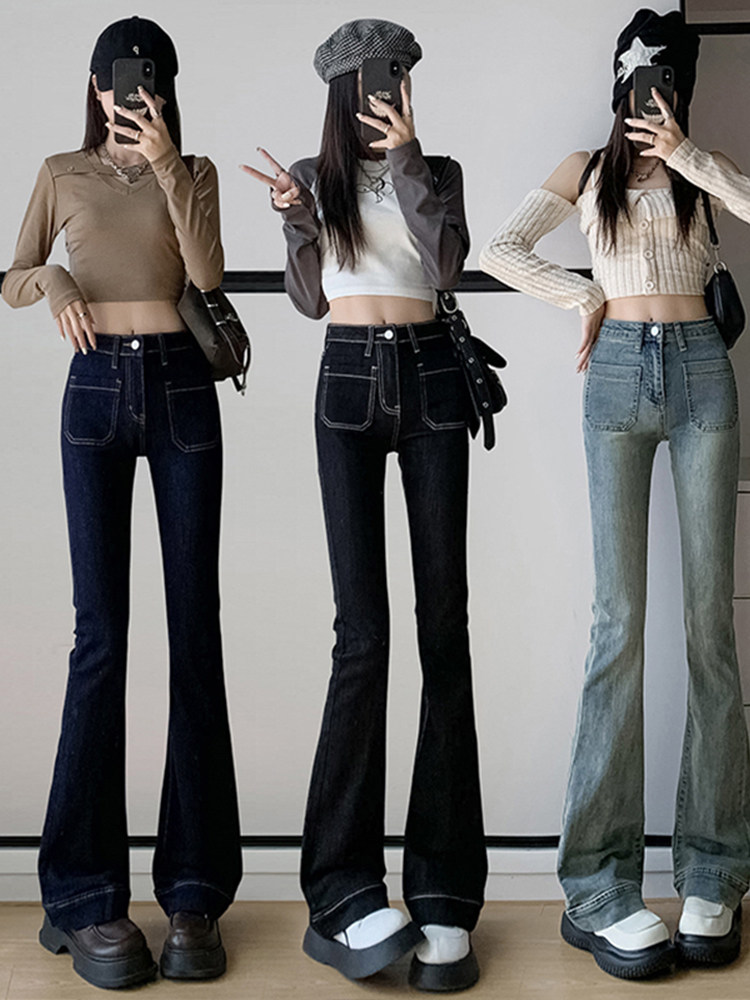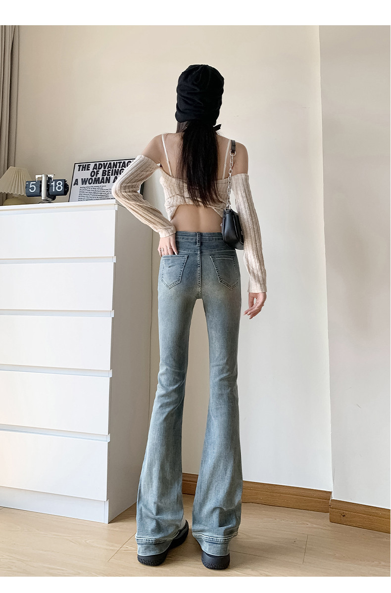 Ретро джинсы, весенние штаны, приталенные эластичные штаны-клёш, 2025 года, высокая талия, подходят для подростков
