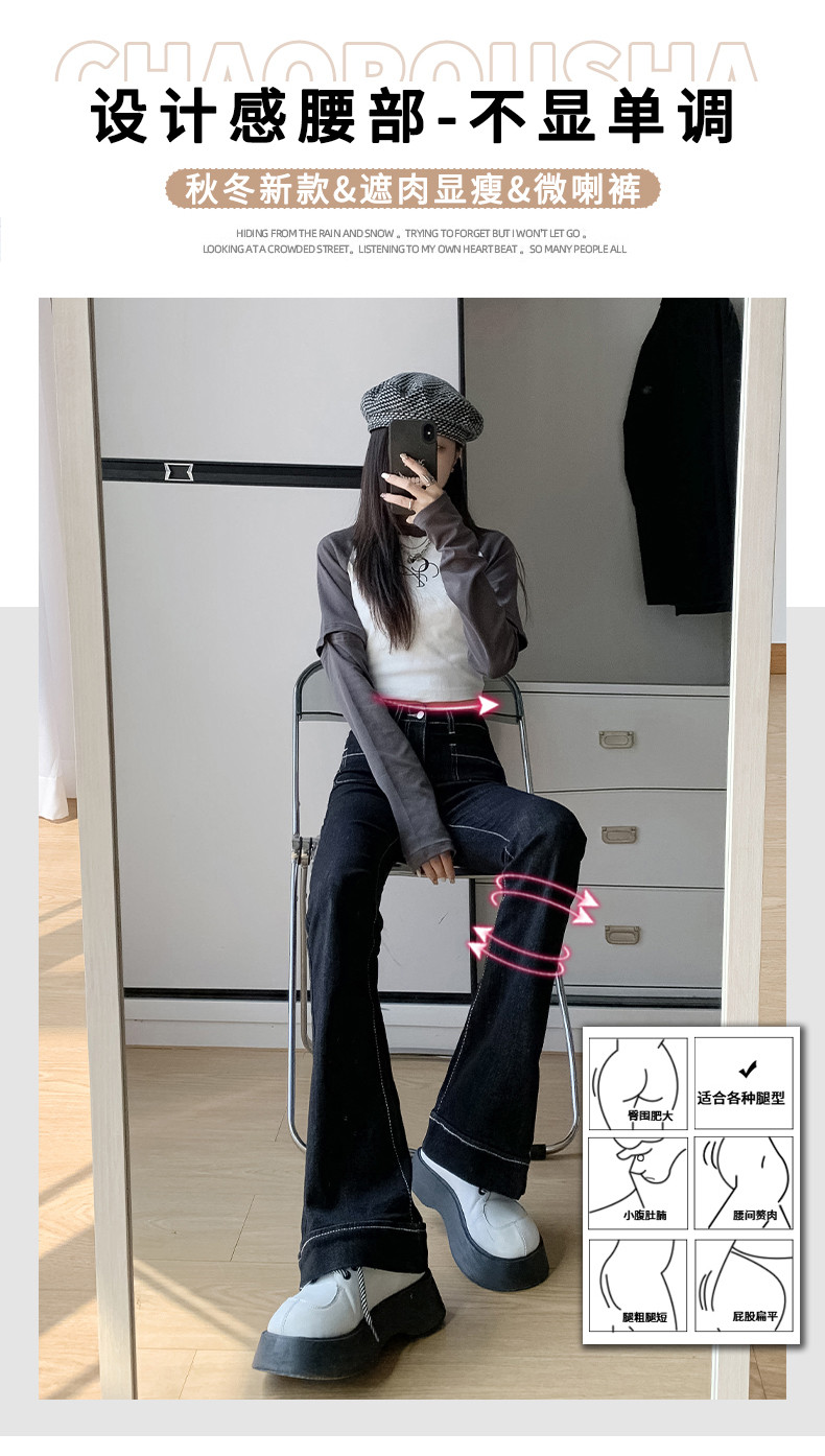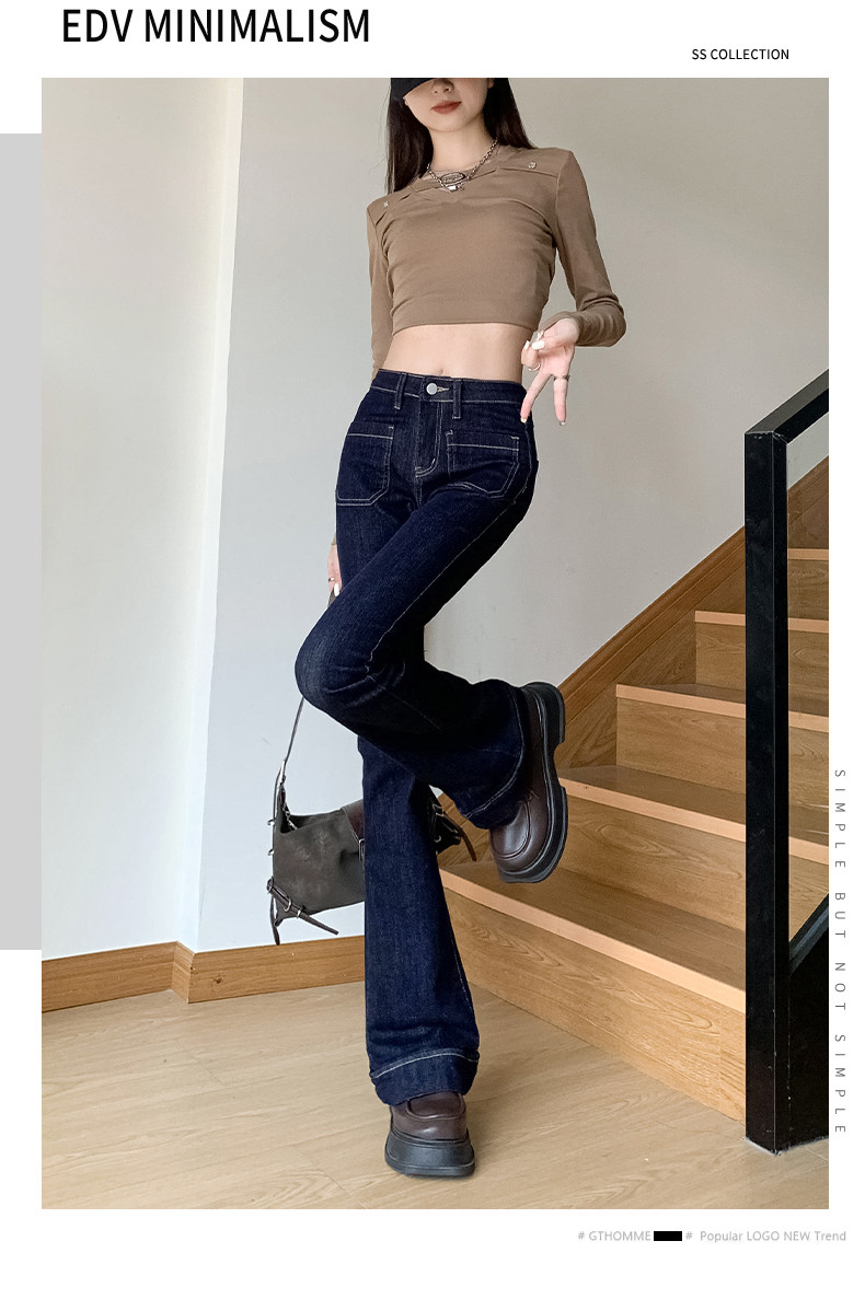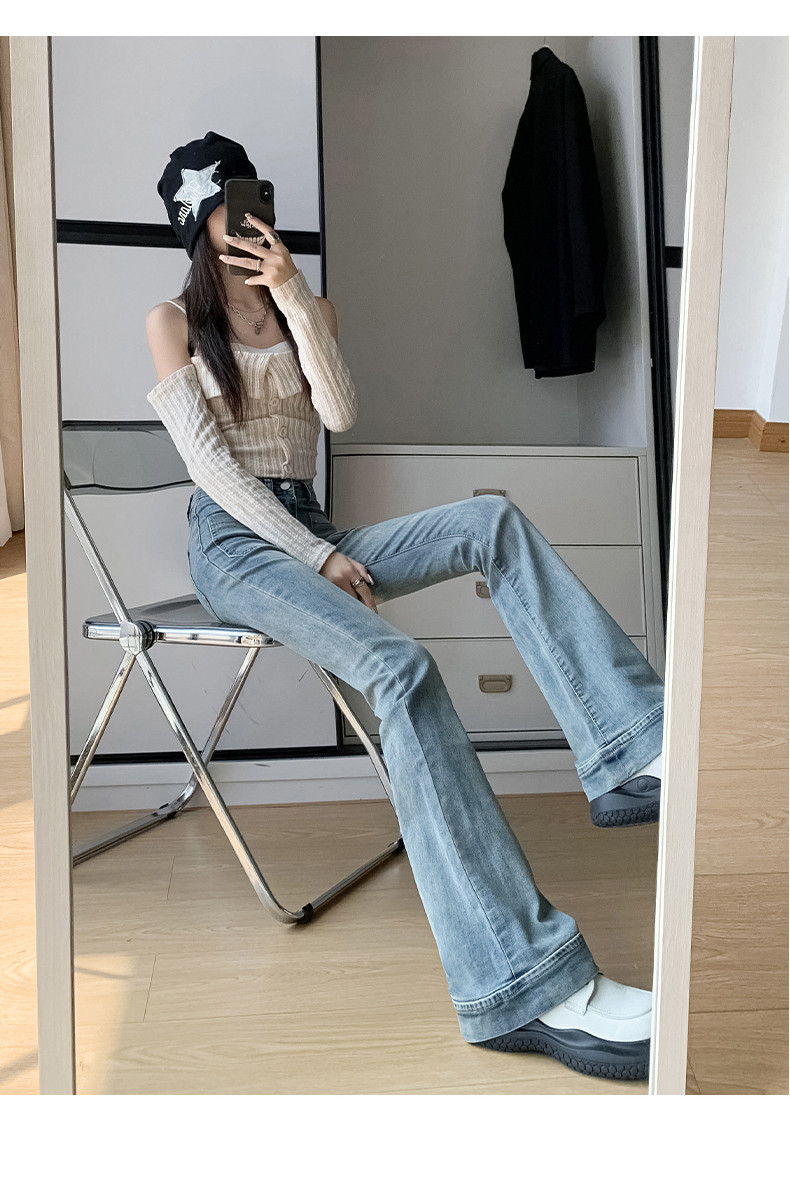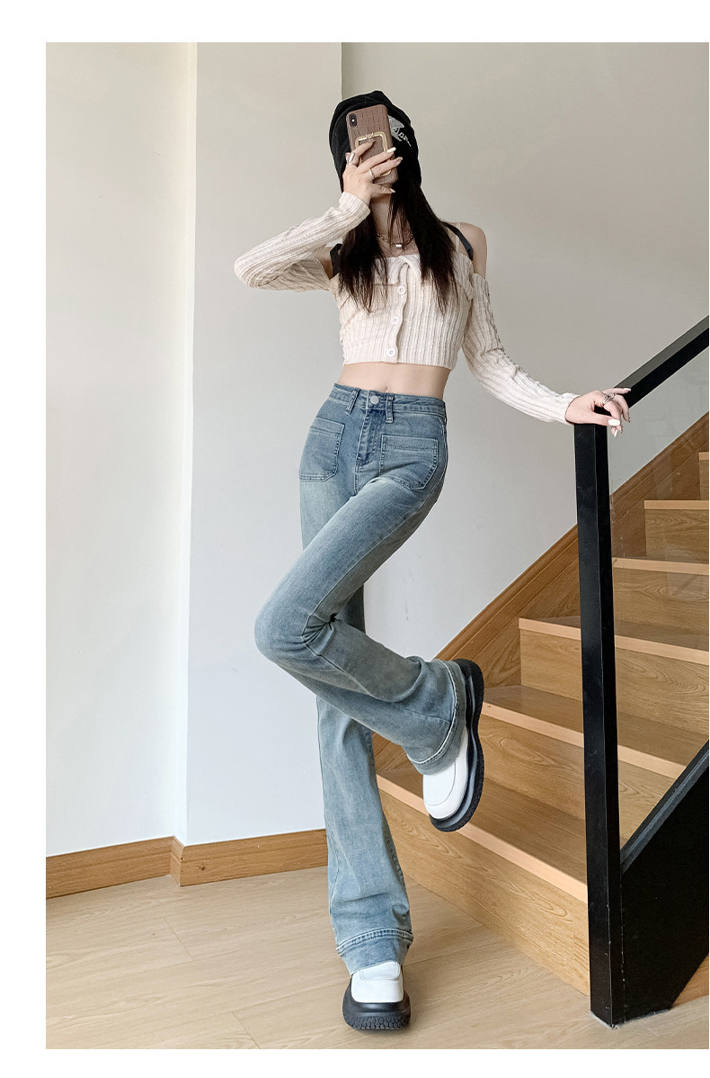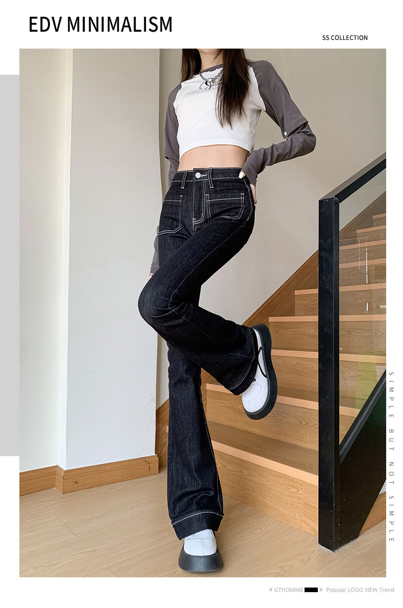Ретро джинсы, весенние штаны, приталенные эластичные штаны-клёш, 2025 года, высокая талия, подходят для подростков