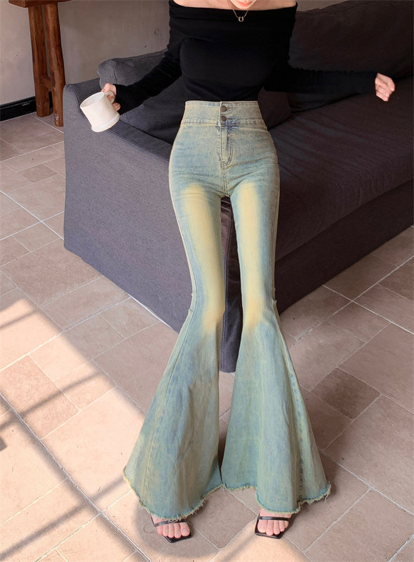 Джинсы, весенние штаны, громкоговоритель, высокая талия, осенние, свободный прямой крой