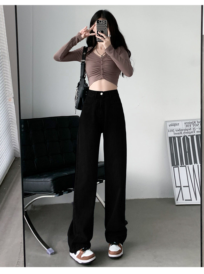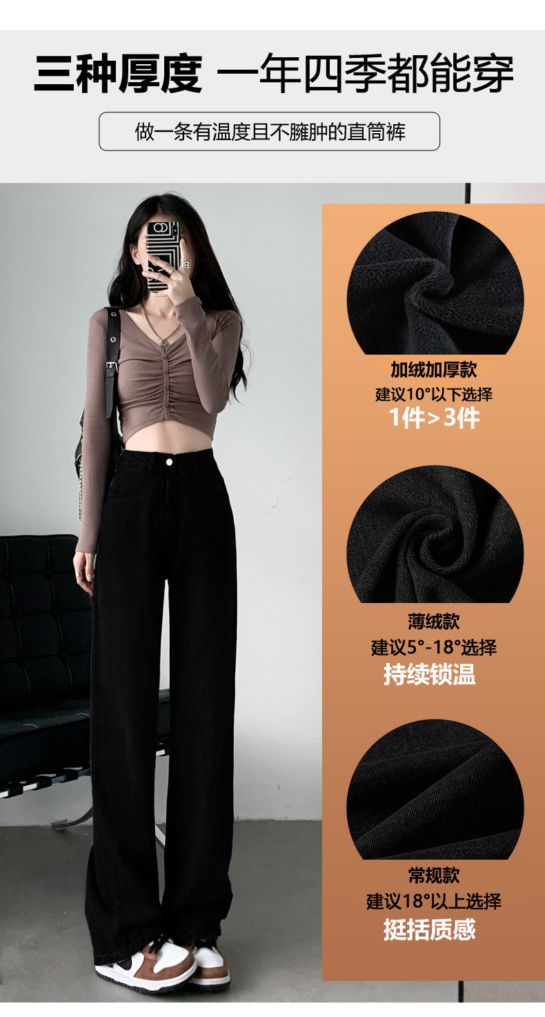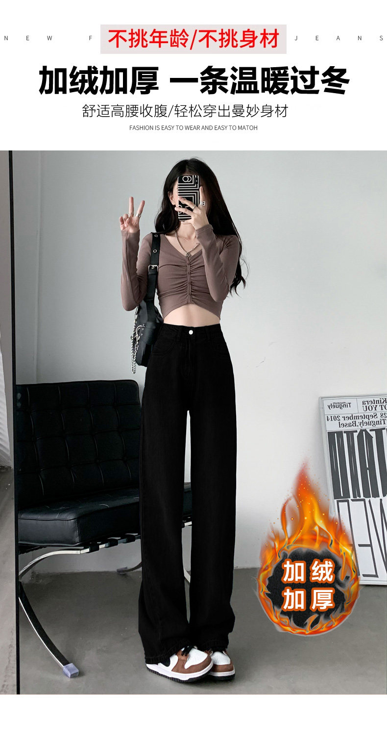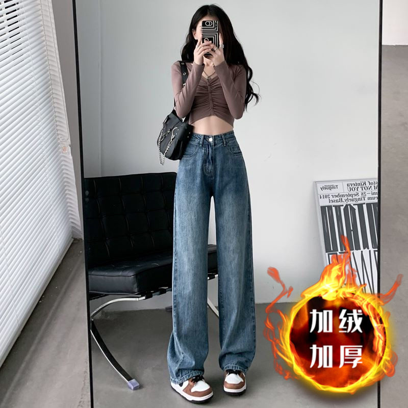 Демисезонные прямые свободные джинсы, штаны, флисовые леггинсы, высокая талия, свободный крой, подходят для подростков