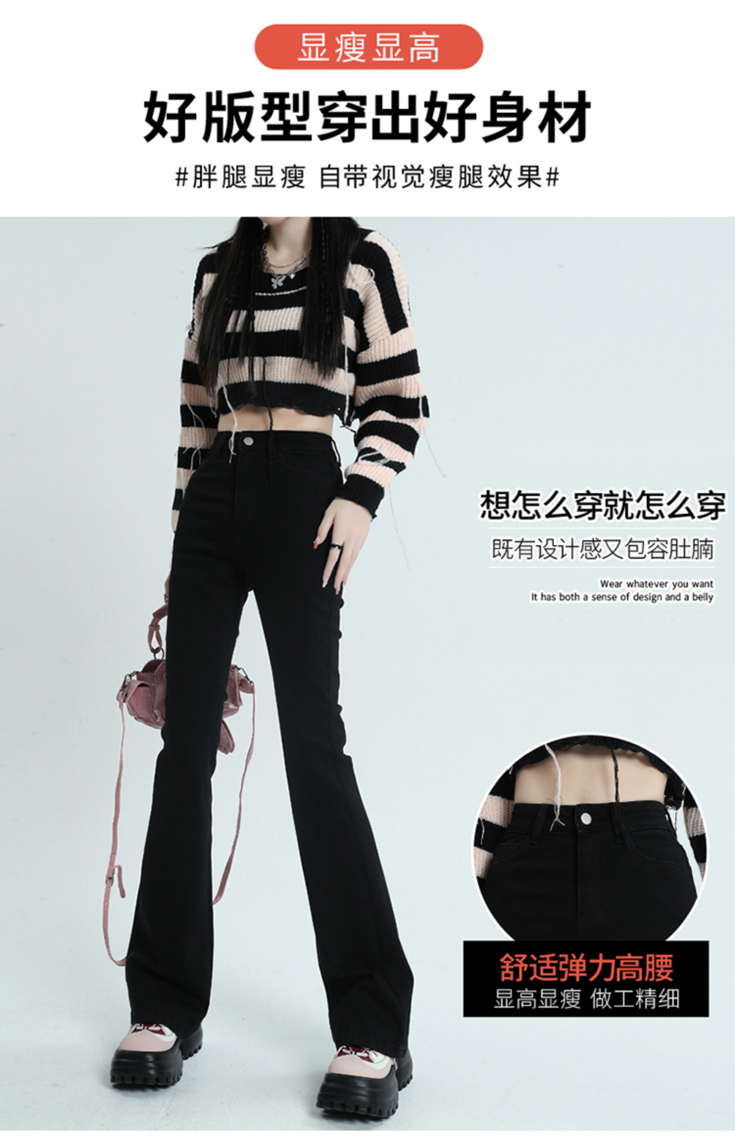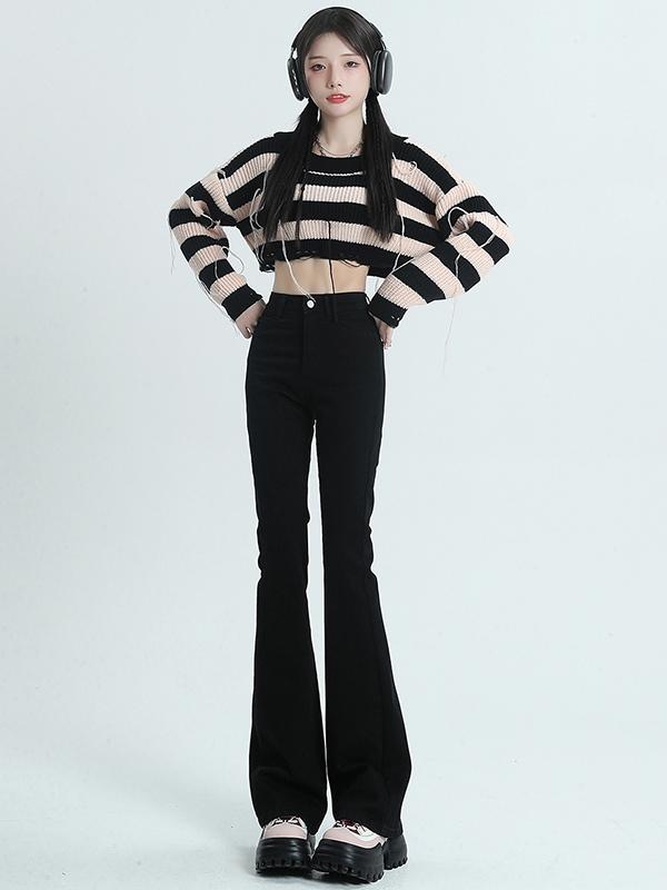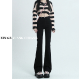 Черные джинсы, штаны, небольшая эластичная приталенная пуля, штаны-клёш, новая коллекция, подходит для подростков, высокая талия