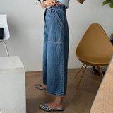 Ретро приталенные джинсы, штаны, в корейском стиле, осенние, высокая талия, свободный прямой крой