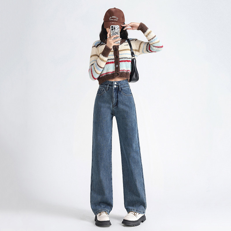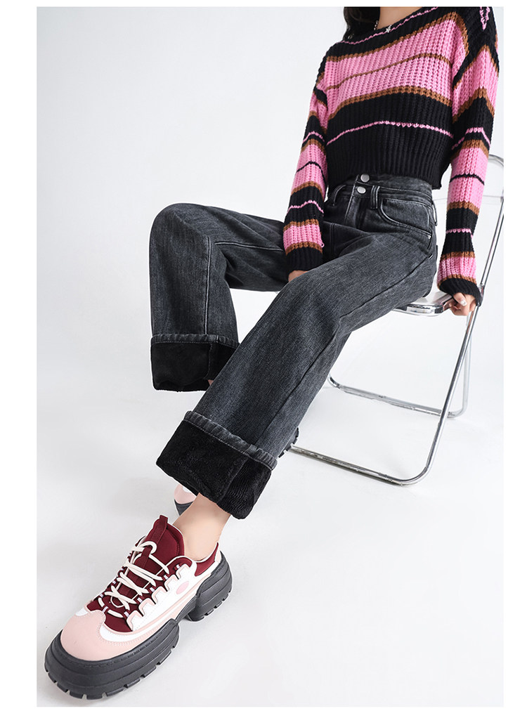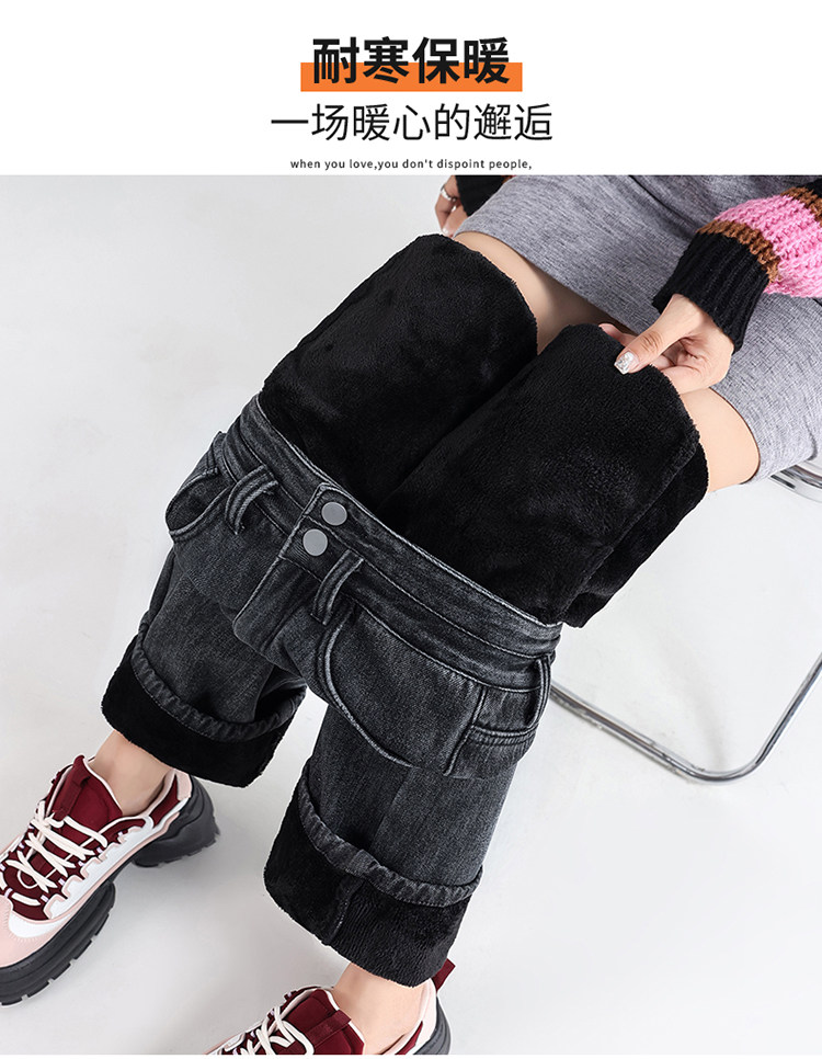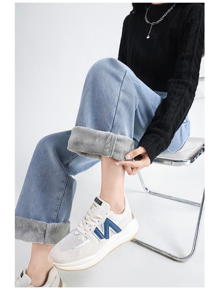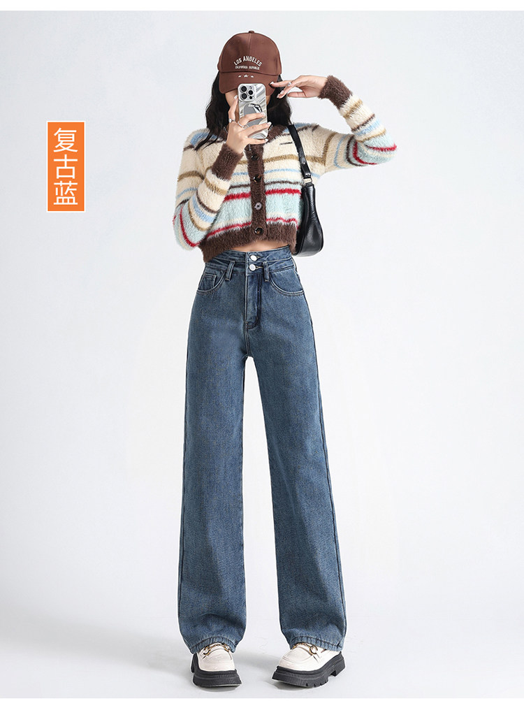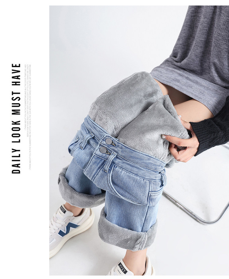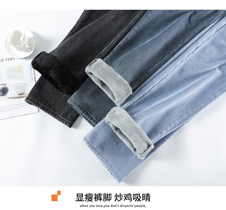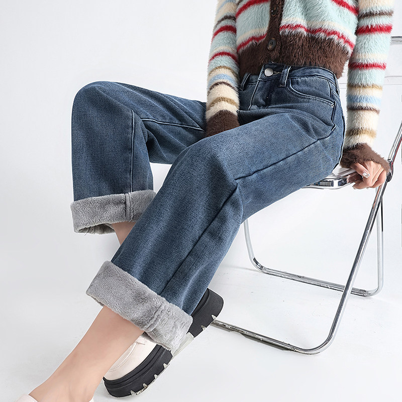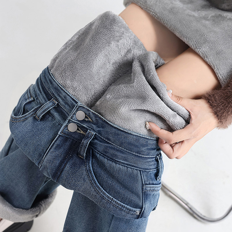 Демисезонные джинсы с начесом, штаны, приталенные леггинсы, высокая талия, свободный прямой крой