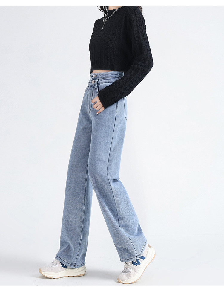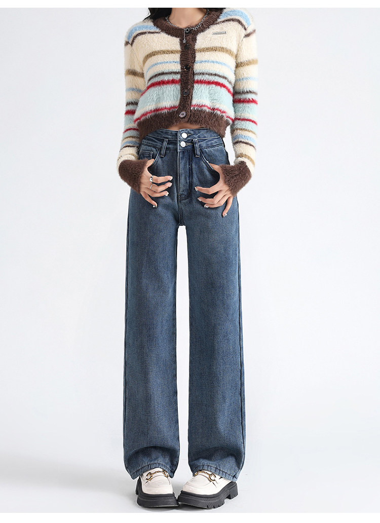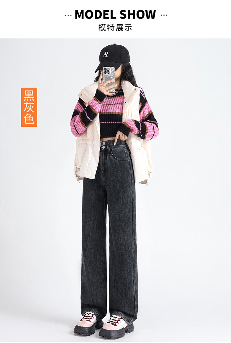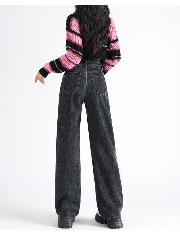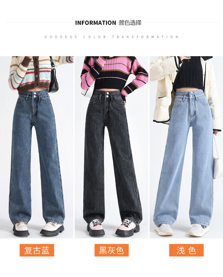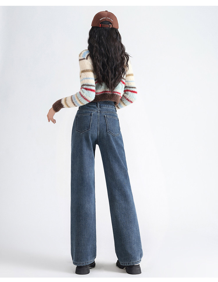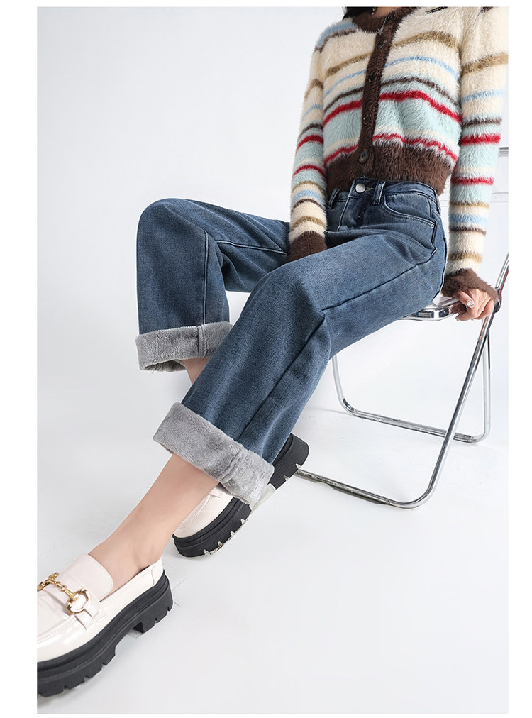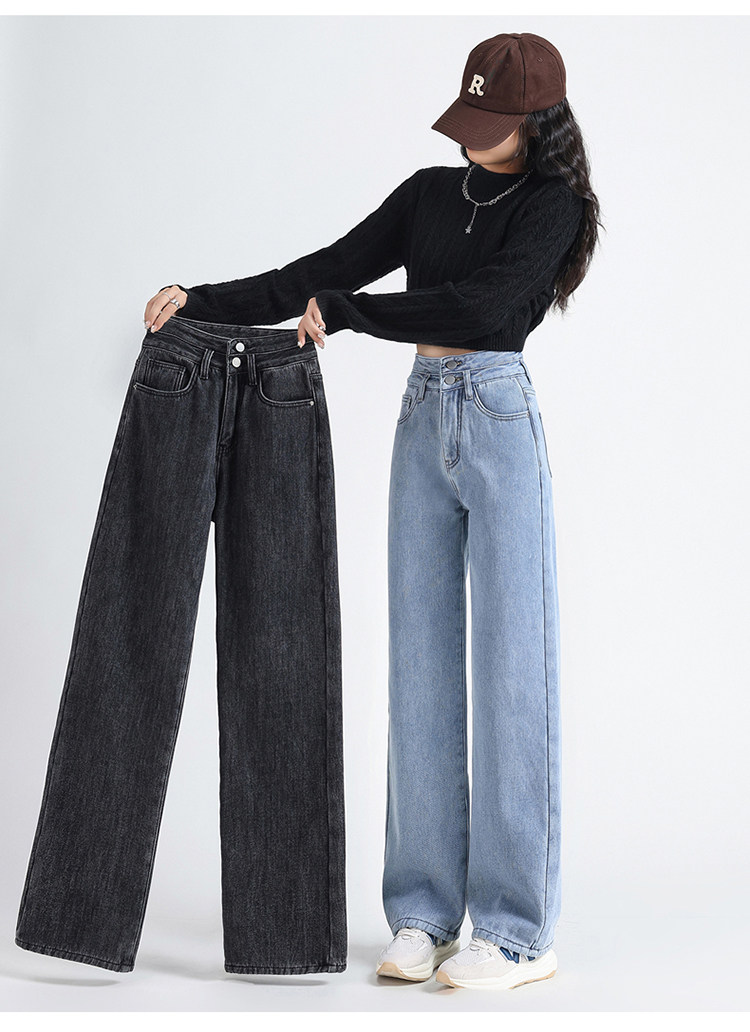 Демисезонные джинсы с начесом, штаны, приталенные леггинсы, высокая талия, свободный прямой крой