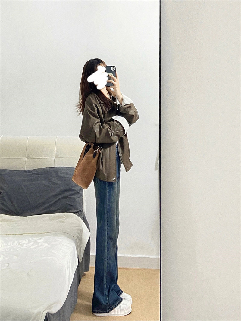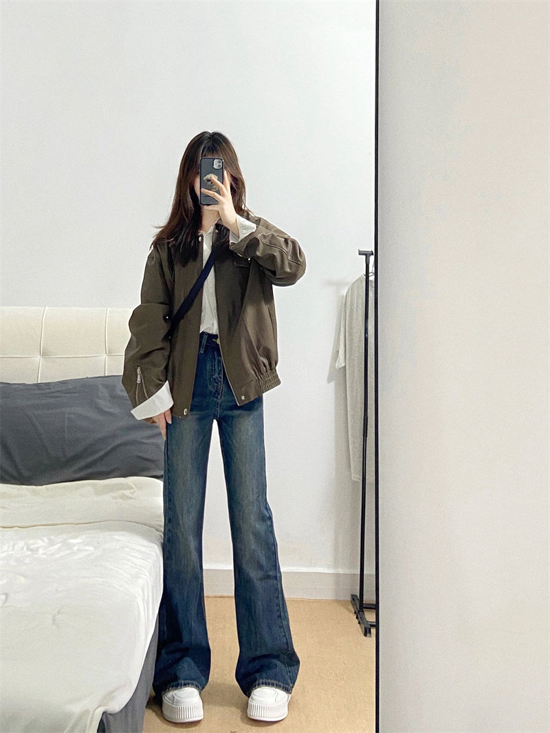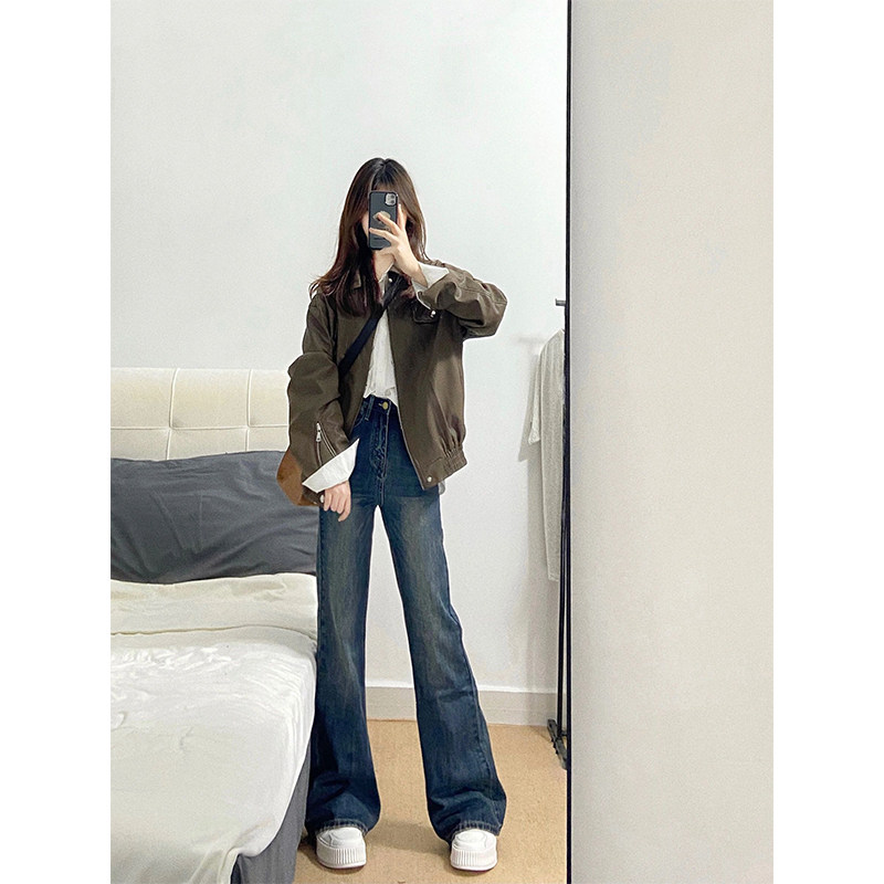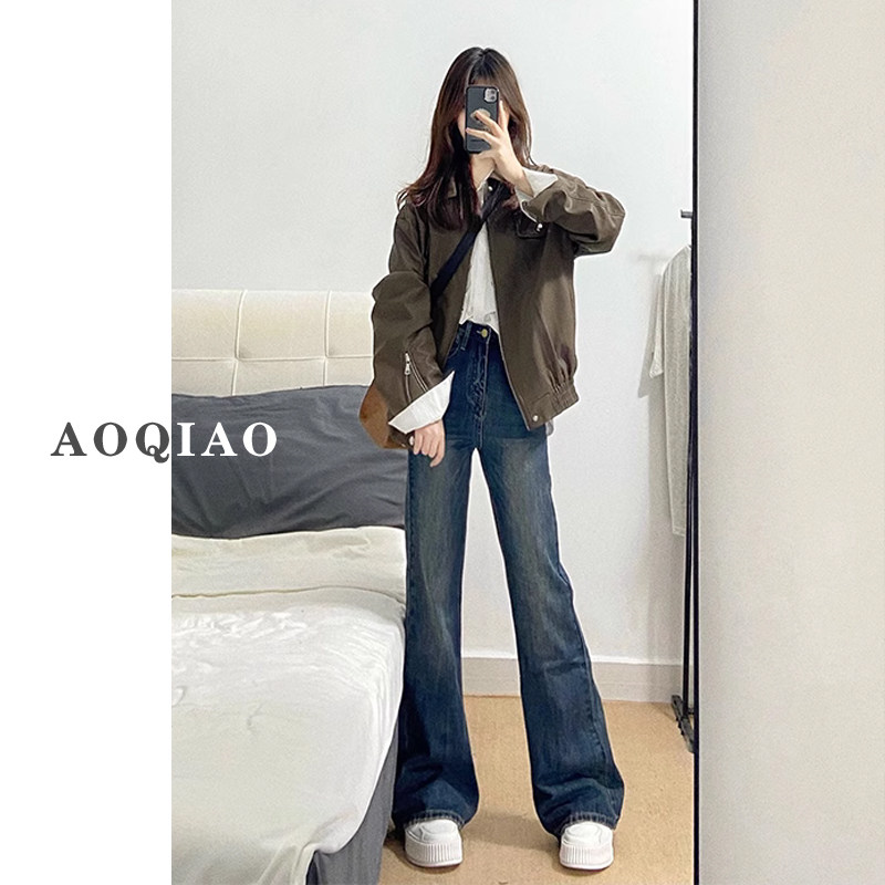 Ретро джинсы, осенние штаны, штаны-клёш, для формы тела «груша», высокая талия, большой размер, свободный крой