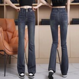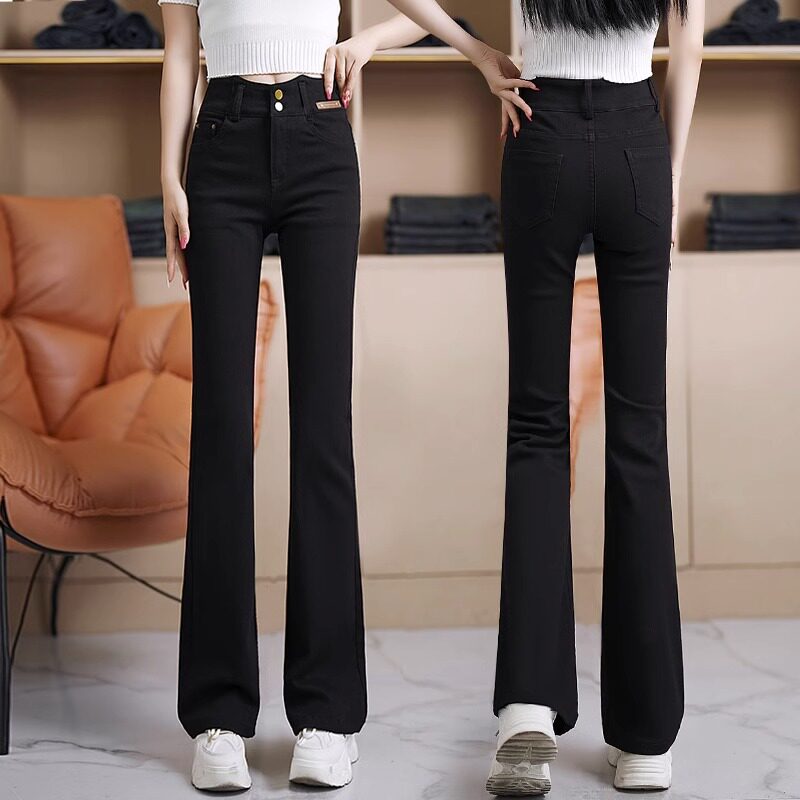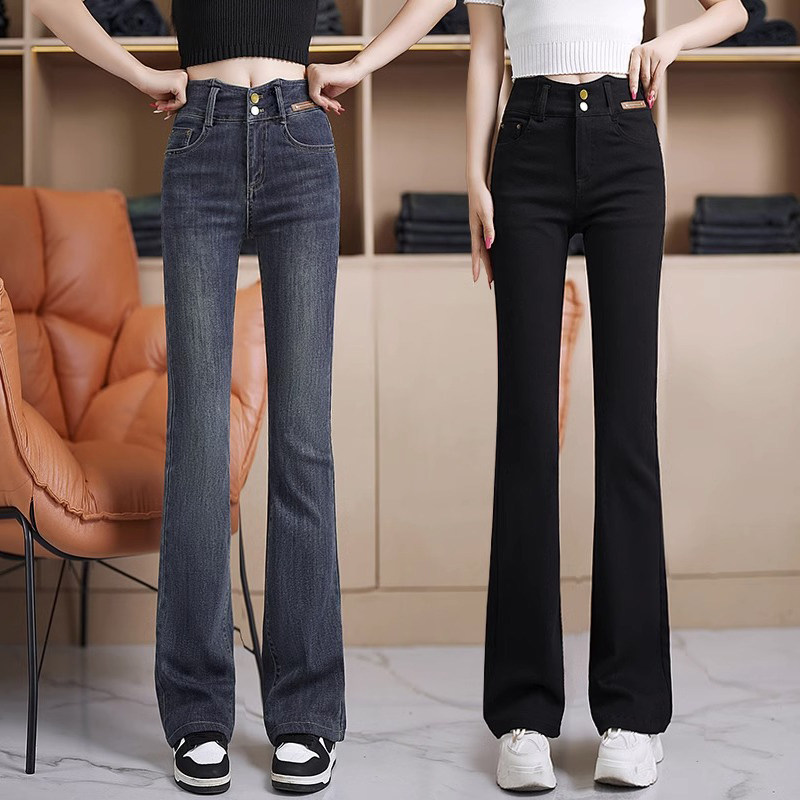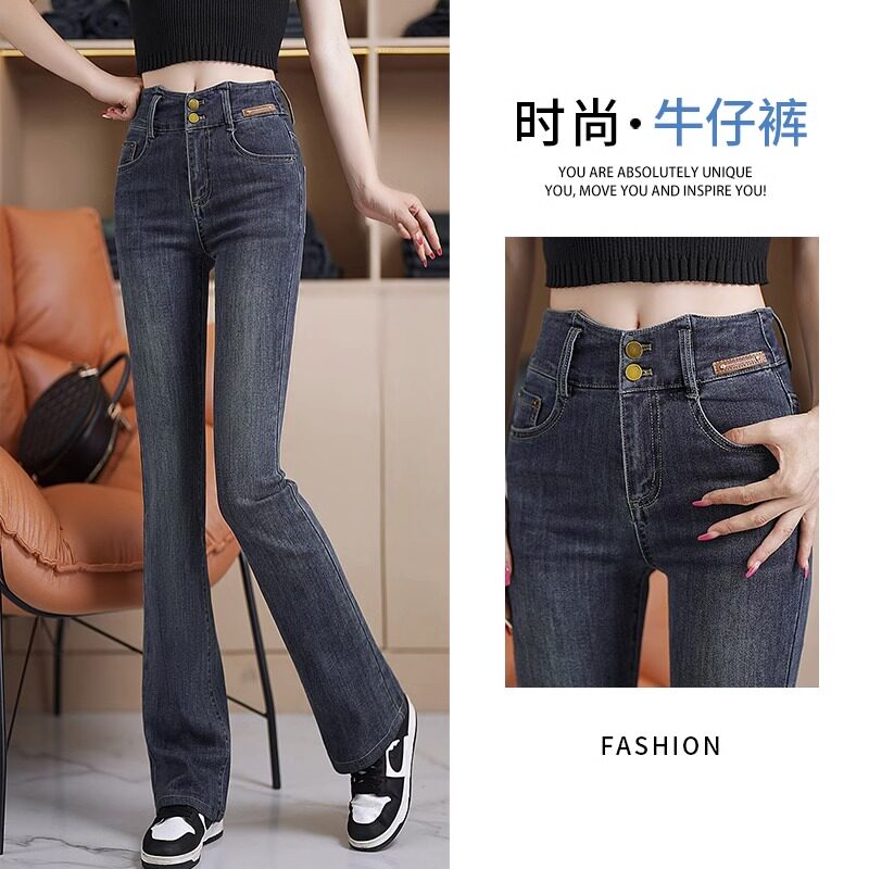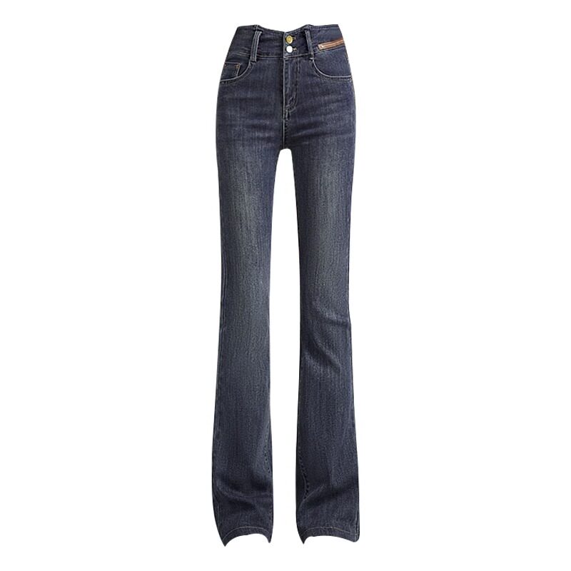 Джинсовые весенние осенние штаны, приталенные эластичные штаны-клёш, 2024 года, высокая талия, подходят для подростков