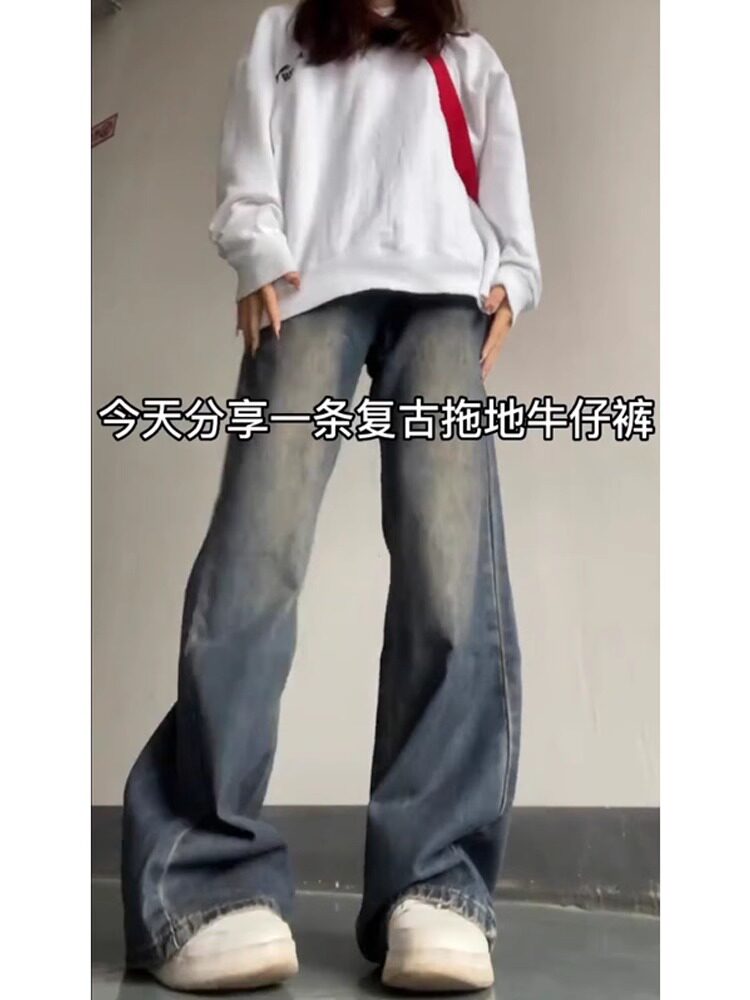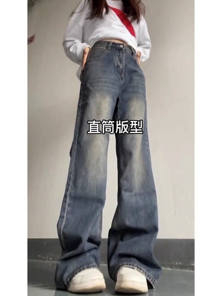 Ретро осенние джинсы, дизайнерские летние штаны, в американском стиле, 2024 года, тренд сезона, свободный прямой крой