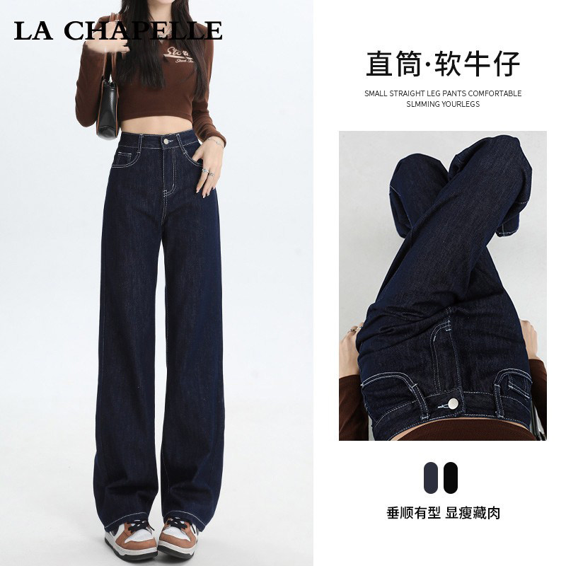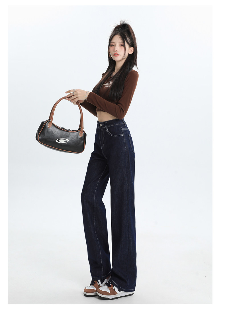Темно-синие прямые свободные джинсы, штаны, высокая талия, свободный крой