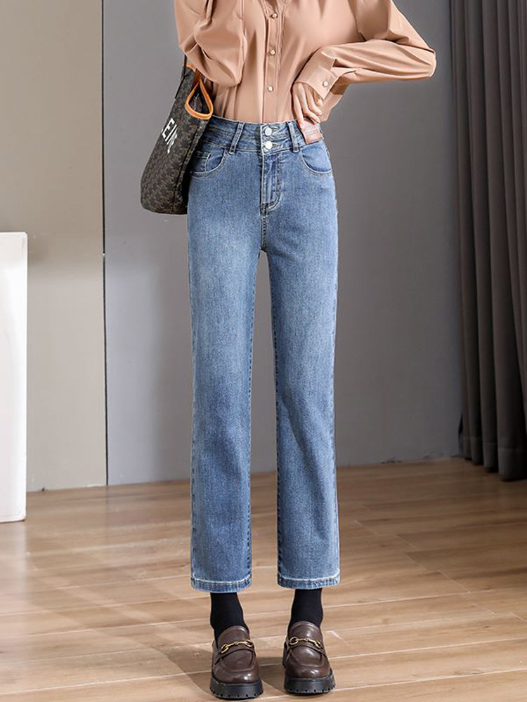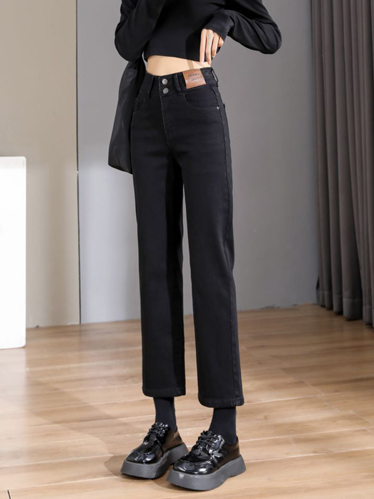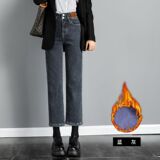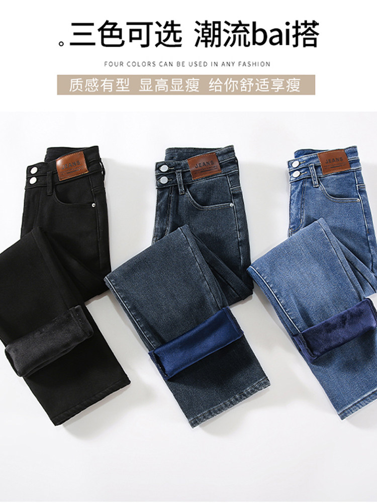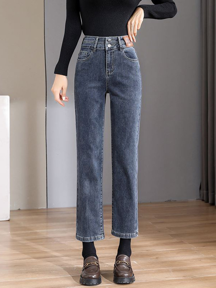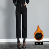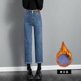Ретро флисовые демисезонные джинсы с начесом, штаны, приталенные леггинсы, подходит для подростков, высокая талия, свободный прямой крой