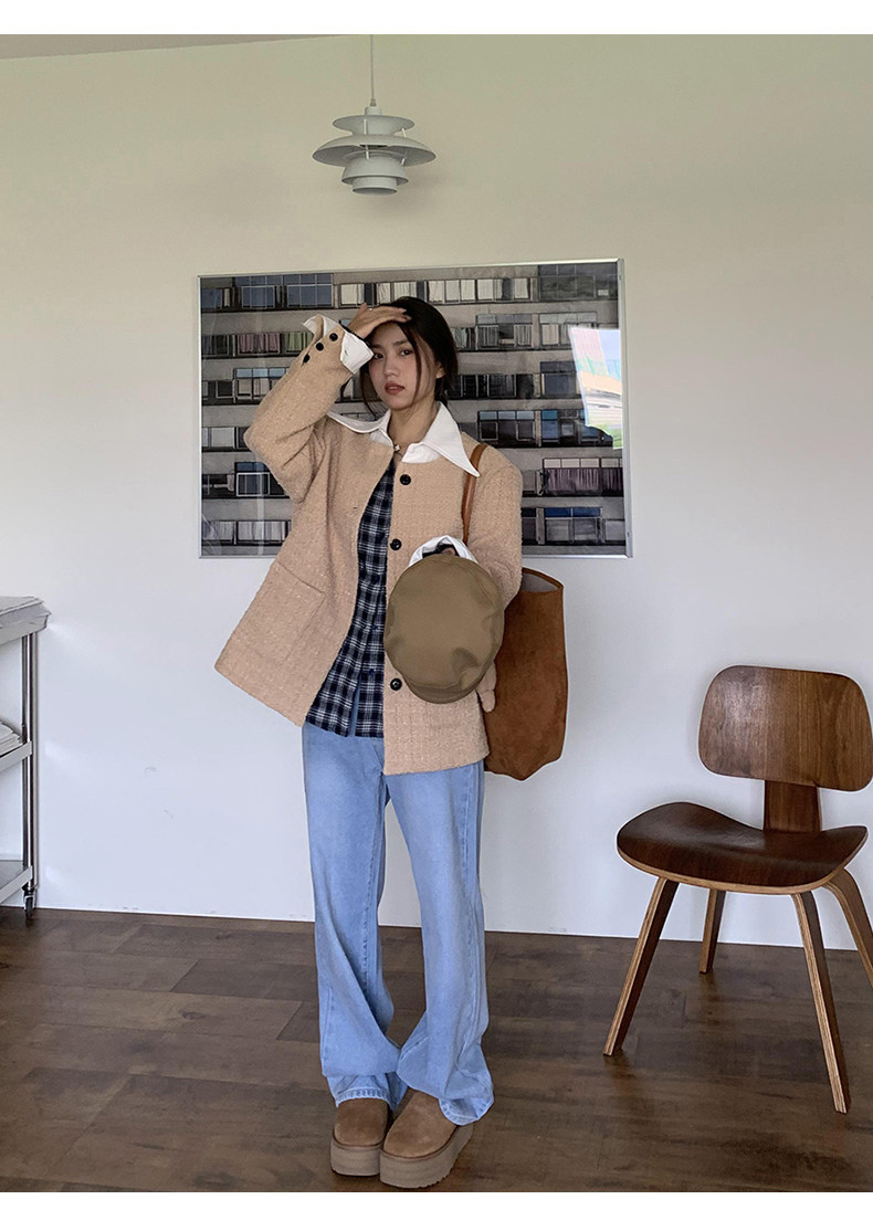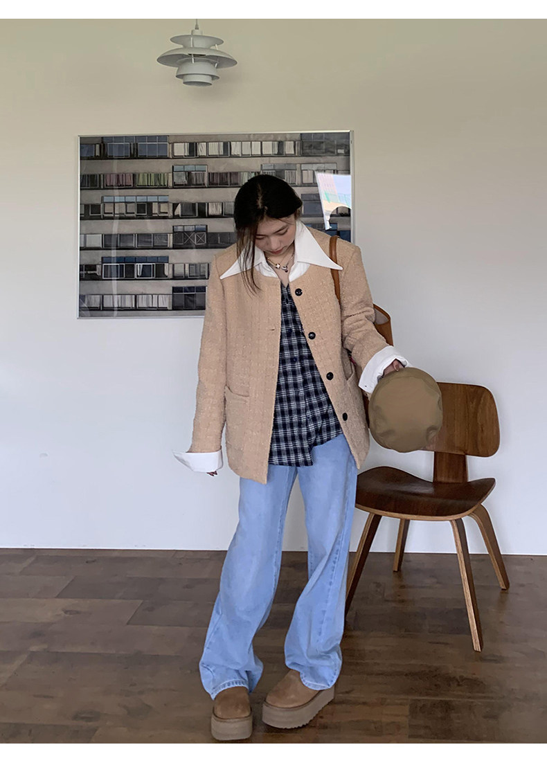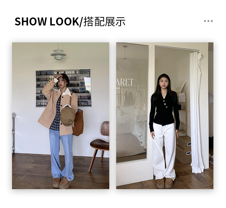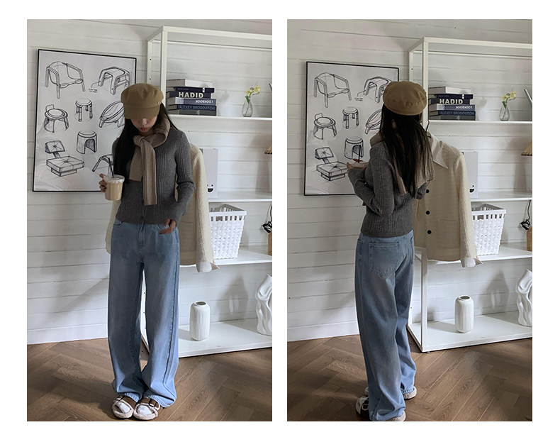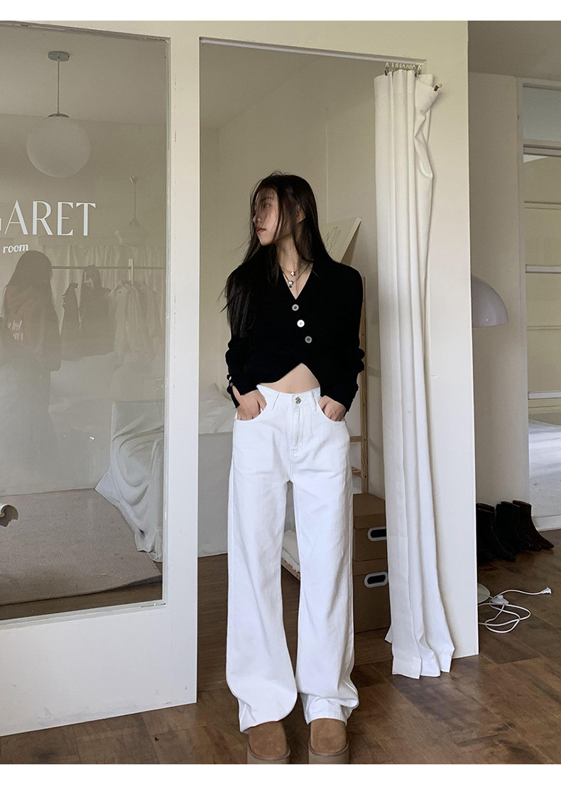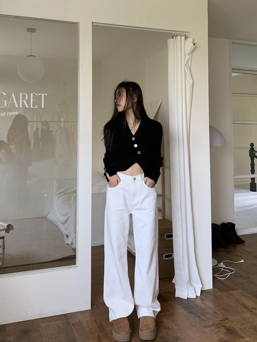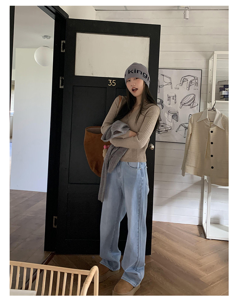 Синие осенние прямые свободные джинсы, приталенные штаны, высокая талия