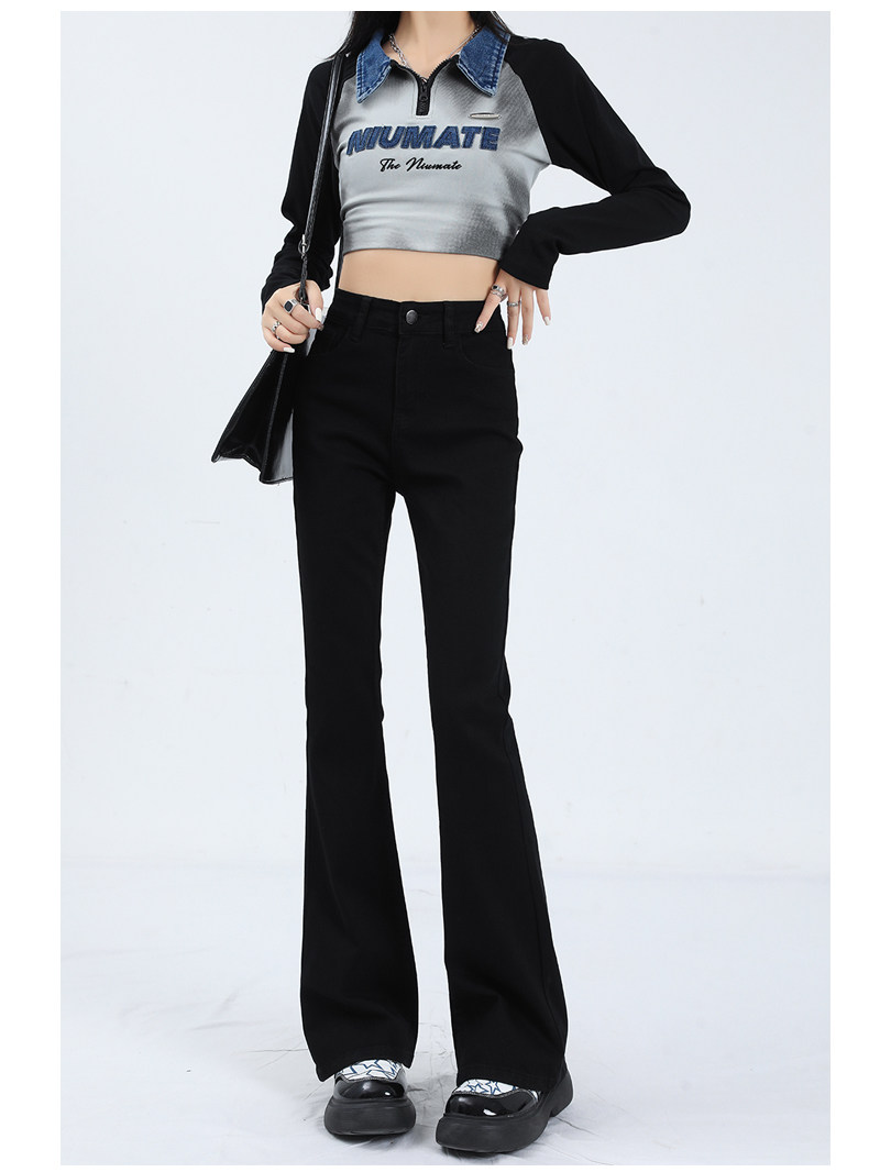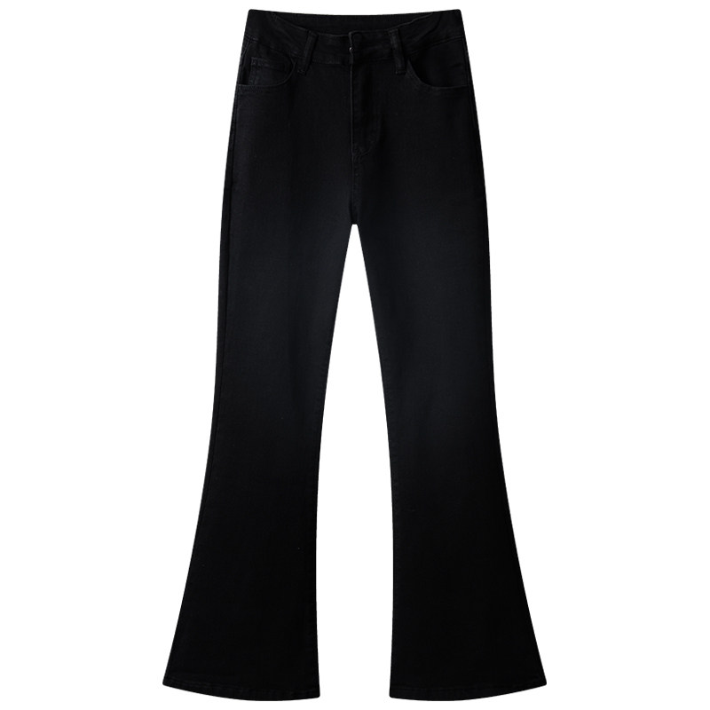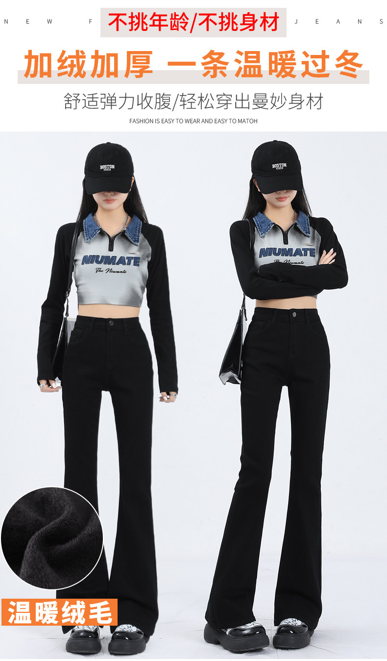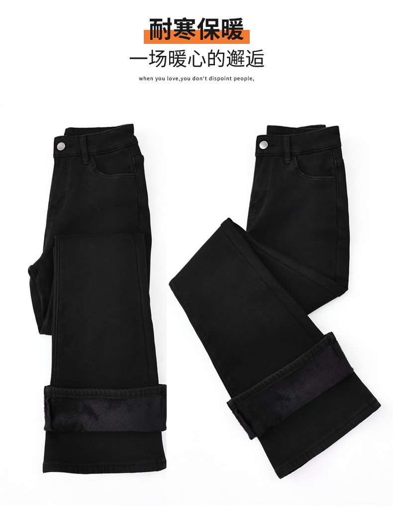 Флисовые осенние джинсы, штаны, черные приталенные эластичные штаны-клёш, подходит для подростков