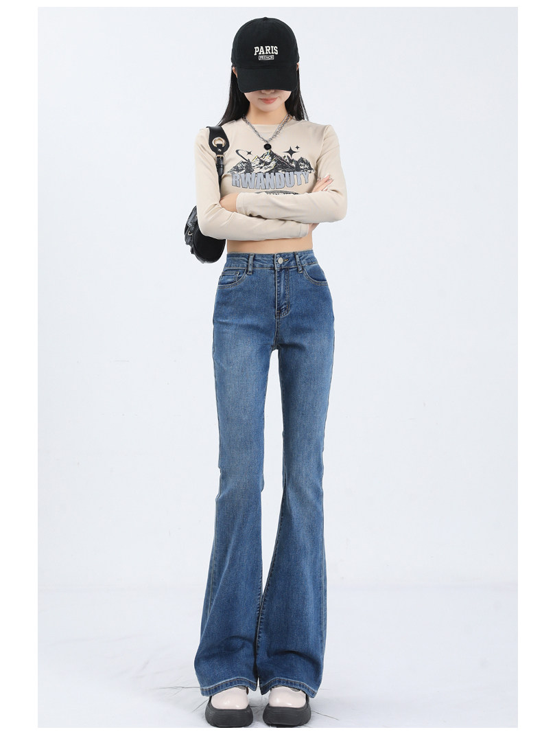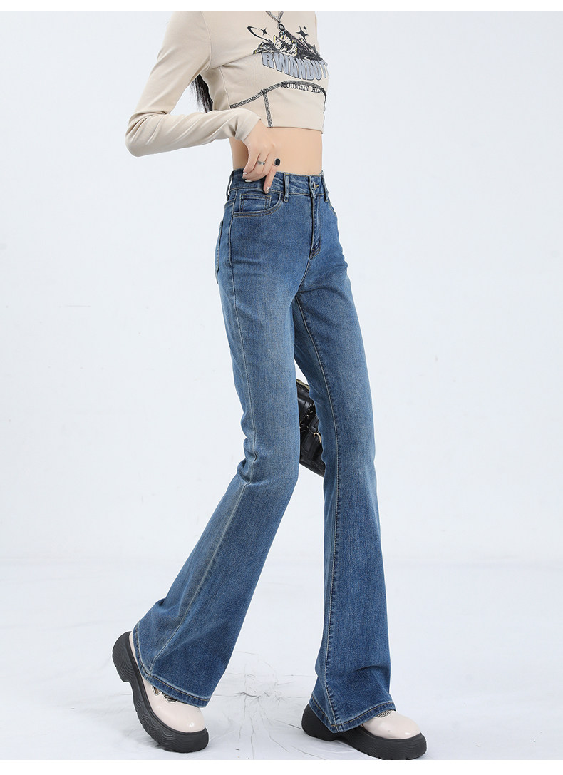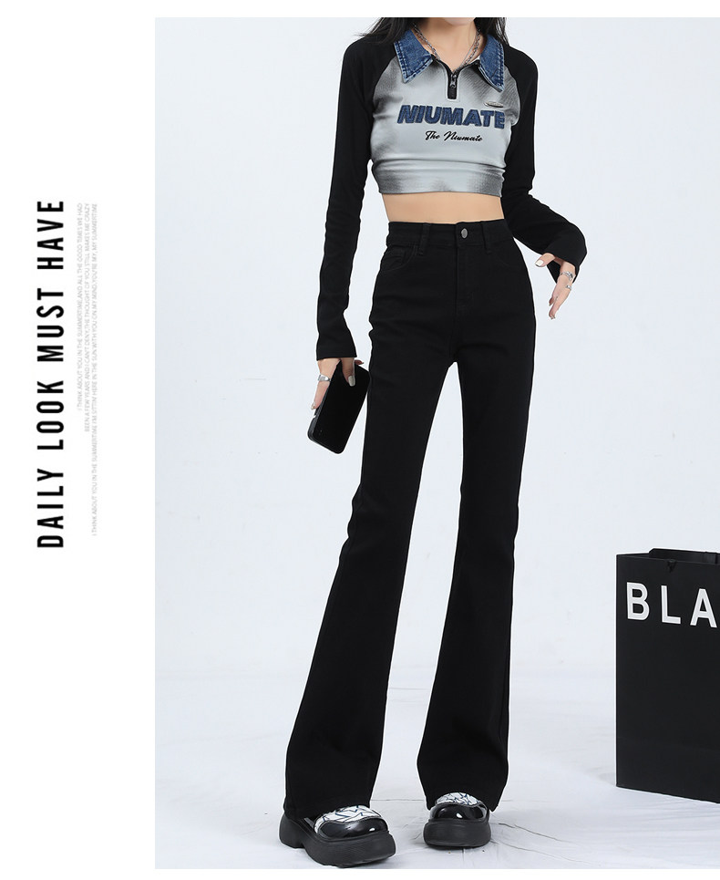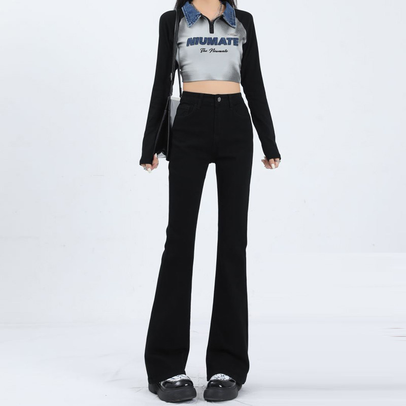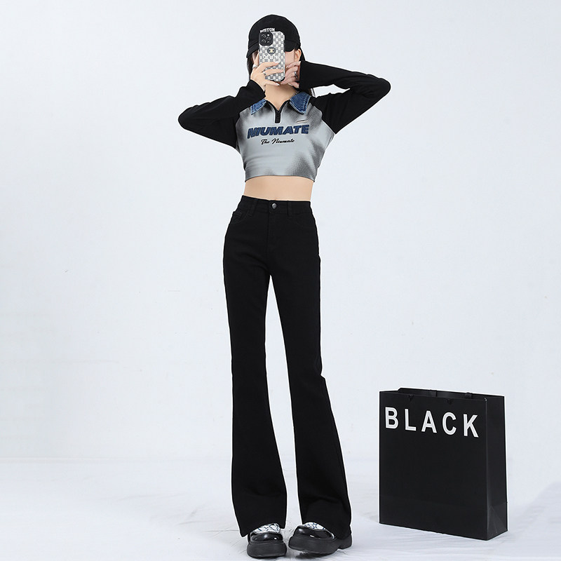 Флисовые осенние джинсы, штаны, черные приталенные эластичные штаны-клёш, подходит для подростков