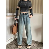 Утепленные осенние джинсы, штаны, леггинсы, ностальгия, высокая талия, свободный прямой крой, по фигуре