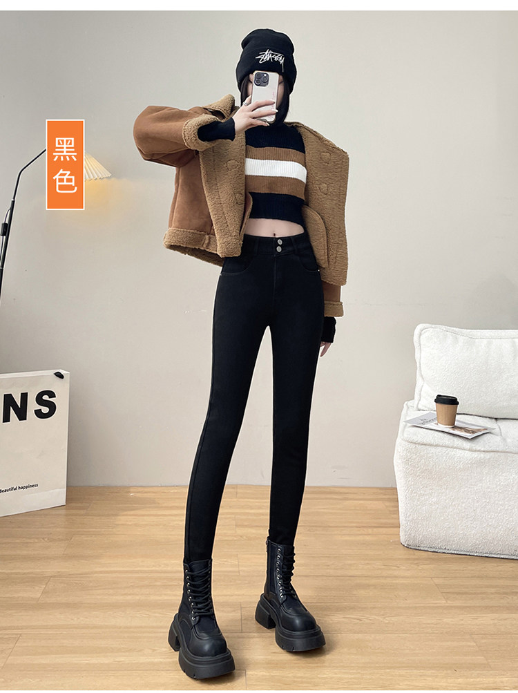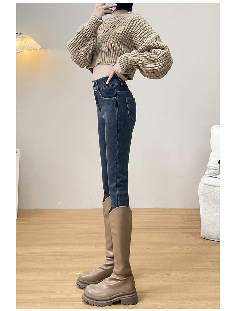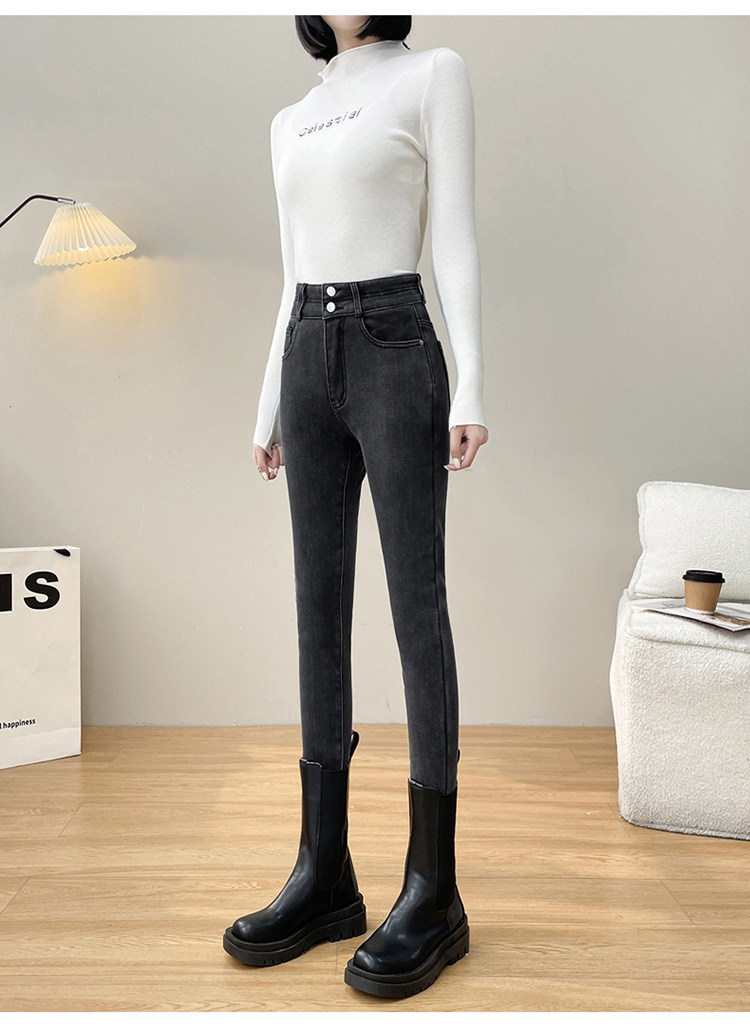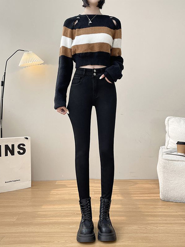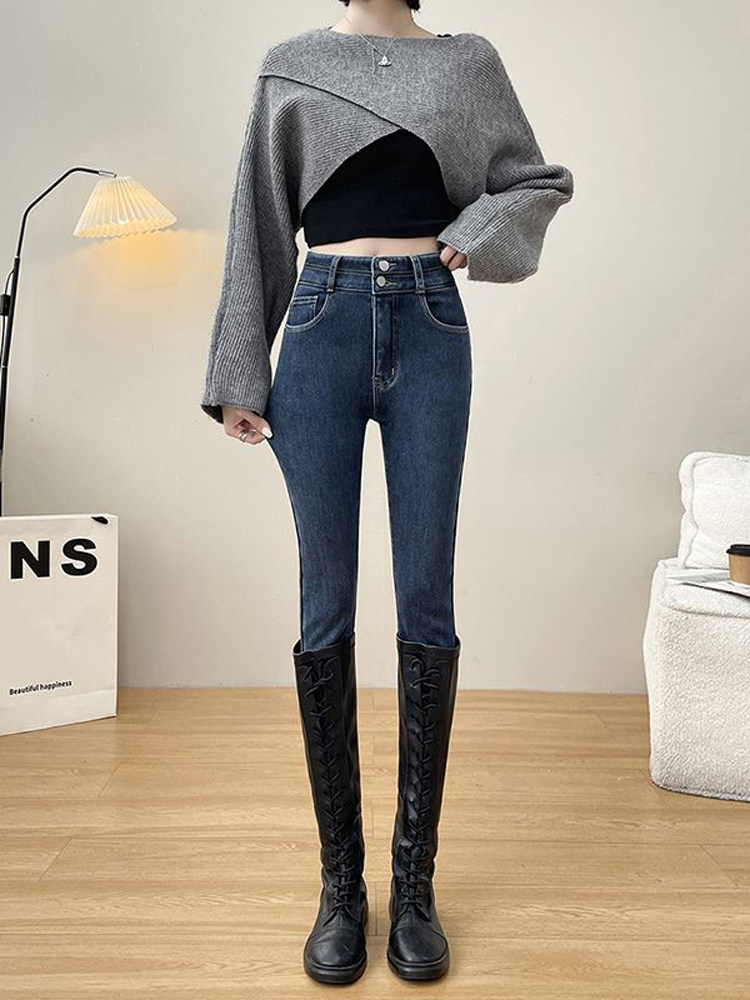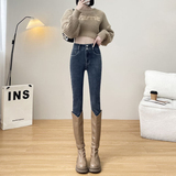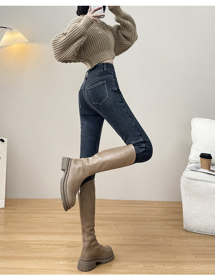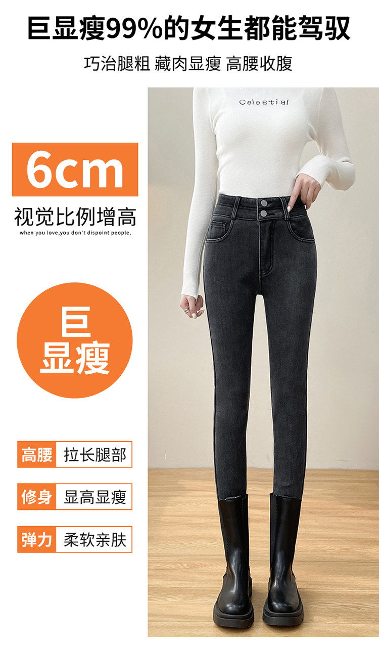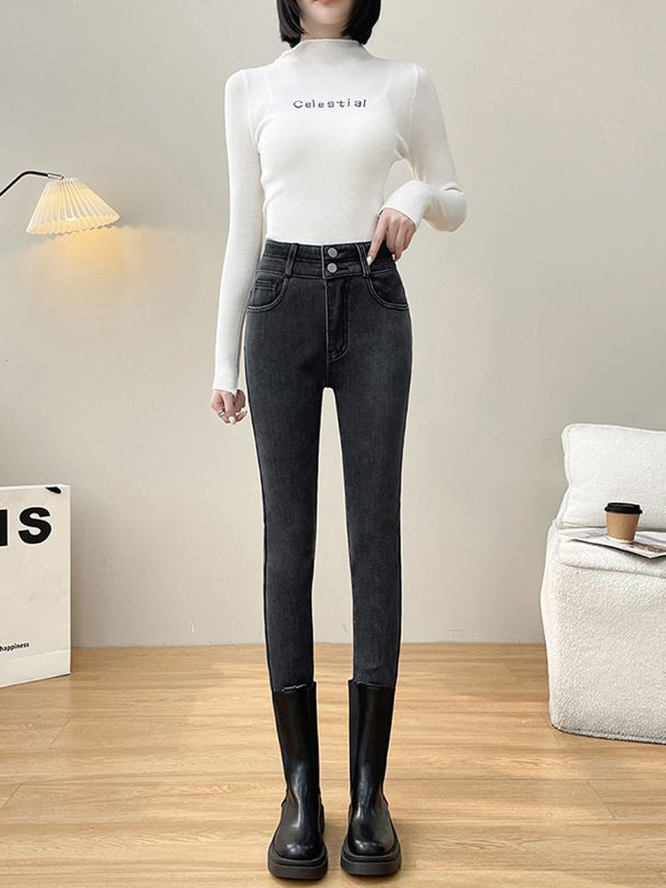 Утепленные демисезонные джинсы, штаны, леггинсы, приталенный эластичный карандаш, новая коллекция, высокая талия, в обтяжку