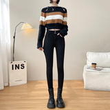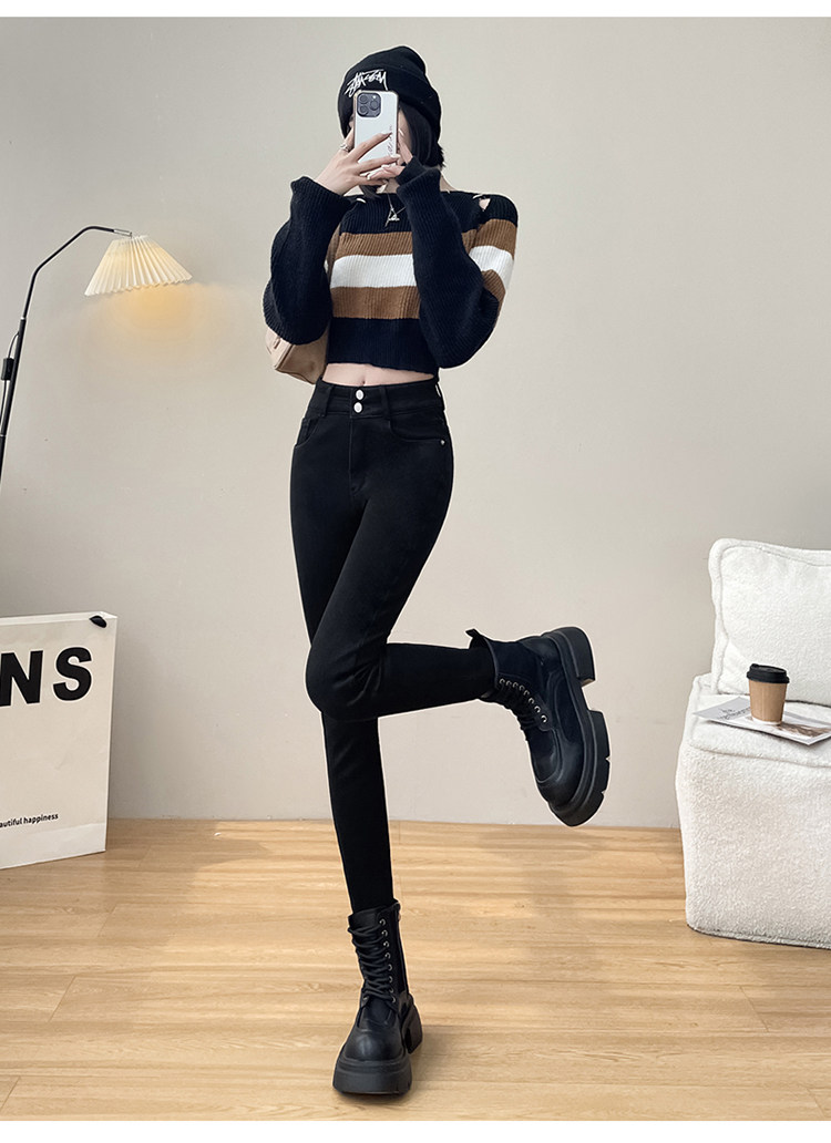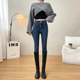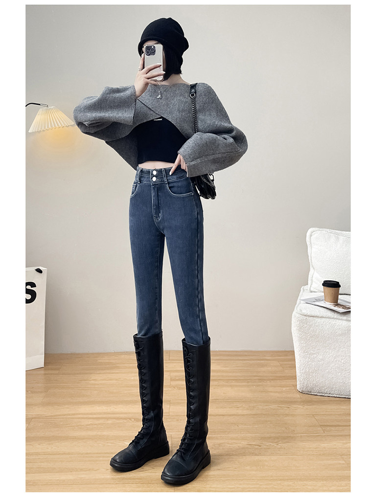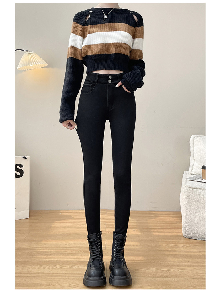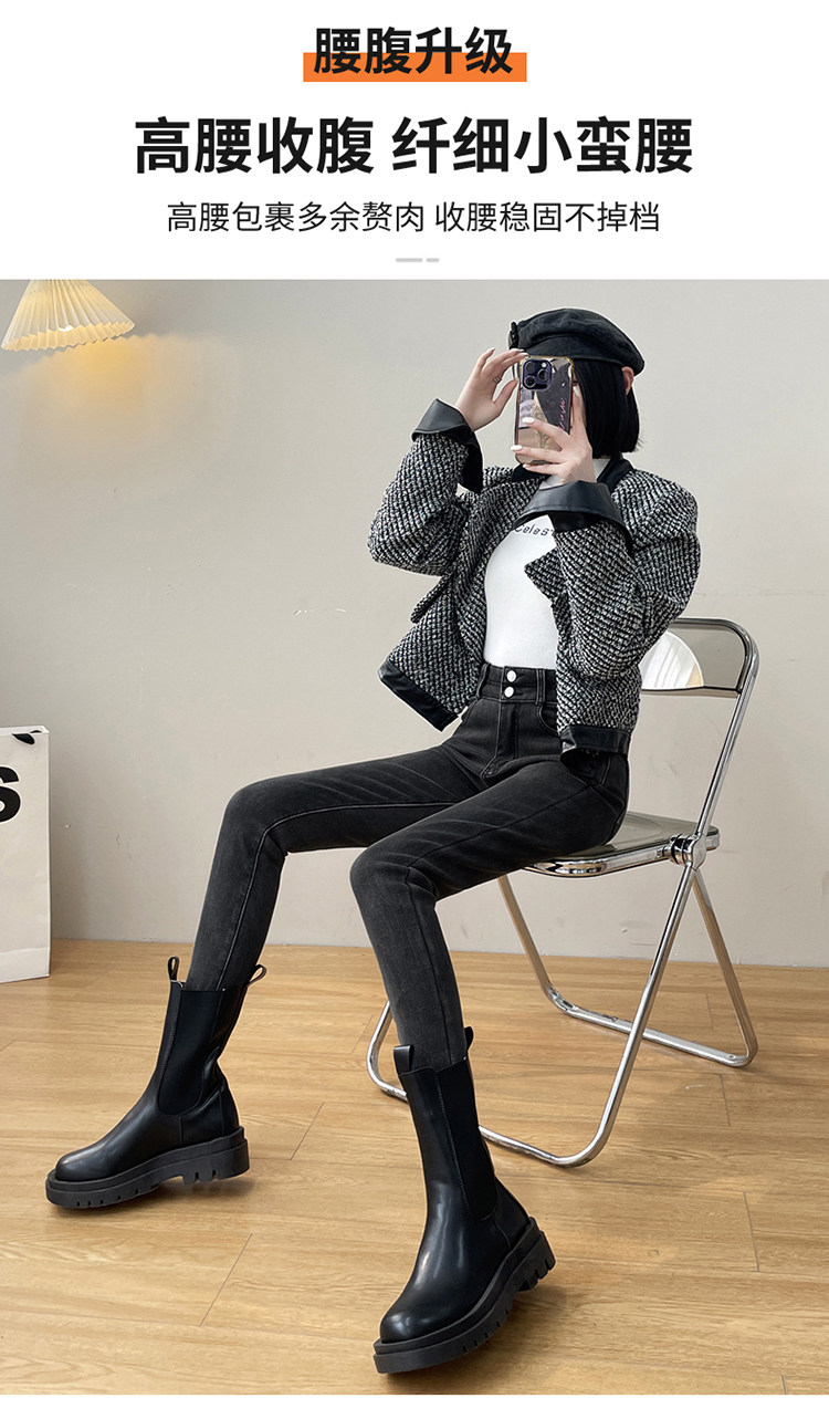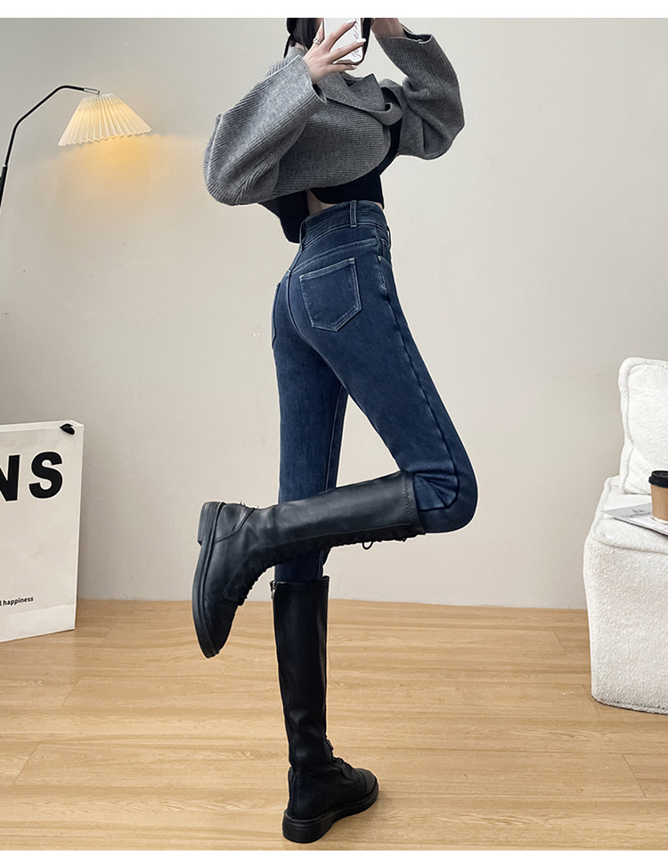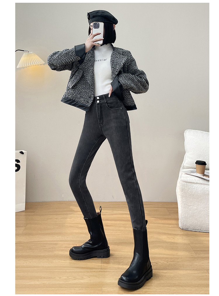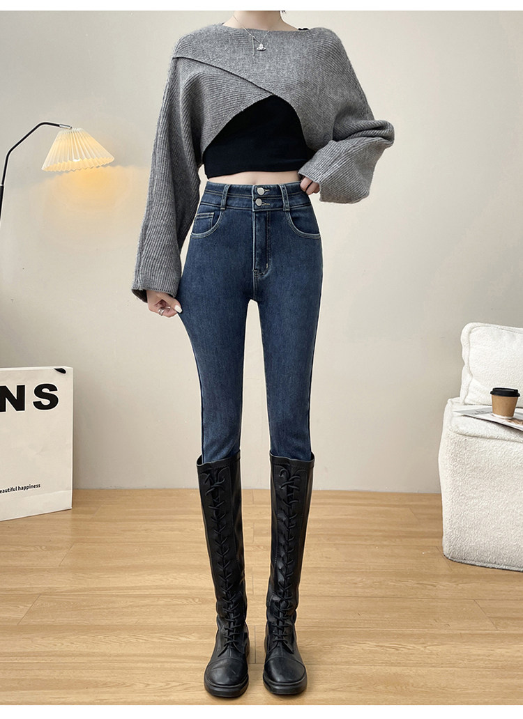 Утепленные демисезонные джинсы, штаны, леггинсы, приталенный эластичный карандаш, новая коллекция, высокая талия, в обтяжку