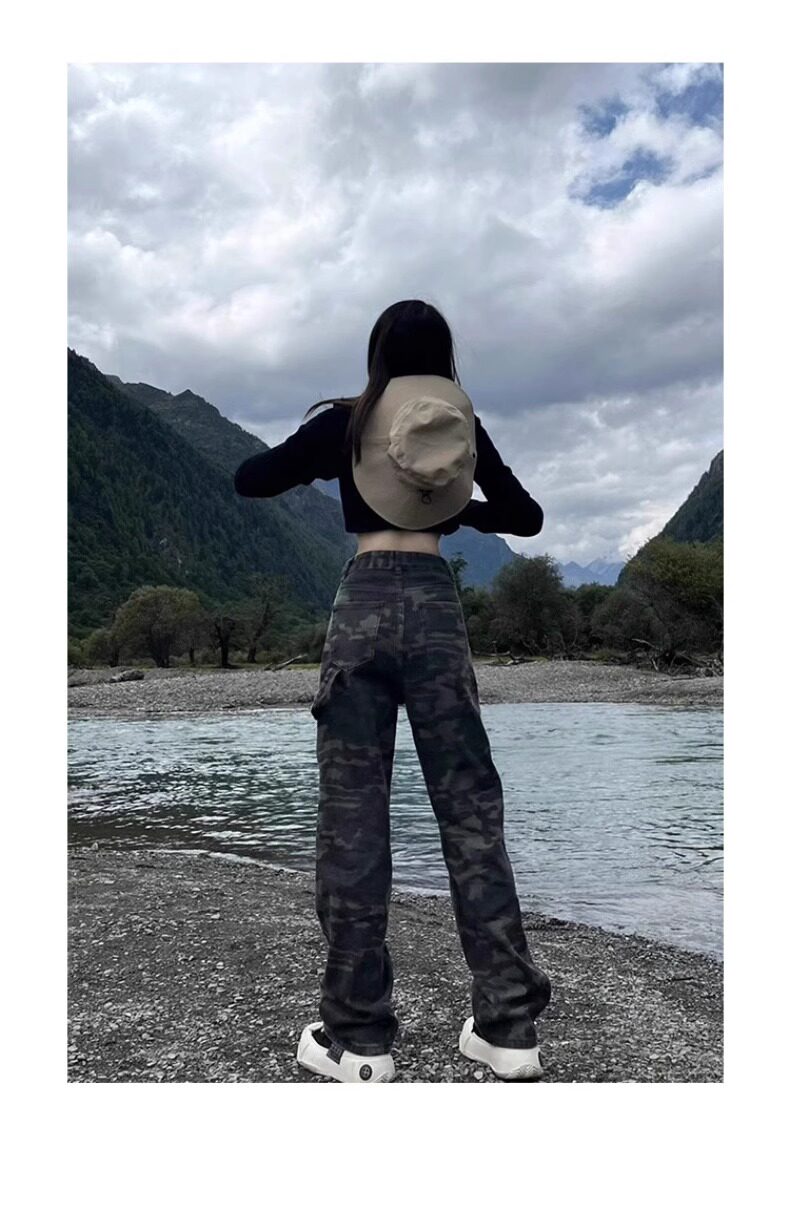 Зеленые камуфляжные осенние альпинистские штаны, в американском стиле, свободный прямой крой