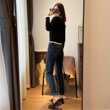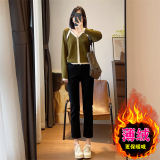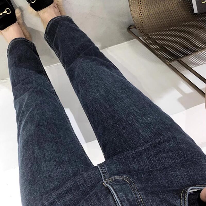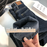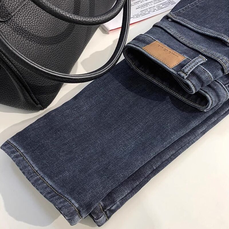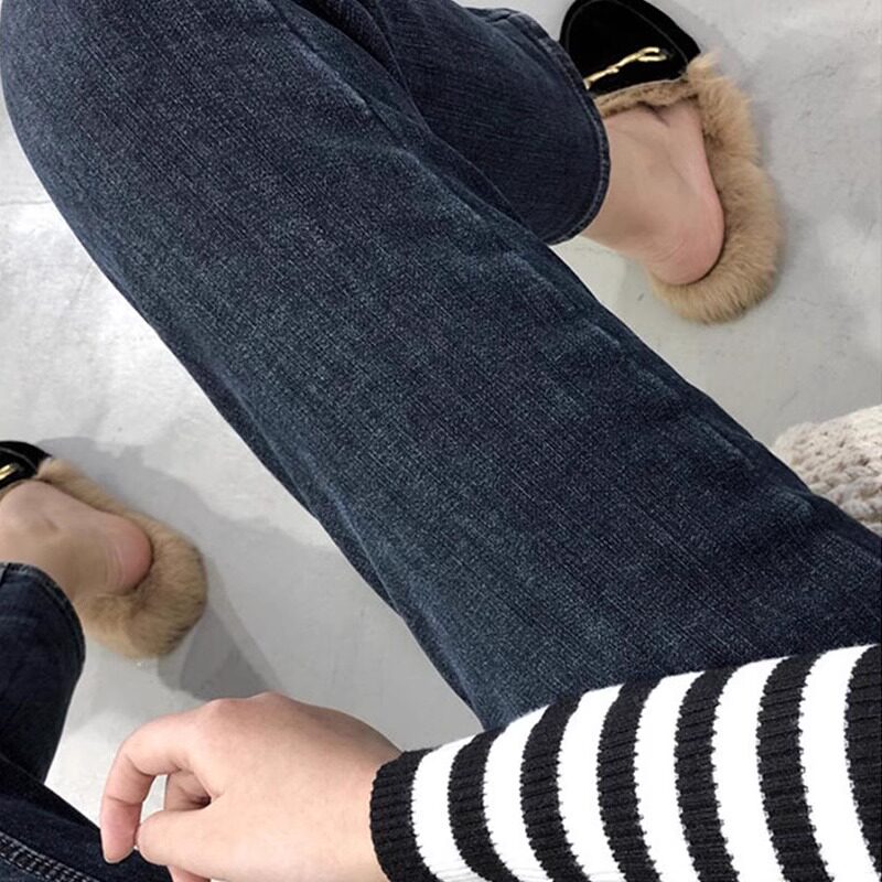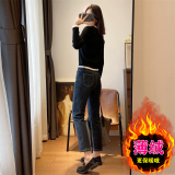Флисовые демисезонные прямые свободные джинсы, штаны, утепленные леггинсы, высокая талия, по фигуре