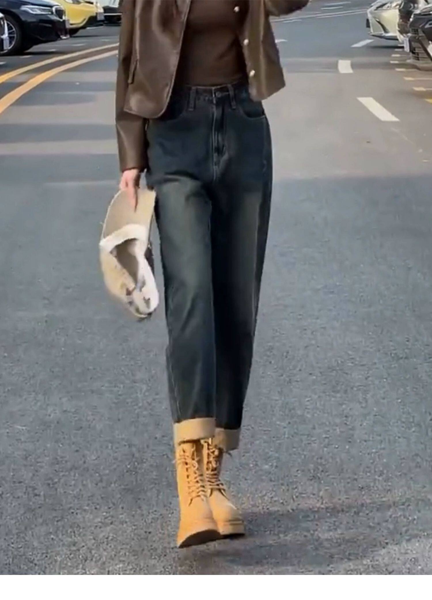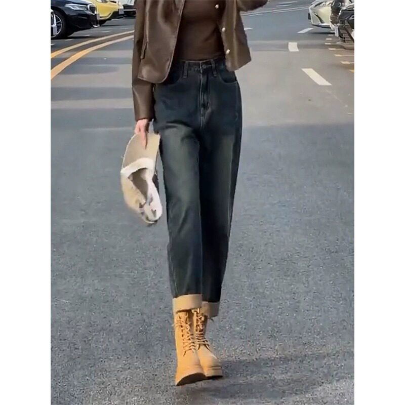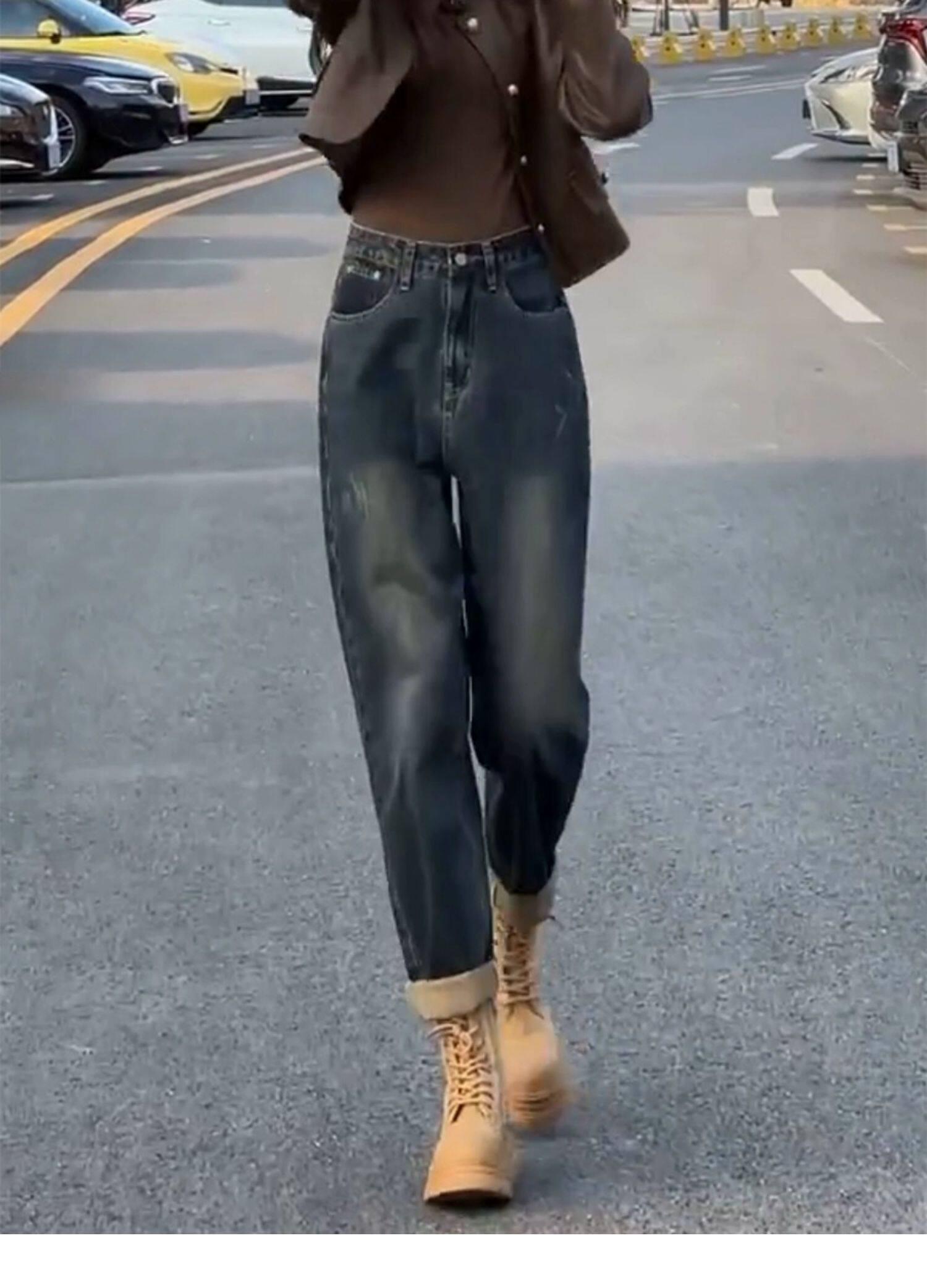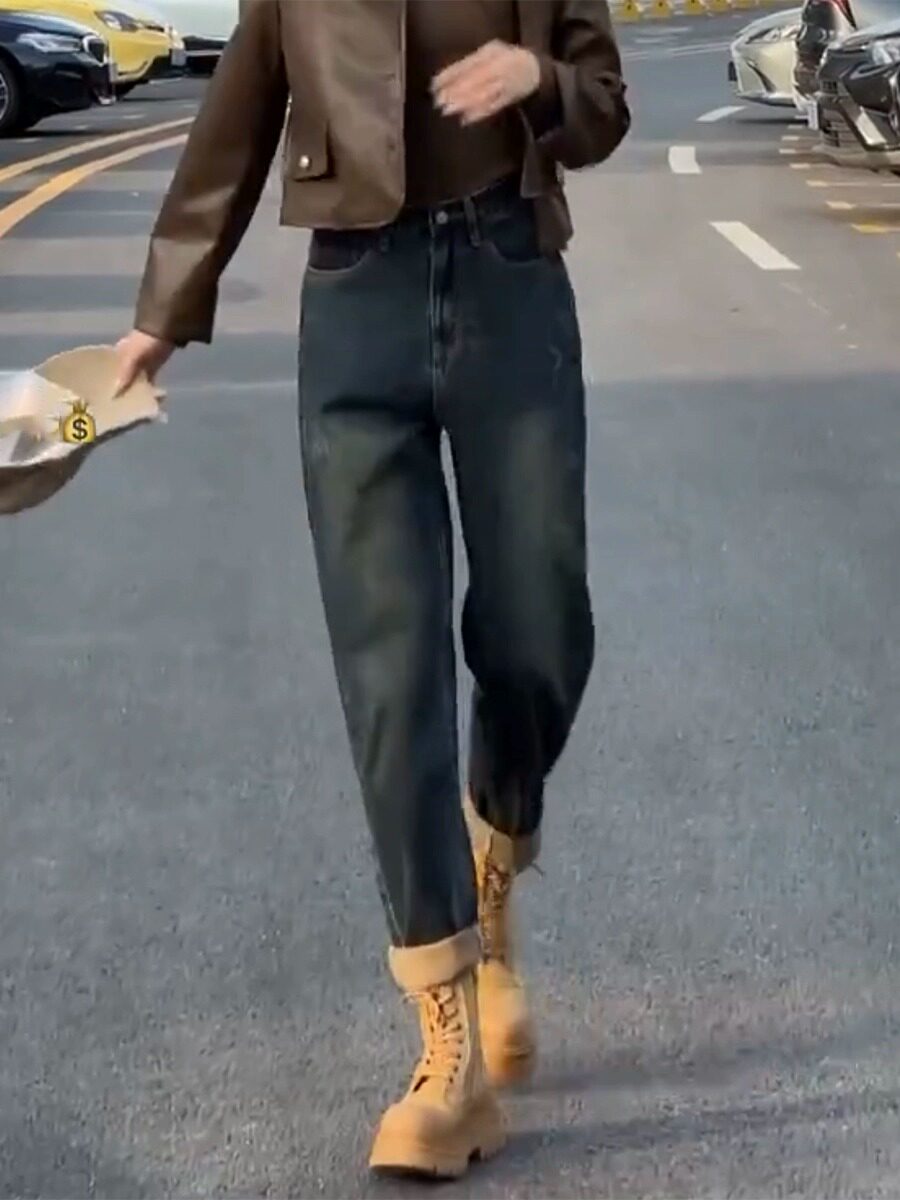 Штаны, осенние ретро джинсы, цвет, высокая талия, для формы тела «груша», свободный прямой крой, стройный силуэт