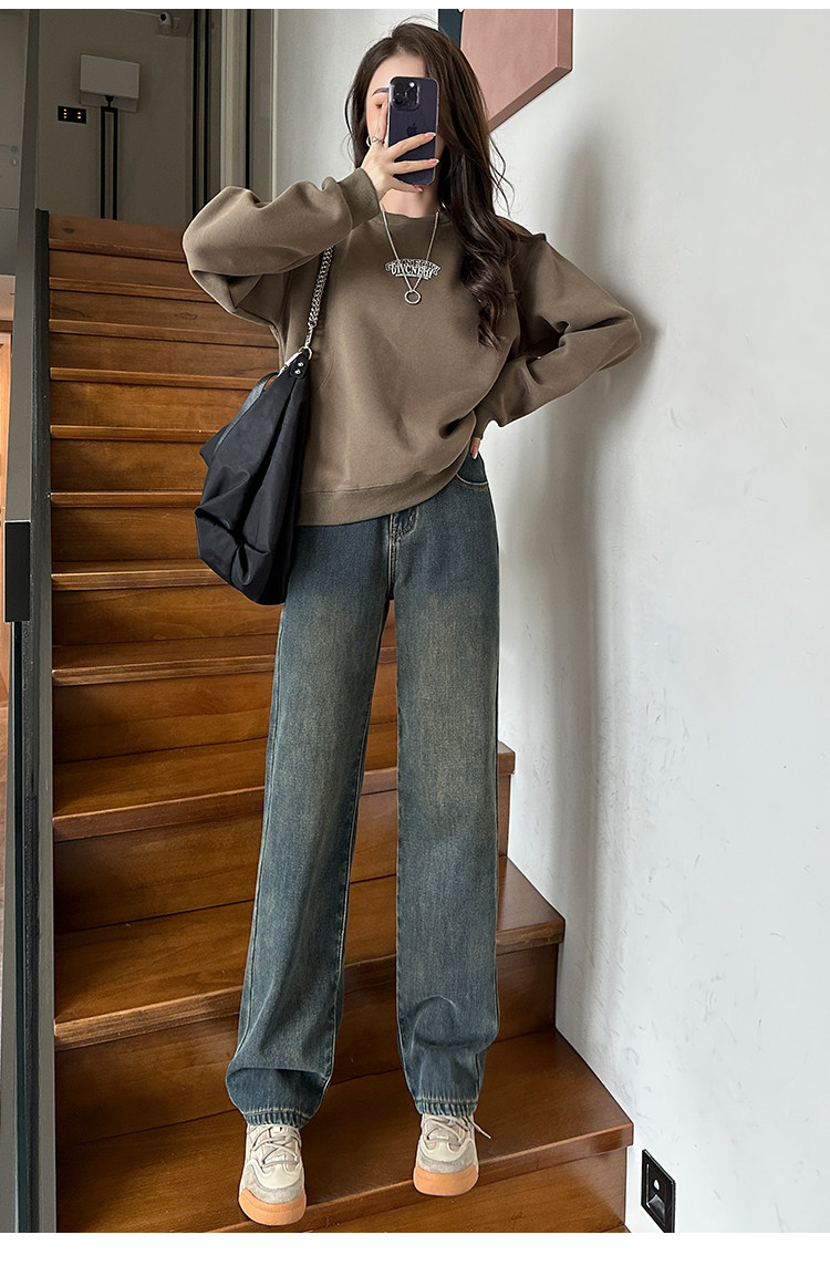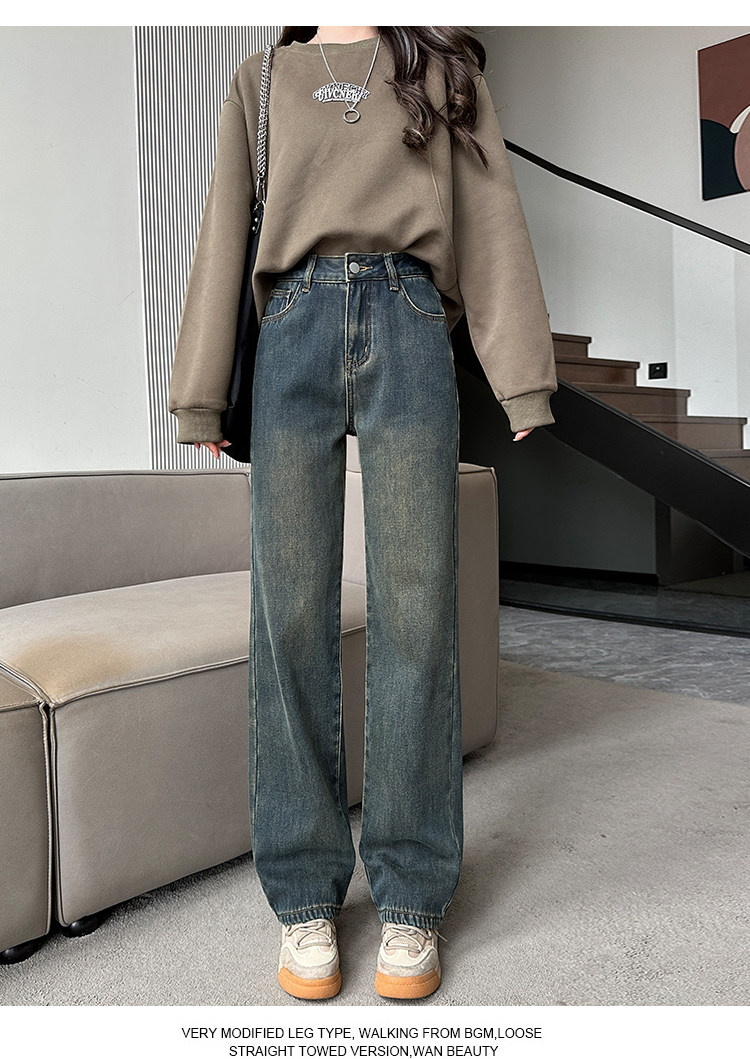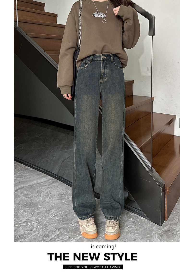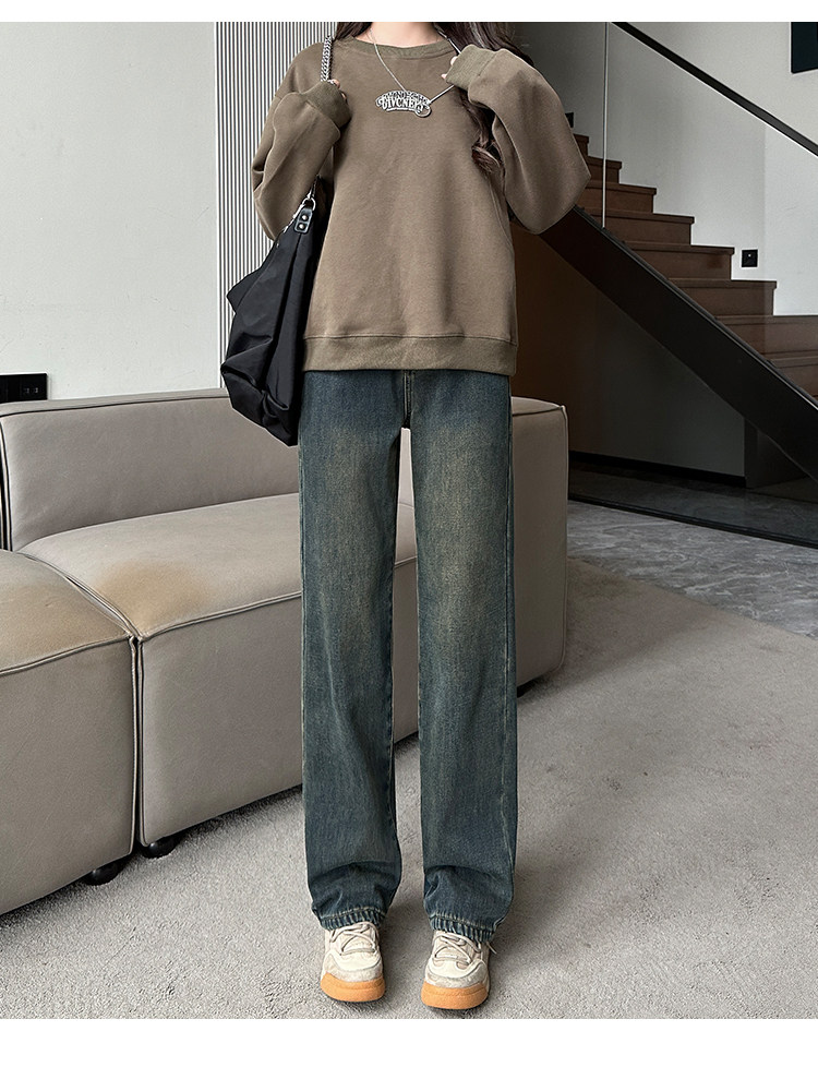 Демисезонные джинсы с начесом, штаны, приталенные леггинсы, высокая талия, свободный прямой крой